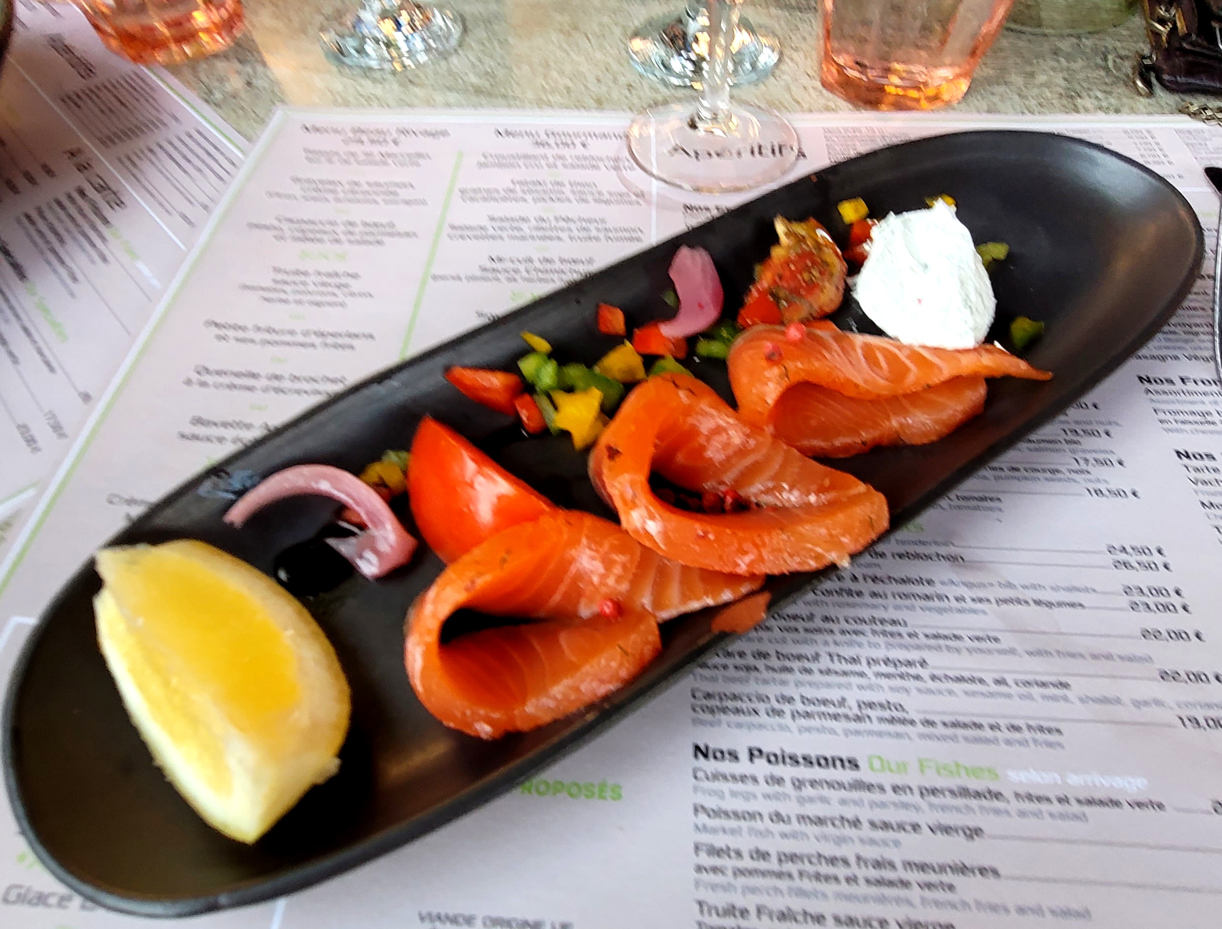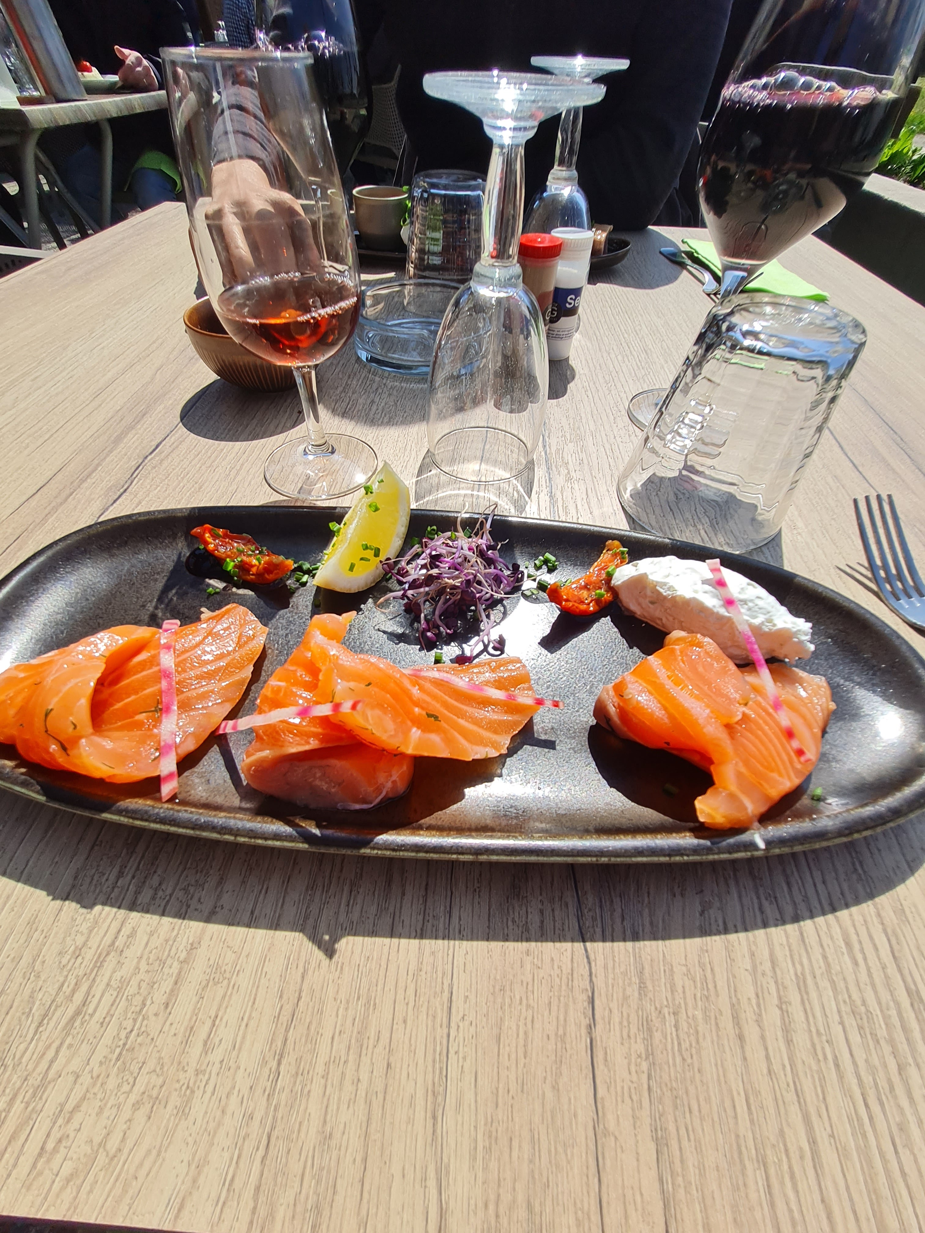 Un emplacement idéal au bord de l'eau. Le service de notre serveuse est parfait. Par contre très déçu du rapport qualité- prix. Belle présentation, mais beaucoup de salade, et très peu de tartines, une de plus aurait été mieux. Déçu aussi de retrouver l'étiquette du fromage dans l'assiette, pas agréable dans la bouche !! Même ressenti pour l'assiette de ma compagne avec le saumon. Le but de faire un max de rentabilité ?... Dommage, trop cher