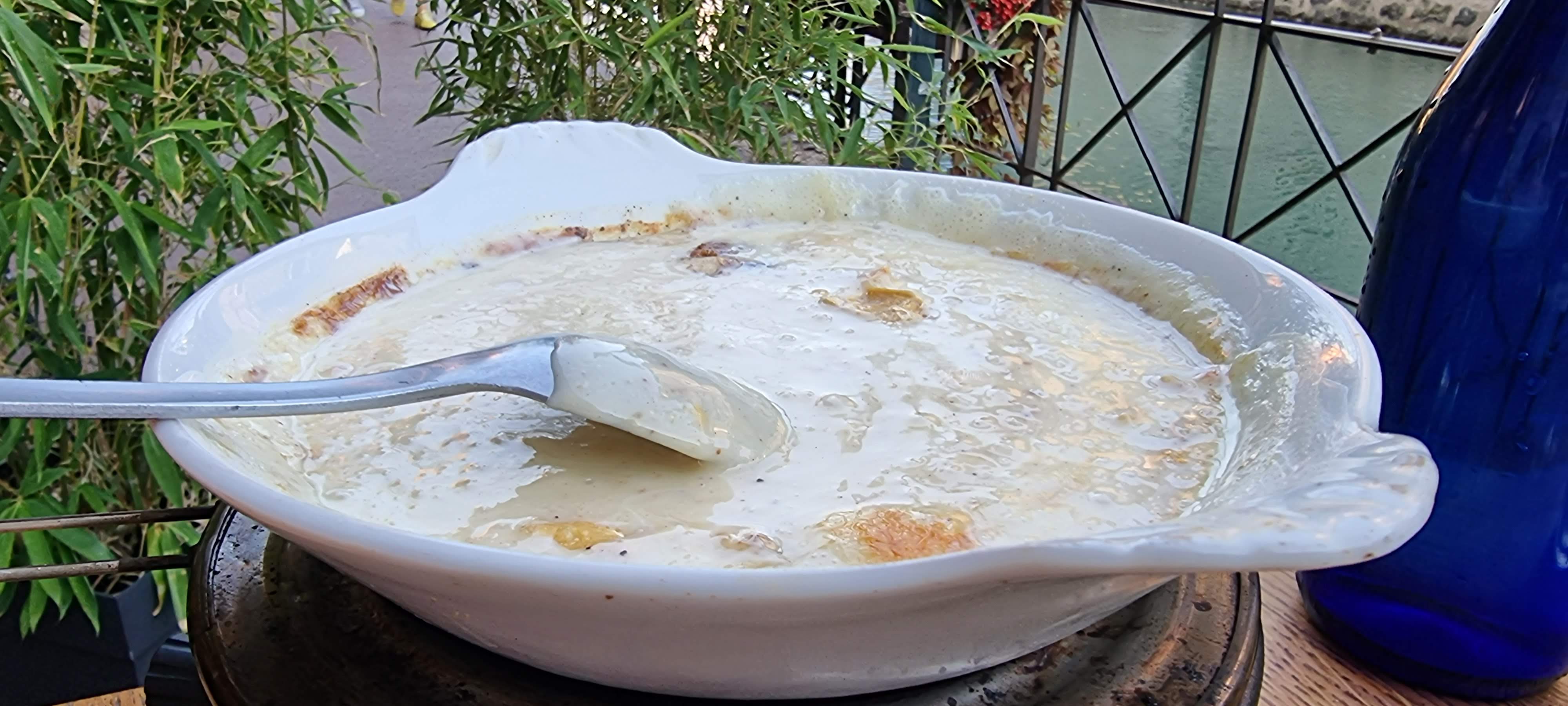 Nous y avons mangé en famille, l'accueil fut sympa. Emplacement super au bord du canal du Thiou et en face du Palais de l'isle. Les fondues savoyardes aux champignons étaient bonnes et très copieuses. Les desserts étaient délicieux et bien présentés.