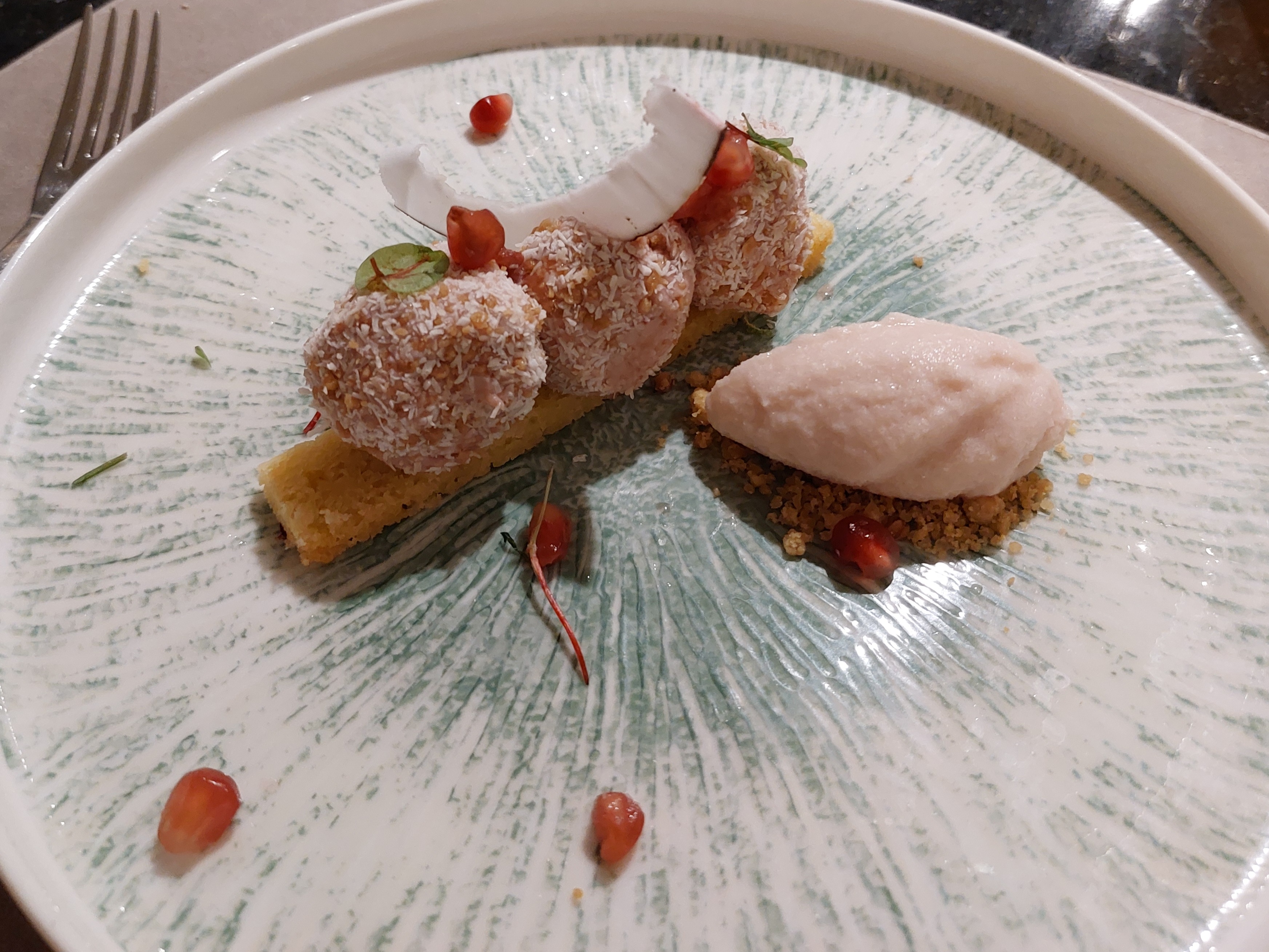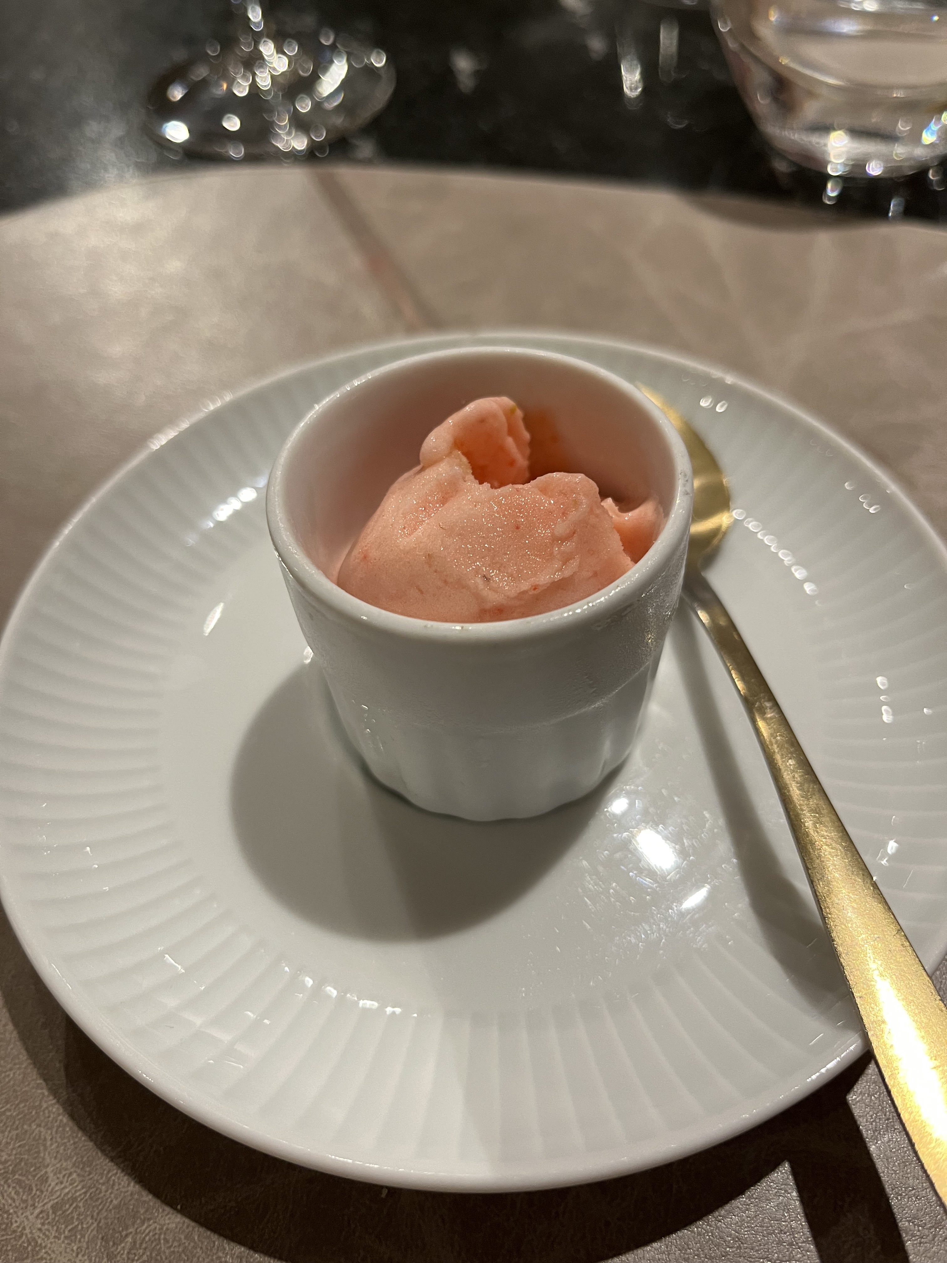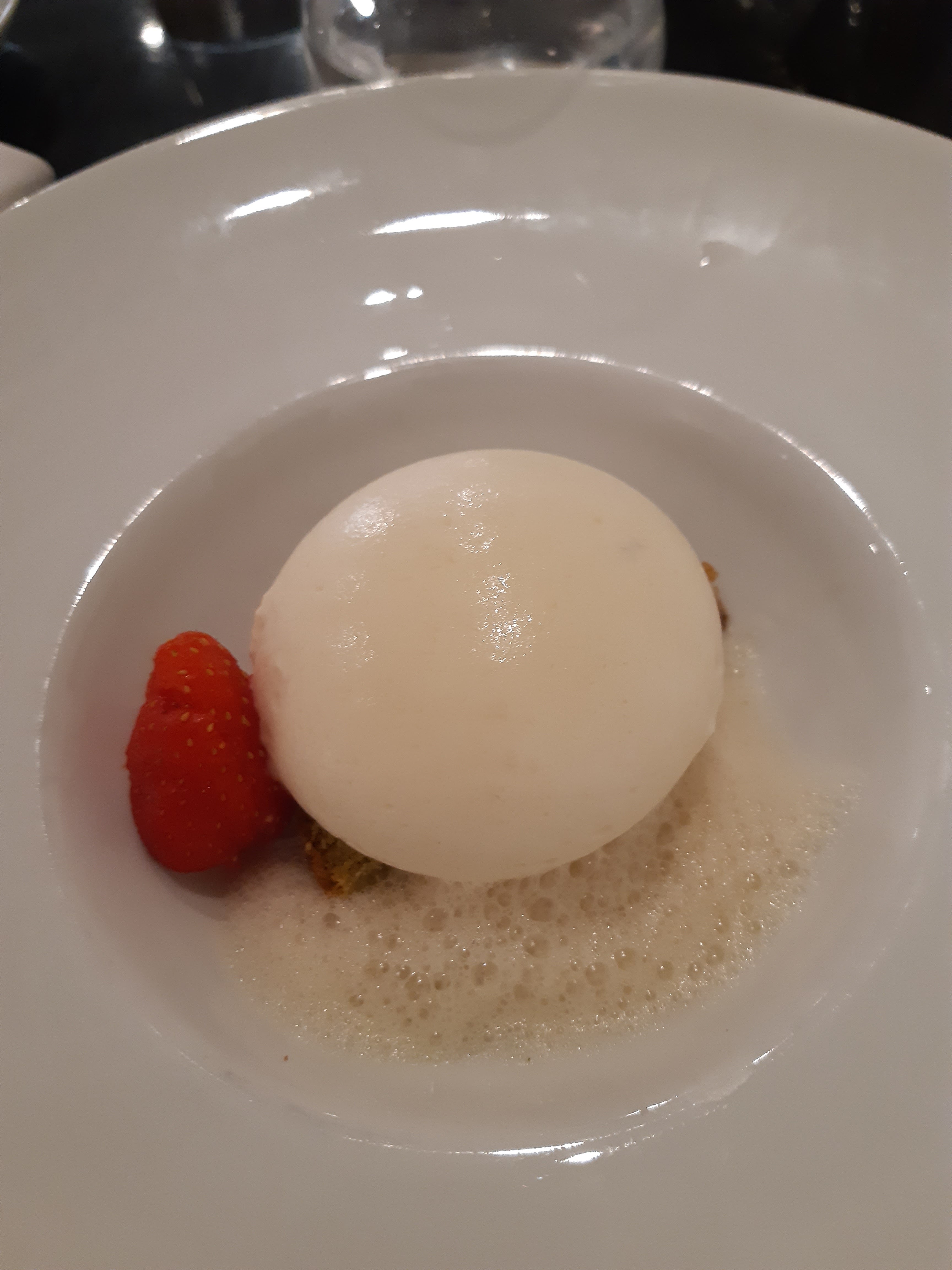 Un repas d excellence ponctue de surprises :des petits encas aperitifs au veloute de carottes choux fleurs au sorbet maison au pamplemousse..tout est raffine et delicieux..le poisson avec un risotto si cremeux et en dessert une orginalite pour ce ganache chocolat poire et sa glace au sesame merci encore