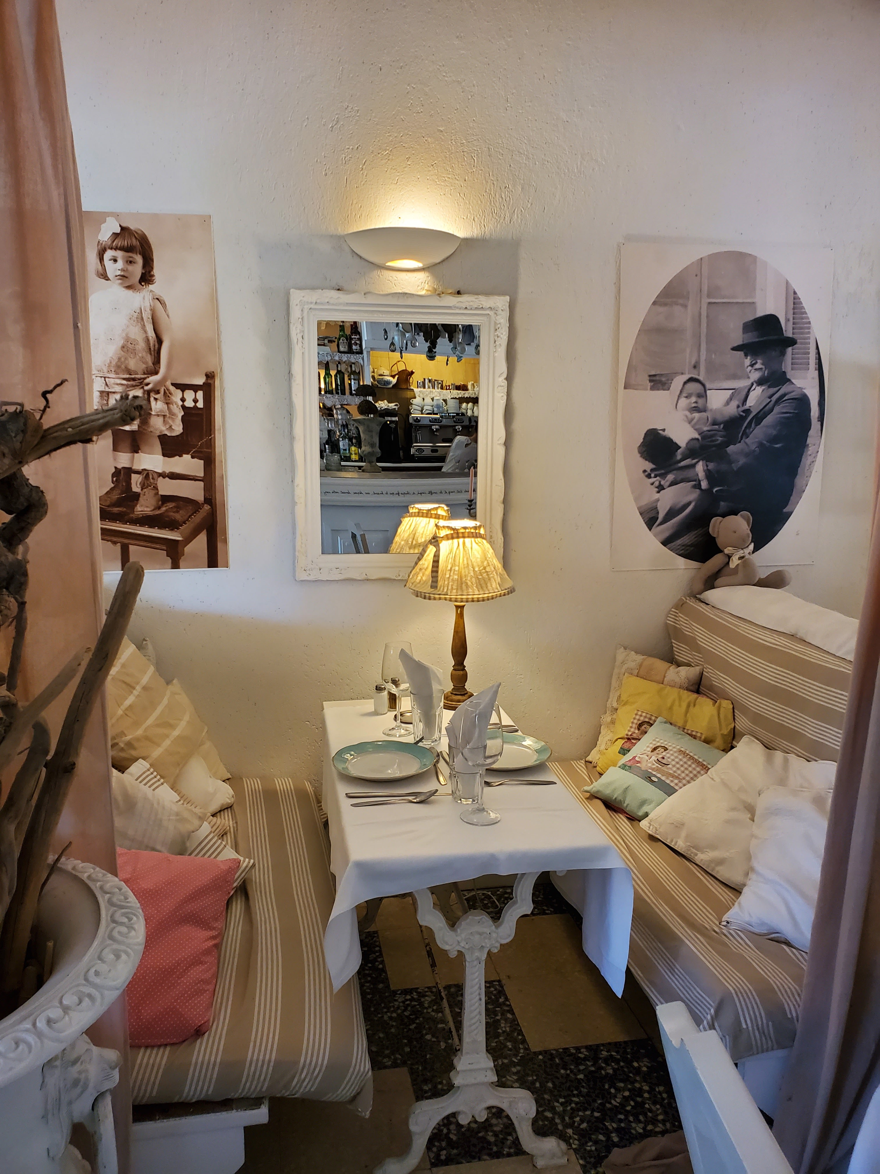 Très belle déco intérieure... Dans vieux village splendide... Repas excellent ..plats artistiquement présentés...tres bons moments...n'acceptent pas les CB et pas de distributeur de billets proches..