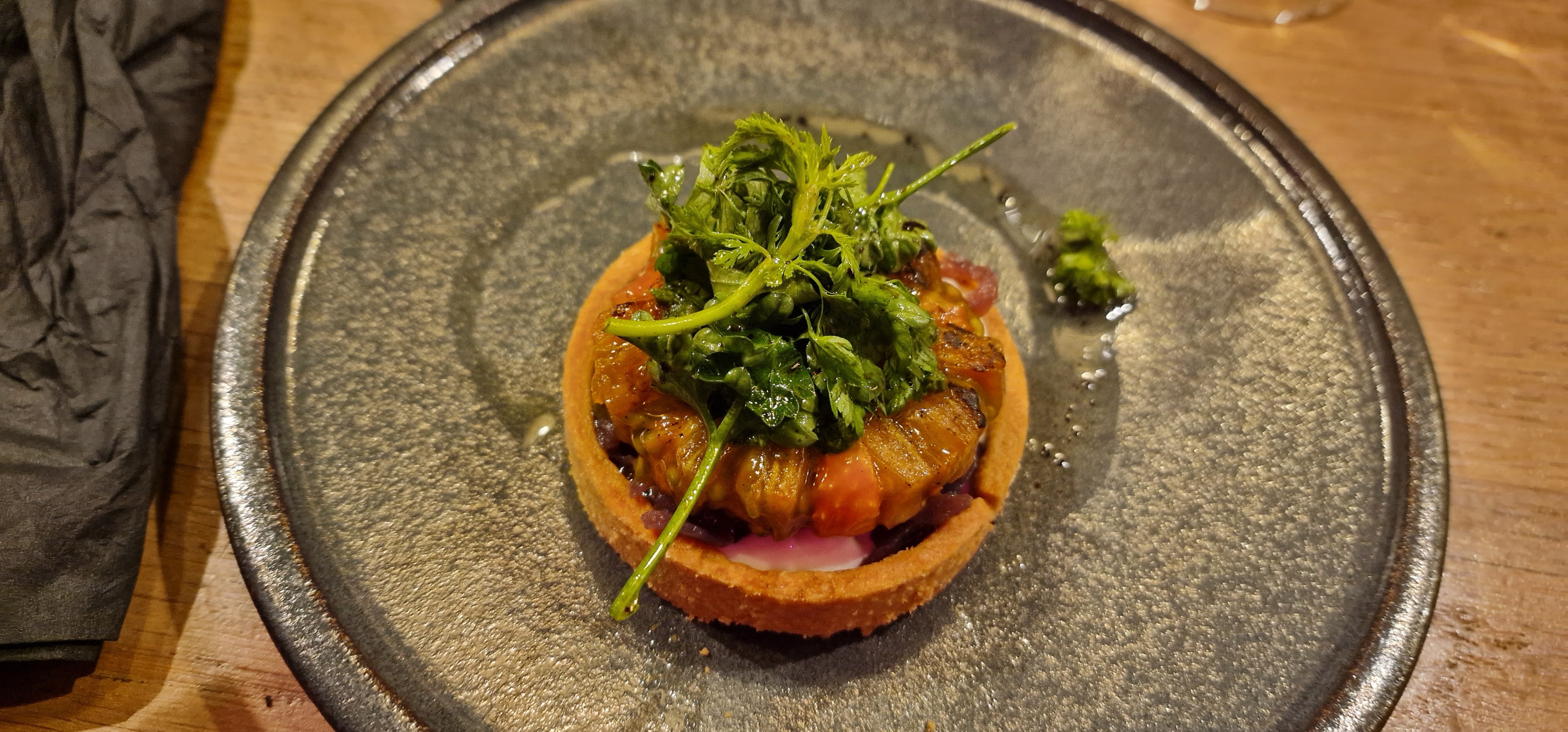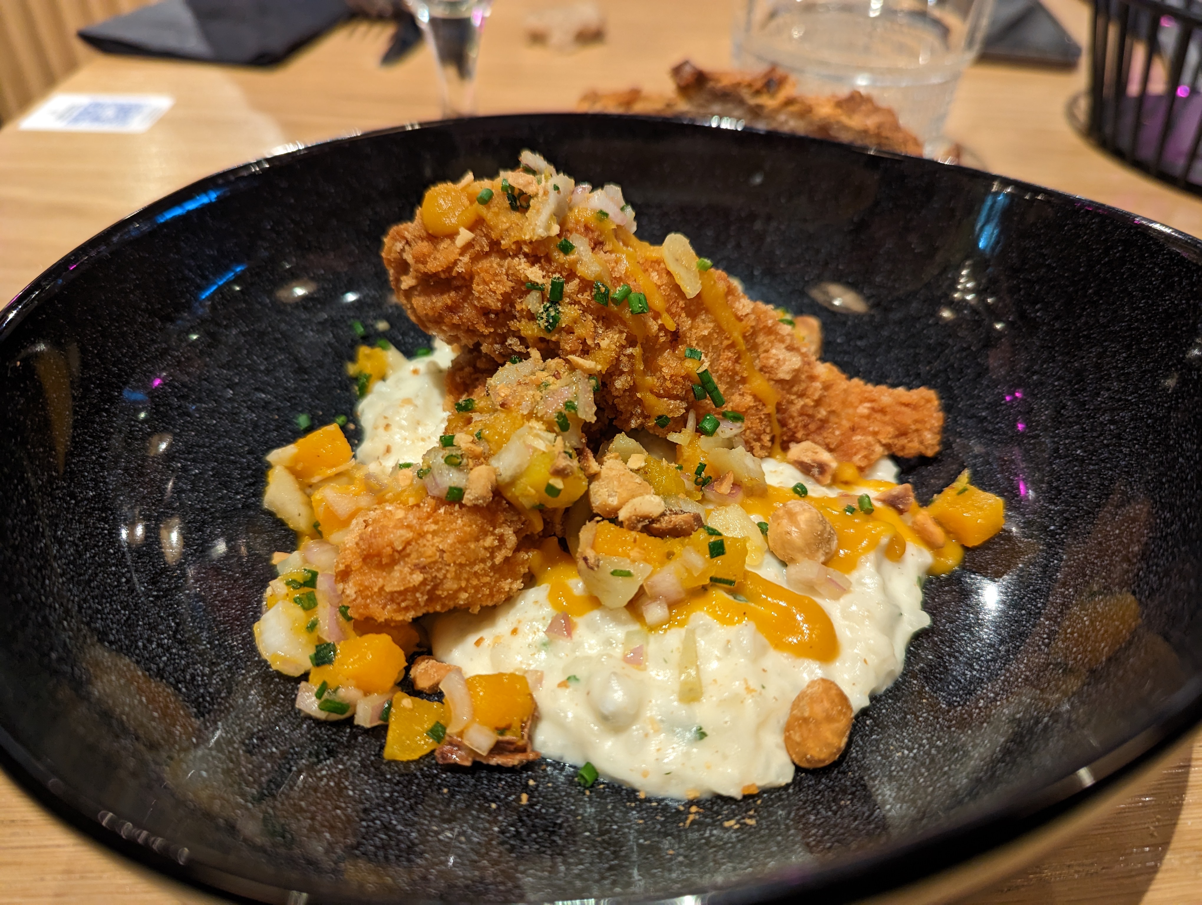 L’entrée est un peu difficile à trouver mais il a suffit d’un coup de fil au resto pour que quelqu’un vienne nous chercher. Les plats sont vraiment très bon et beau. L’équipe est très agréable et serviable, étant intolérante au lactose ils se sont débrouillés pour que je puisse profiter d’un maximum de plat quitte à « créer » un dessert qui n’était pas sur la carte. Un grand merci.