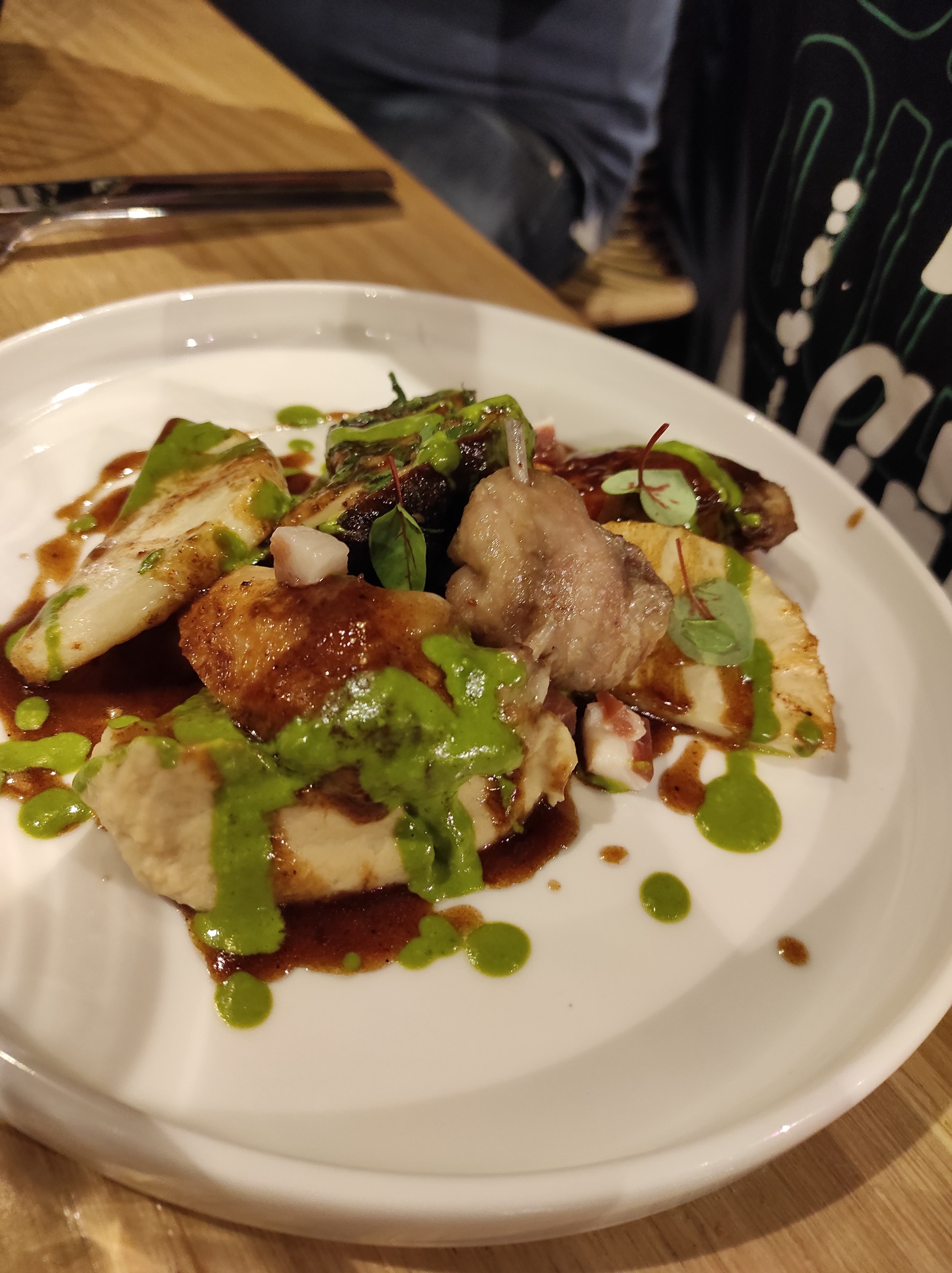 Nous avons profité d'un très bon diner . Les plats sont aussi agréables à déguster qu'à regarder, très savoureux, bien assaisonnés ( épices, herbes aromatiques ) et les cuissons sont parfaites. Le cadre est jolie, belle décoration, vaisselle et roof top très agréable , entouré d'arbres (plutôt insolite dans cette zone commerciale) . Le personnel est accueillant et attentionné.