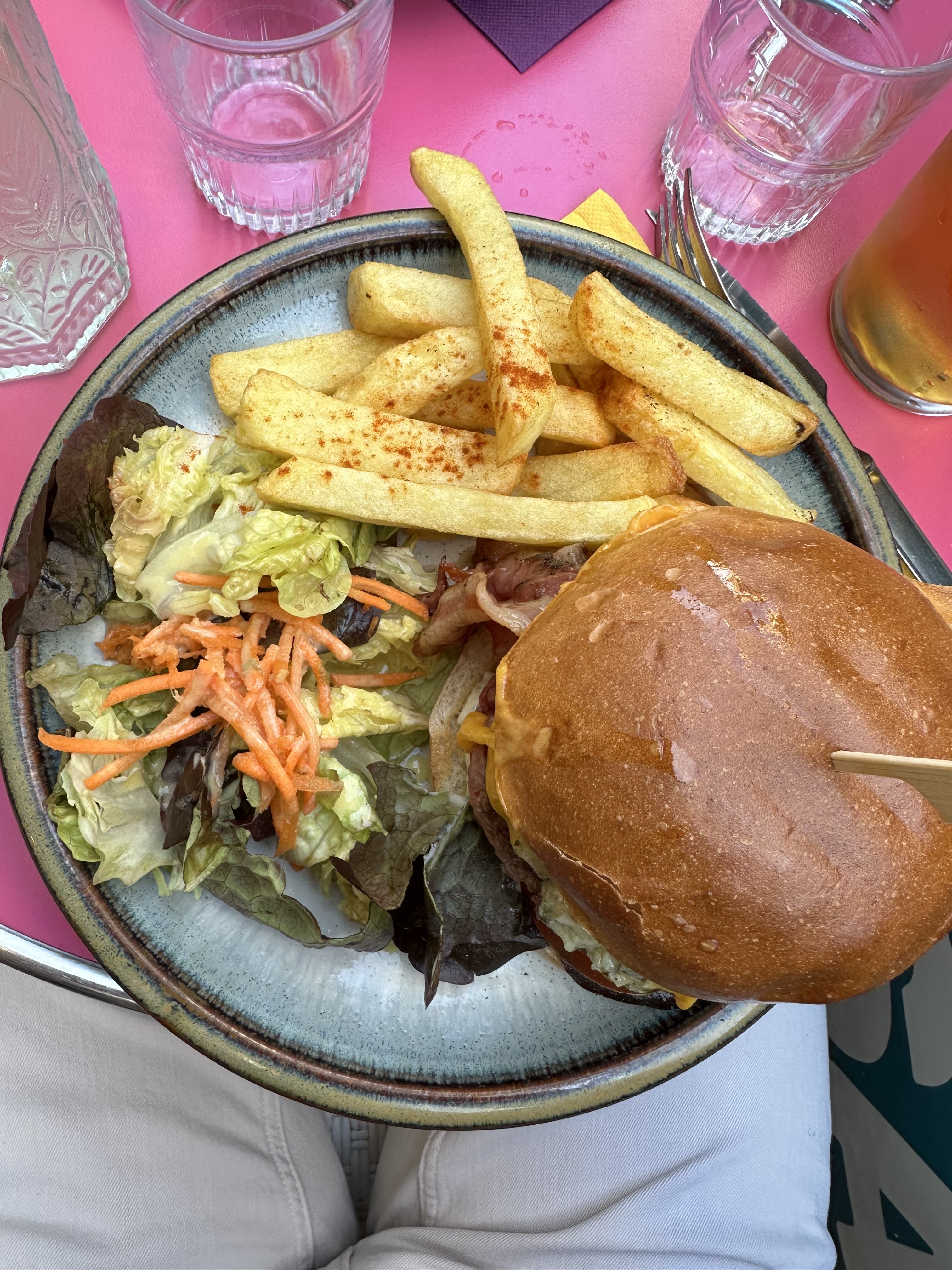 Nous essayions d'aller dans un autre endroit (ce qui s'est avéré avoir une énorme file d'attente à l'extérieur), alors nous avons cherché un autre endroit et avons trouvé Le Bec Sale. Le monsieur nous a entendu parler anglais entre nous donc il nous a immédiatement salué en anglais (ce qui est un énorme plus pour nous car nous nous sentons à l'aise quand nous ne sommes pas acculés à la culpabilité pour notre français inexistant) Il a été très utile avec le menu, le service était rapide et la nourriture était vraiment délicieuse. Nous avons commandé une salade de poulet tandoory et un burger au bœuf. Les deux étaient super. Nous reviendrons certainement ici!