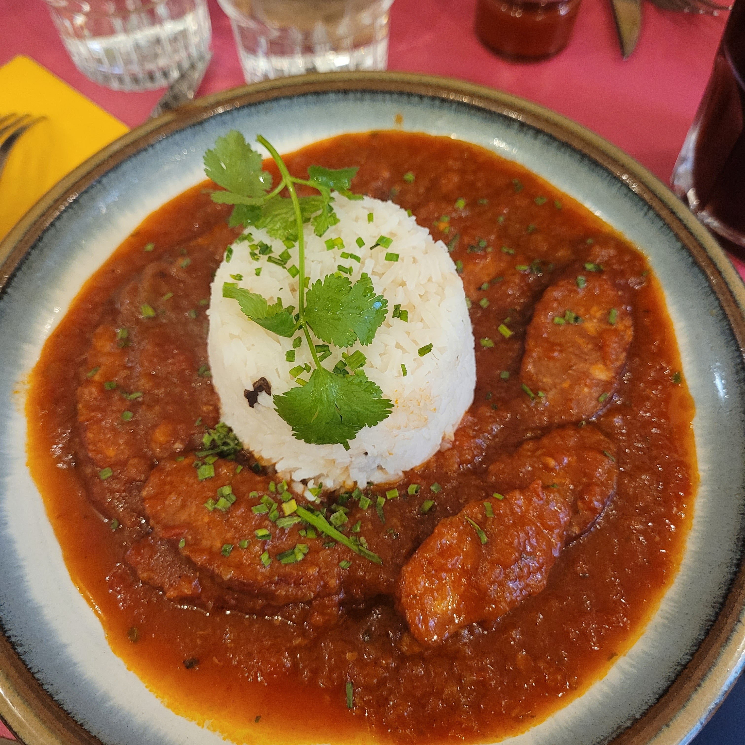 Délicieux rougail saucisse et cheese-cake! La déco est solaire ça réchauffe et ça fait du bien au moral! Déjeuner familial super agréable ! Merci pour votre bonne humeur! 🙂