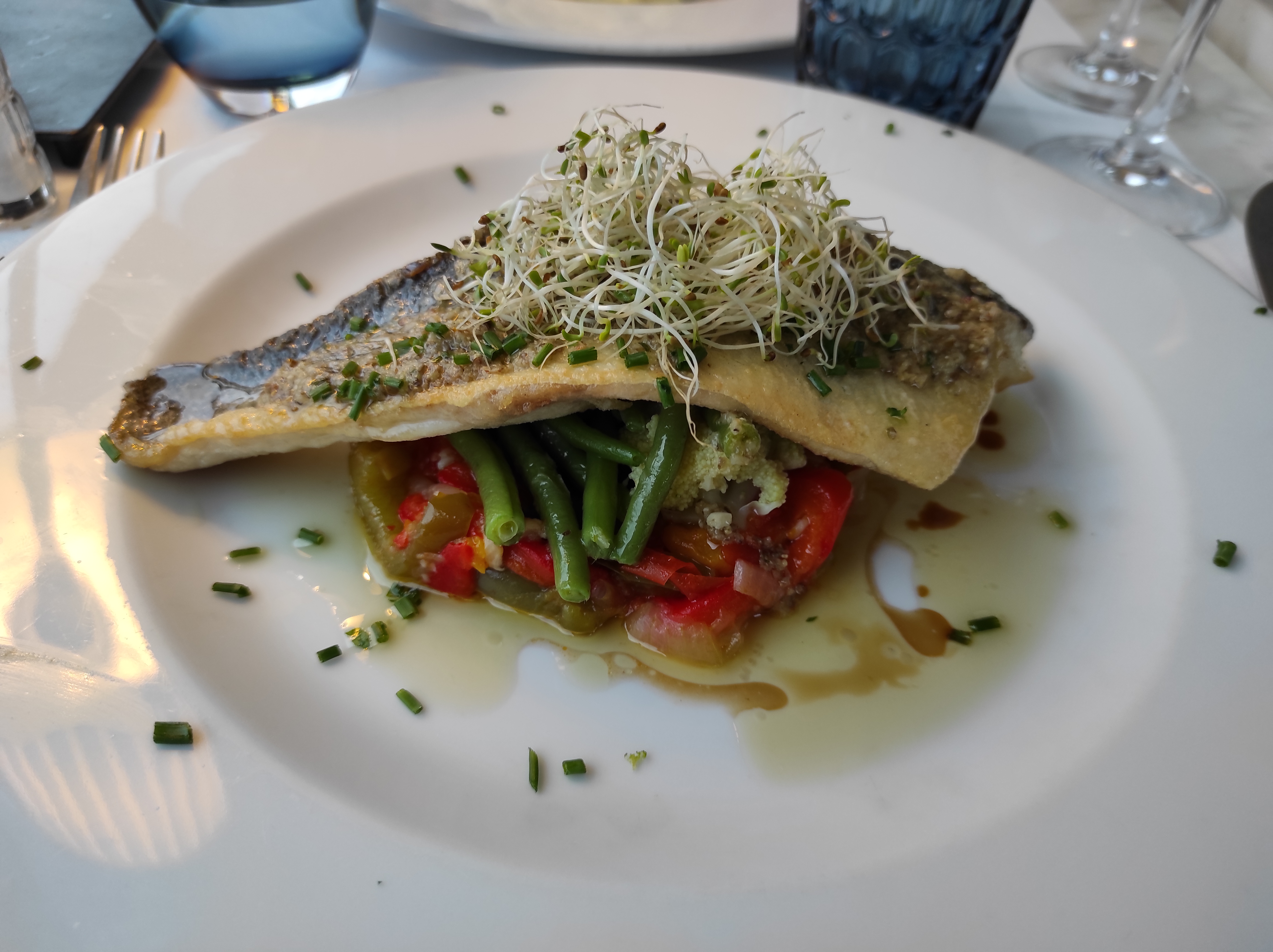 Pour le cadre, il faisait moche ce soir-là mais s'il fait beau, c'est sympa de manger au bord de l'eau. Le service était moyen, serveur ni souriant ni avenant, pas d'infos sur le menu. A l'arrivée il y avait plein de miettes sur mon fauteuil. Entrée : millefeuille artichauts avocat tourteau. Pas mauvais mais on ne sent pas du tout la chair du crabe Plat côte d'agneau, gratin dauphinois, correct Dessert tartelette amande cerise et glace pistache. Bonne Le pain était mou, à améliorer. Les autres convives ont pris du ceviche, à priori correct et du saumon ratatouille, un peu trop cuit. Dans l'ensemble c'est correct sans plus mais me semble un peu cher pour un menu à 52€ sans boisson. Cadre chouette s'il fait beau.