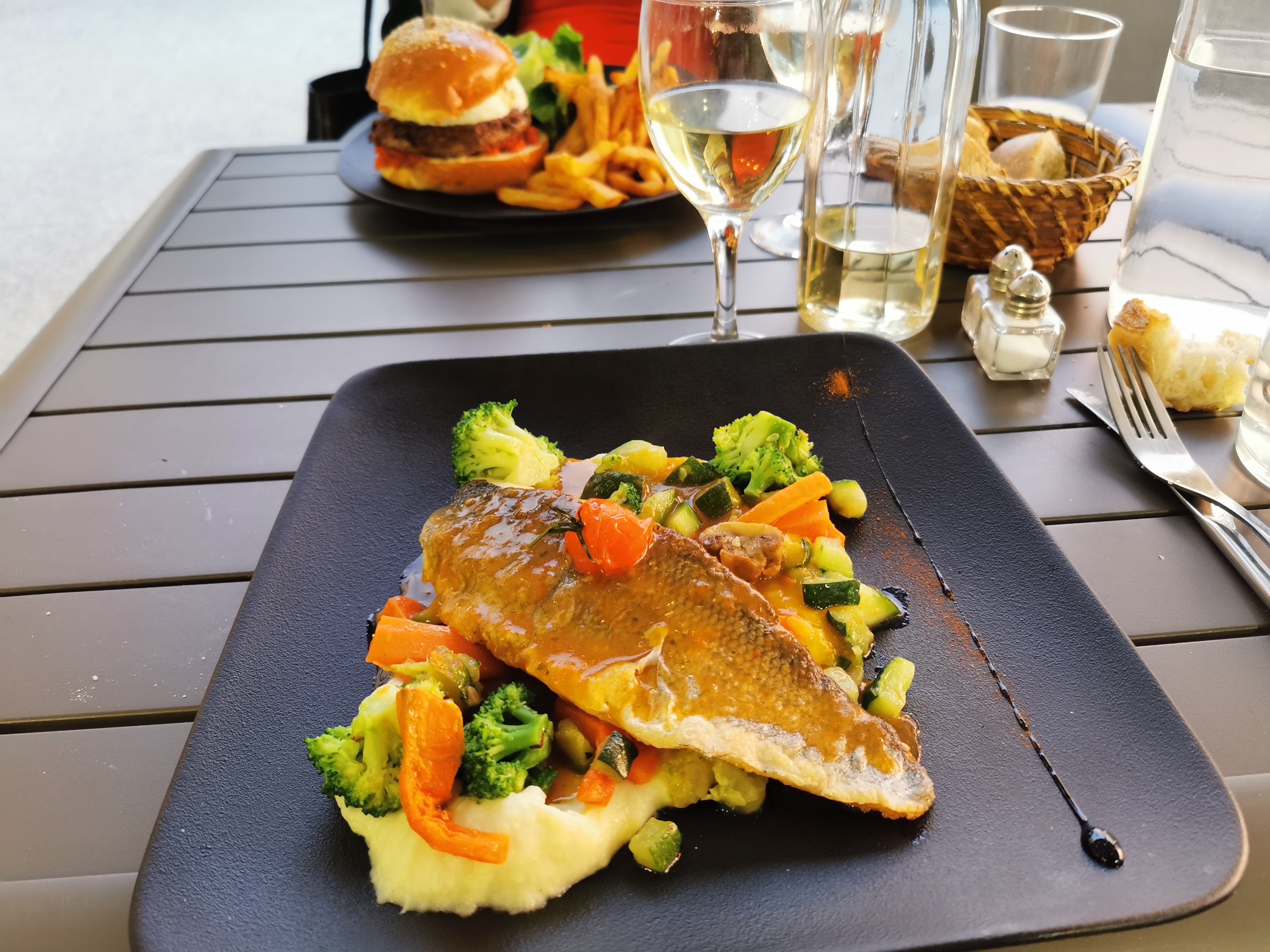 Super restaurant, il affiche complet à midi avec vacanciers et habitués. Le tartare de saumon était tres bon, le burger Forest Gump est très bon malgré la mayonnaise au curry qui masque le goût des gambas. Le burger Smash bon lui aussi. Le menu du jour était atipique et bon aussi. Merci pour votre sourire et votre accueil pour ce déjeuner.