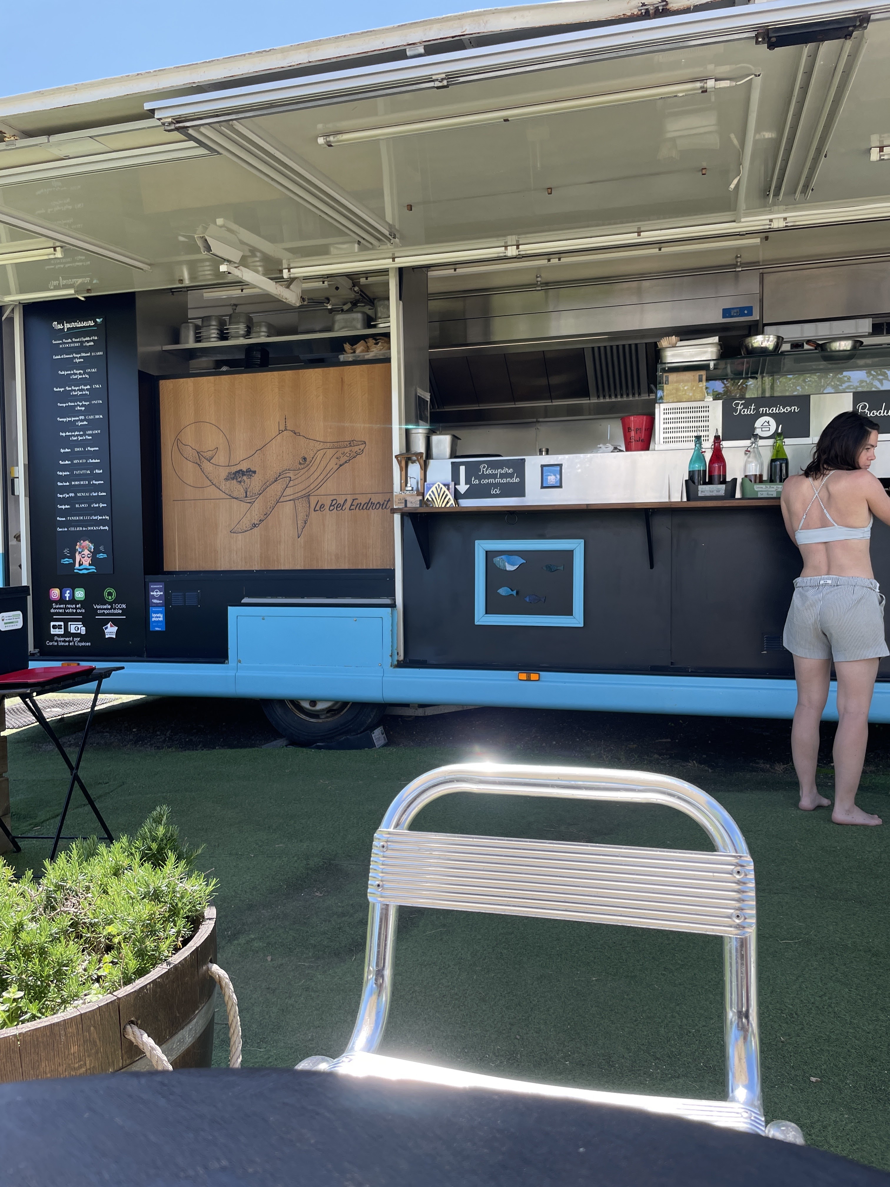 Cadre sympa avec vue sur l océan. Original. Dans les 2 full truck, des gens sympas qui vous servent de bonnes choses. Allez y.
