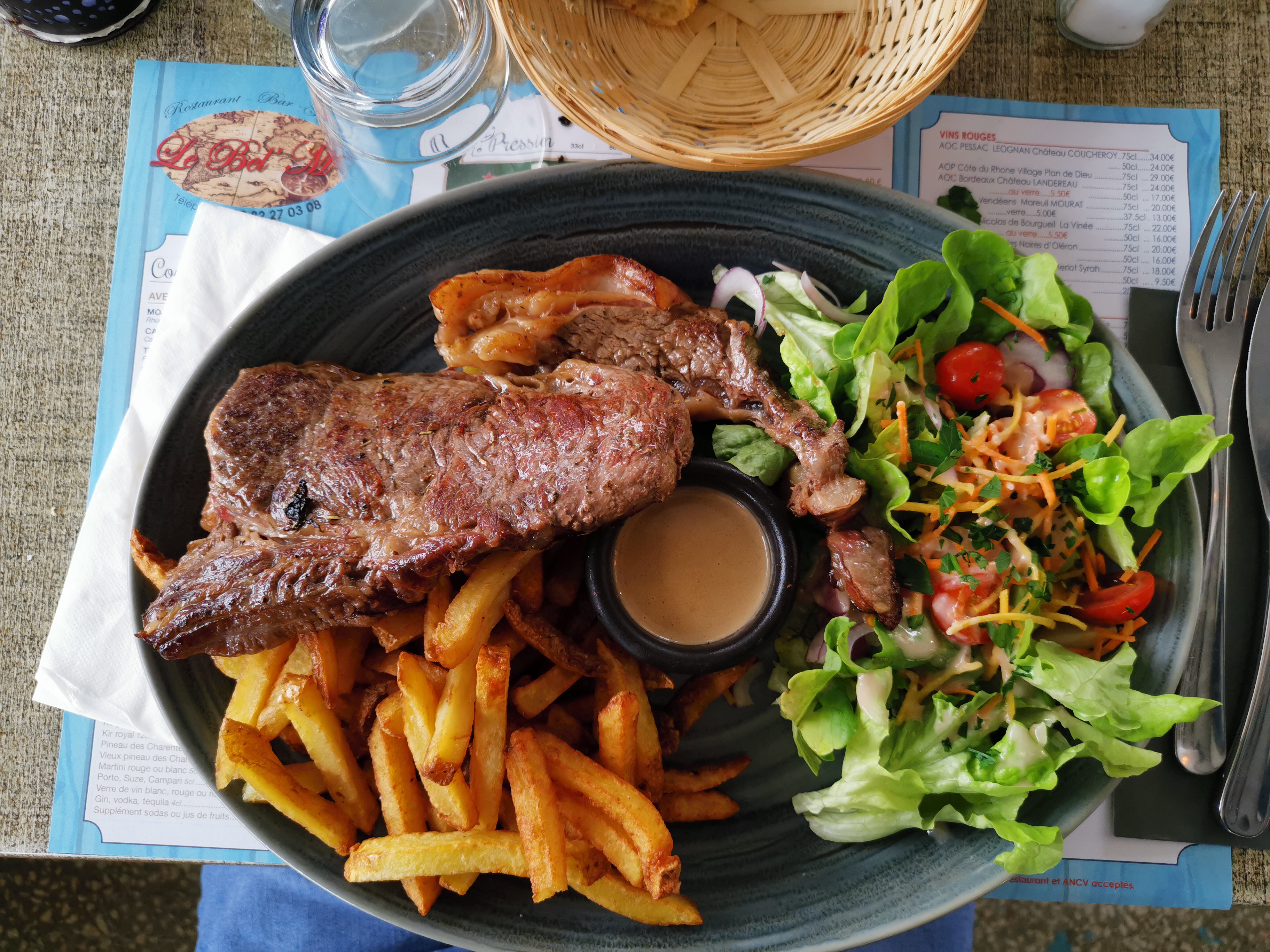 Dîner lundi 17 juillet, en pleine affluence, table réservée prête à nous recevoir, service attentionné dès notre arrivée, excellent plat de lieu noir et son accompagnement original, belle et bonne entrecôte et ses frites maison avec peau, réservant un goût de terroir, cuites à point, avec des pommes de terre nouvelles locales. Excellent vin en bouteille d’ Oléron rouge. A noter tout de même : à notre arrivée, en milieu de terrasse, notre table voisine vidée de ses 6 personnes en cours de repas apparemment précipitamment, pour une raison que seul l’établissement connaît est resté longtemps ( trop pour la réputation de la maison) sans être desservie. Enfin, l’état des verres opalisés d’usure et intensément tachés par un manque évident de liquide de rinçage. Dommage de déguster un très bon vin local dans des verres aussi peu accueillants, dans ce restaurant recommandé par des habitants connaisseurs , de Fouras. Hormis ces deux bémols , nous le recommandons aussi.