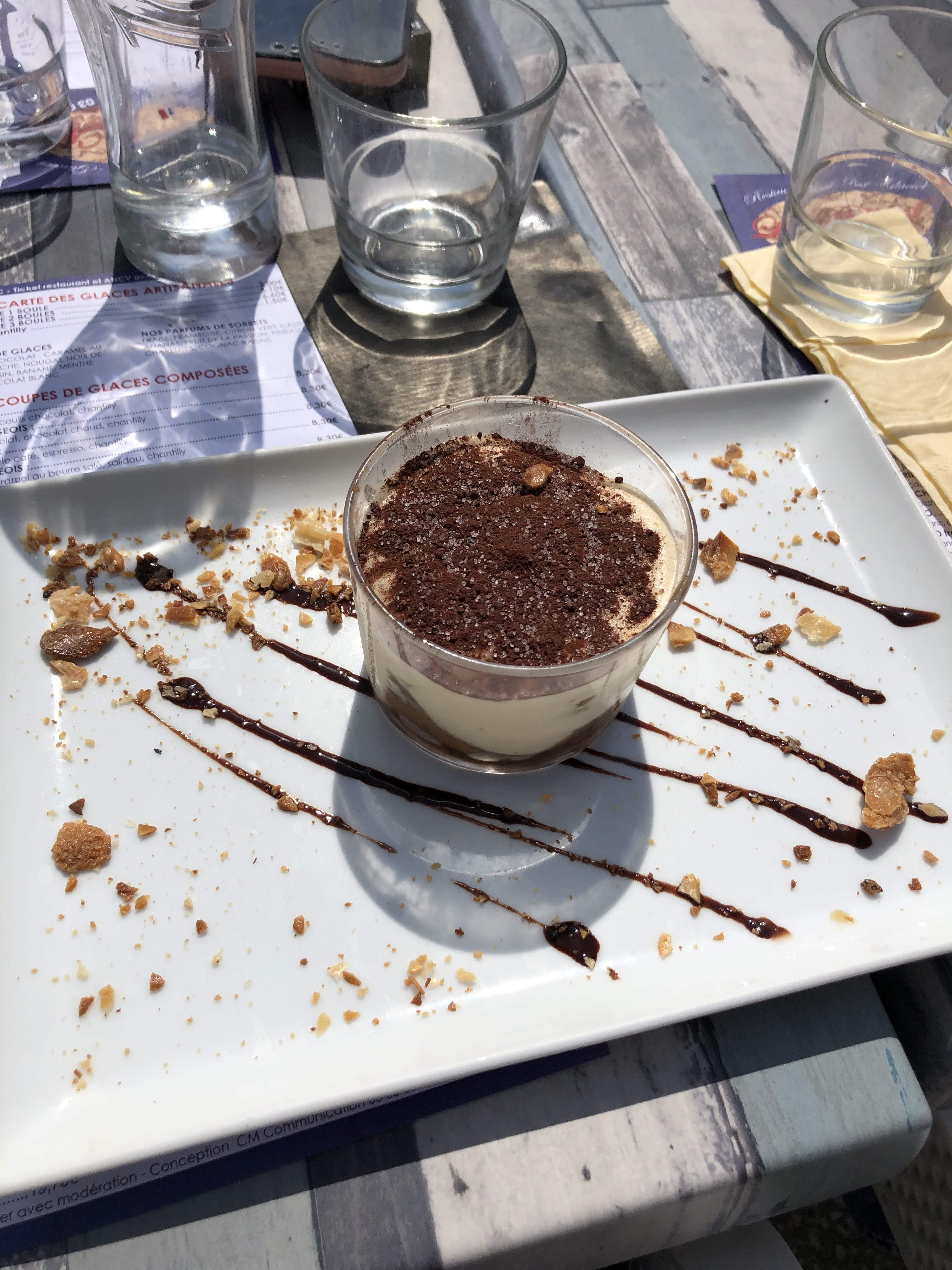 Le repas se passe sur la terrasse vue sur l'océan. Le personnel est agréable, souriant et disponible. Nous avons commandé le médaillon de thon mi-cuit avec son accompagnement, c'est un délice, cuisson au top. En dessert, nous commandons une coupe glacé 3 boules. Quelle surprise, grande coupe + chantilly et petite décoration, glace faite maison. Je recommande ++, très bonne adresse.