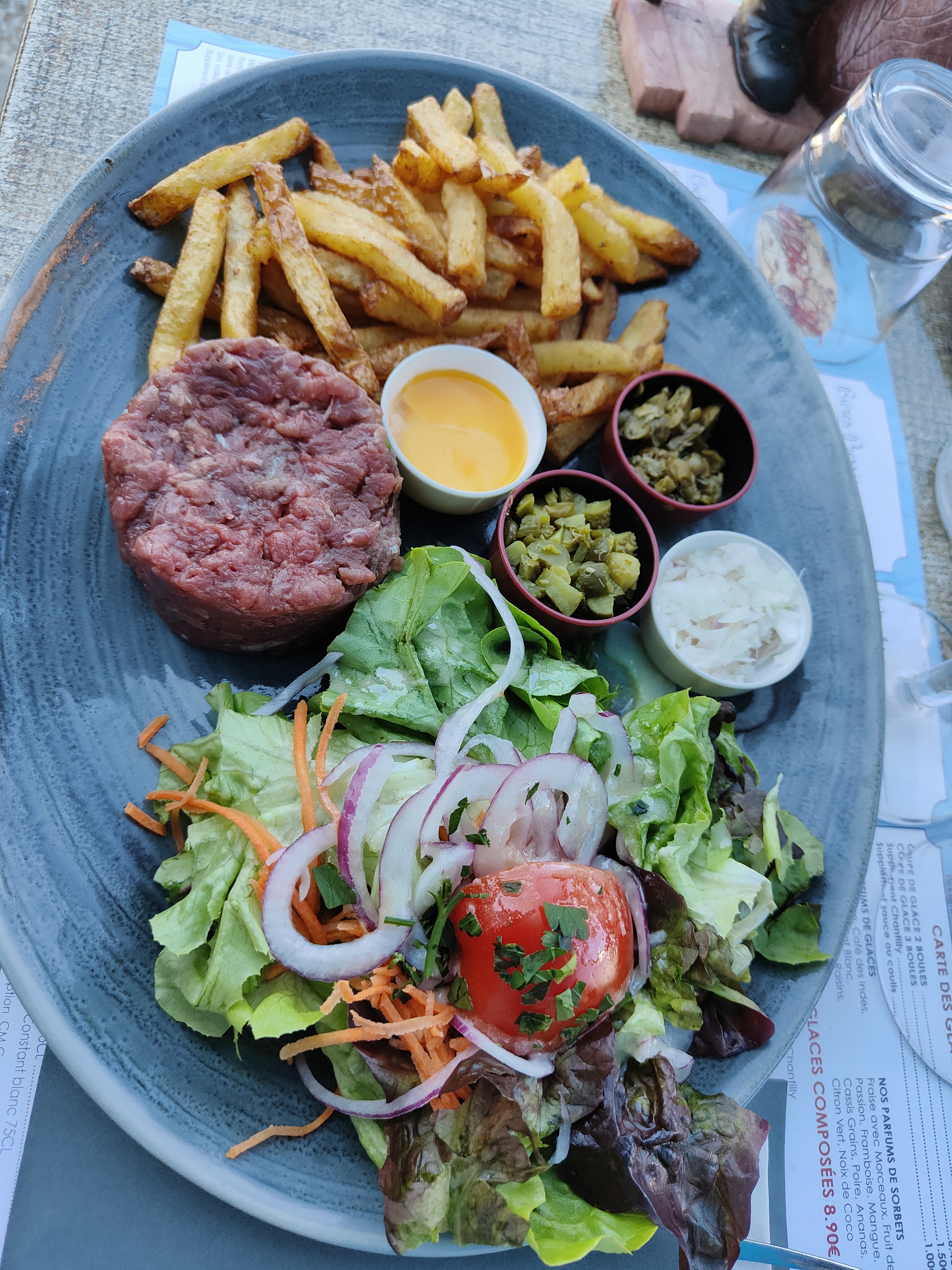 Très bon restaurant, produits de qualité. Rien à redire question assaisonnements ! Personnels très sympathiques. Avons passé un agréable moment en terrasse face à la mer. Je recommande vivement. (Photo : tartare de saumon, frites maison 😋)
