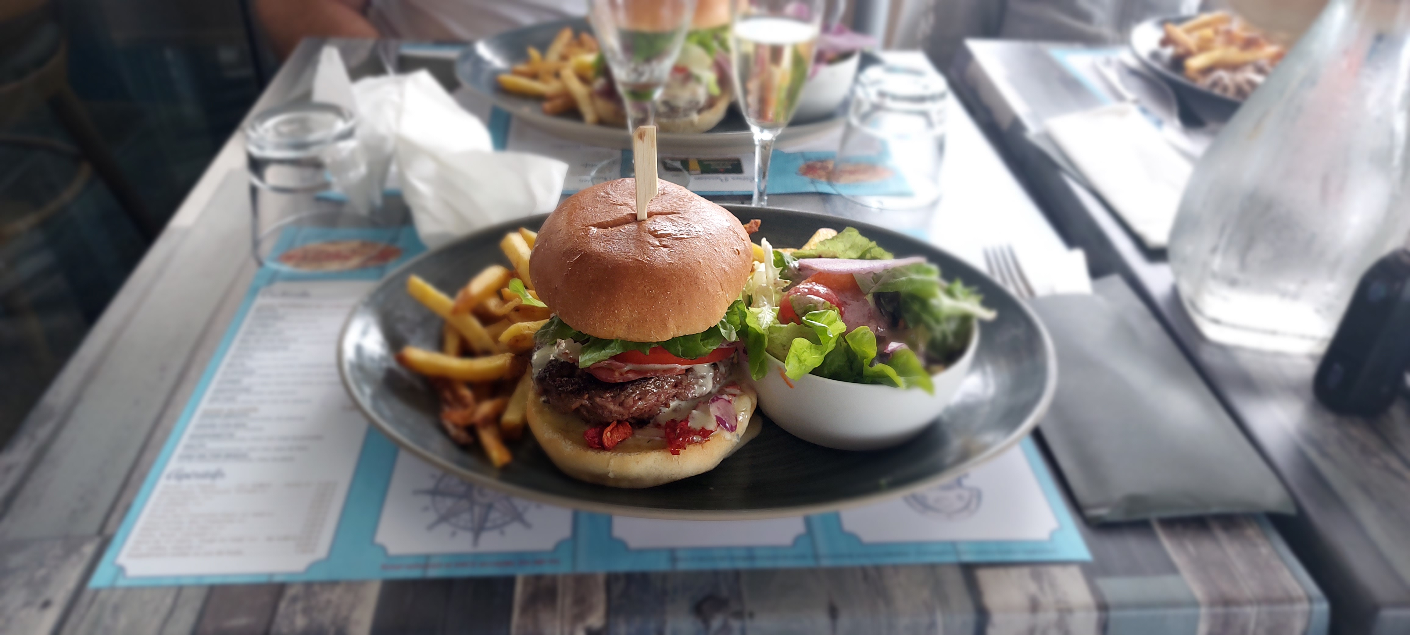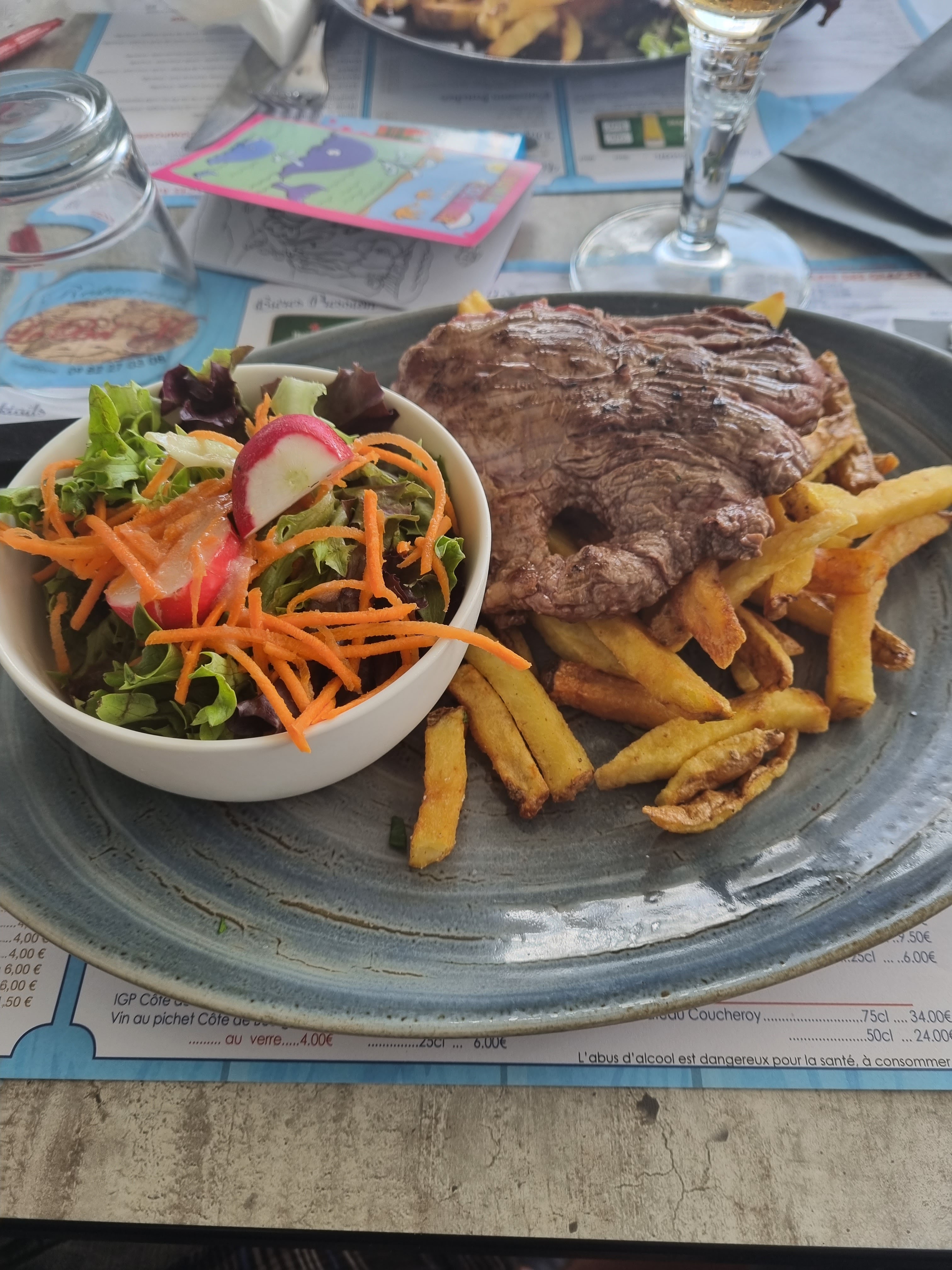 Cuisine un peu grasse, surtout les frites bien trop cuites voire noires. Déjeuner en terrasse close à cause de la météo, avec derrière nous, des clients fumeurs 😨. Etonnant ???