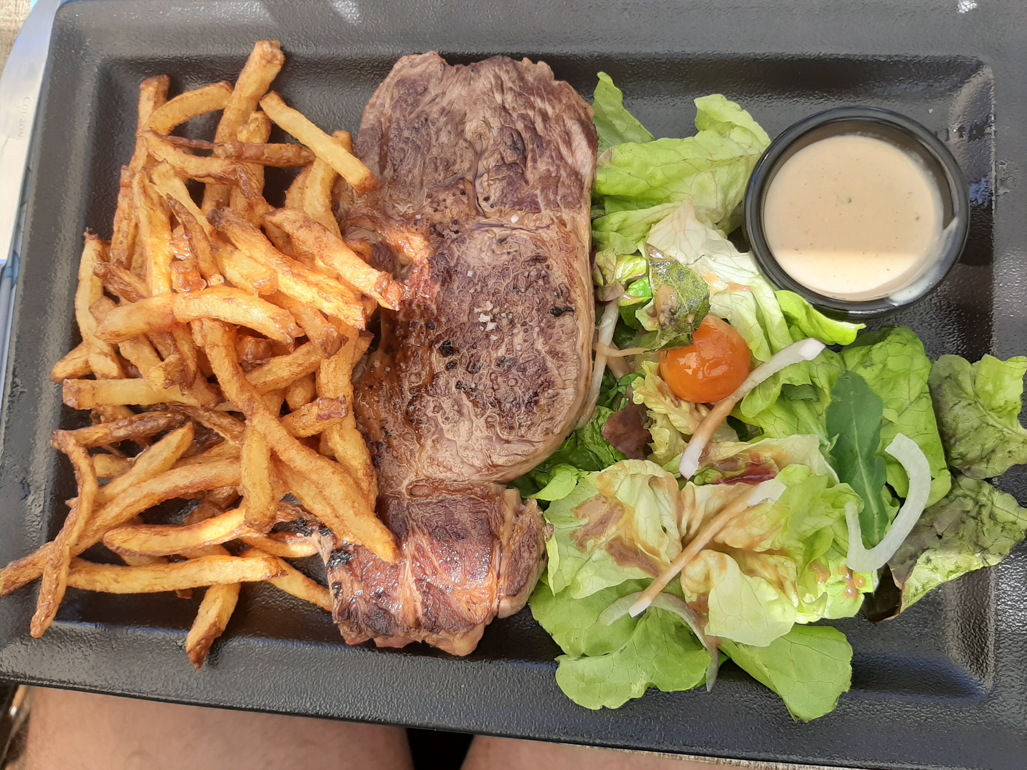 Belle découverte, très bon rapport qualité prix. Nous nous sommes régalés la pièce de boeuf était exellente. Le personnel est acceuillant et chaleureux. Un plus le chapeau de paille, pour nous protéger du soleil.