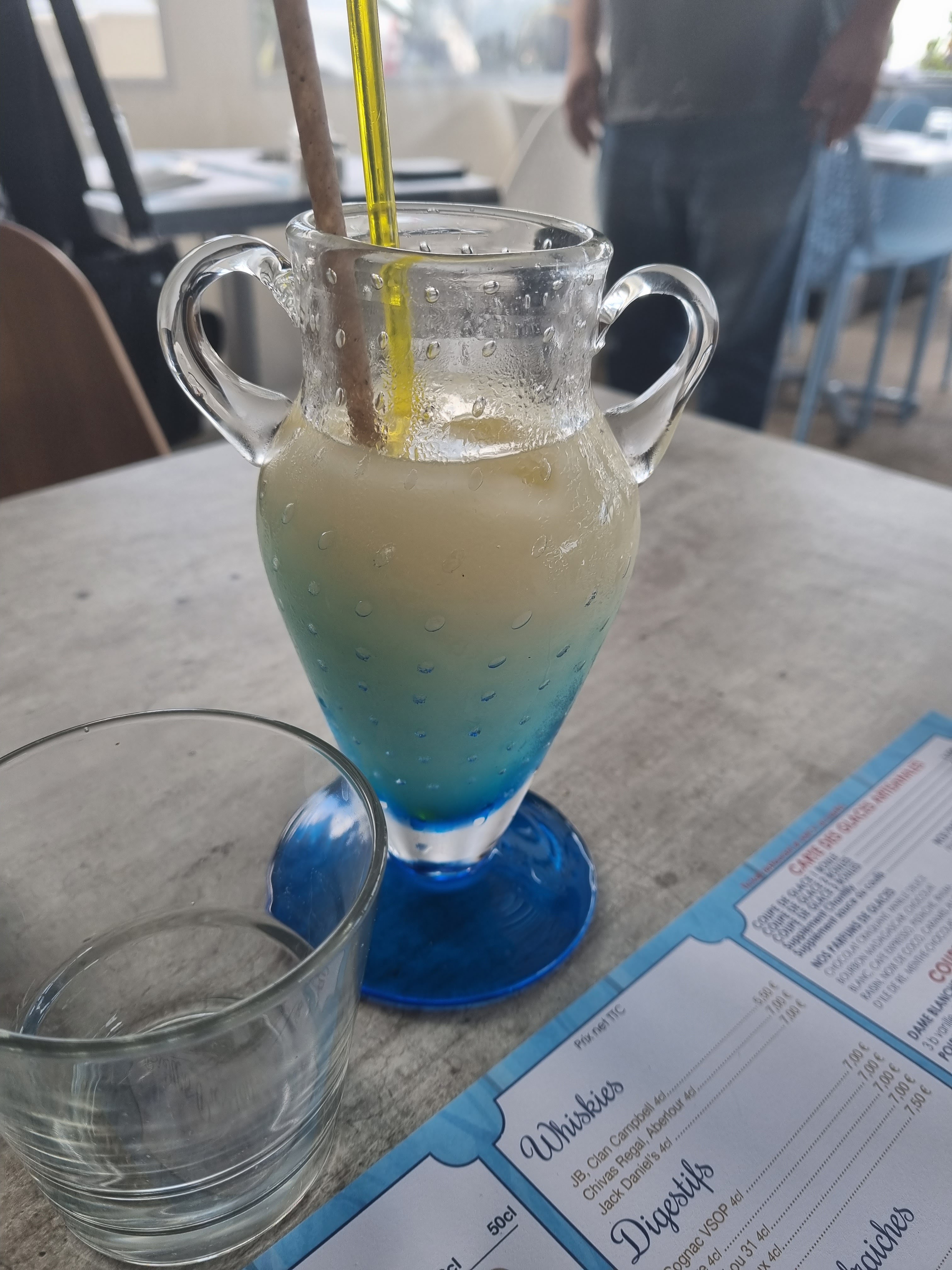 Testé juste pour prendre l'apéritif. La terrasse côté mer est très agréable, aménagée avec des fauteuils bas et des petites tables. La vue est très belle. L'accueil est normal, sans plus. J'ai bu une Pina Colada qui était bien chargée en Rhum, mais n'était vraiment pas la meilleure que j'ai jamais bue. En particulier, elle manquait nettement de lait de coco. Donc vous pouvez y aller pour le cadre, mais préférez d'autres boissons.