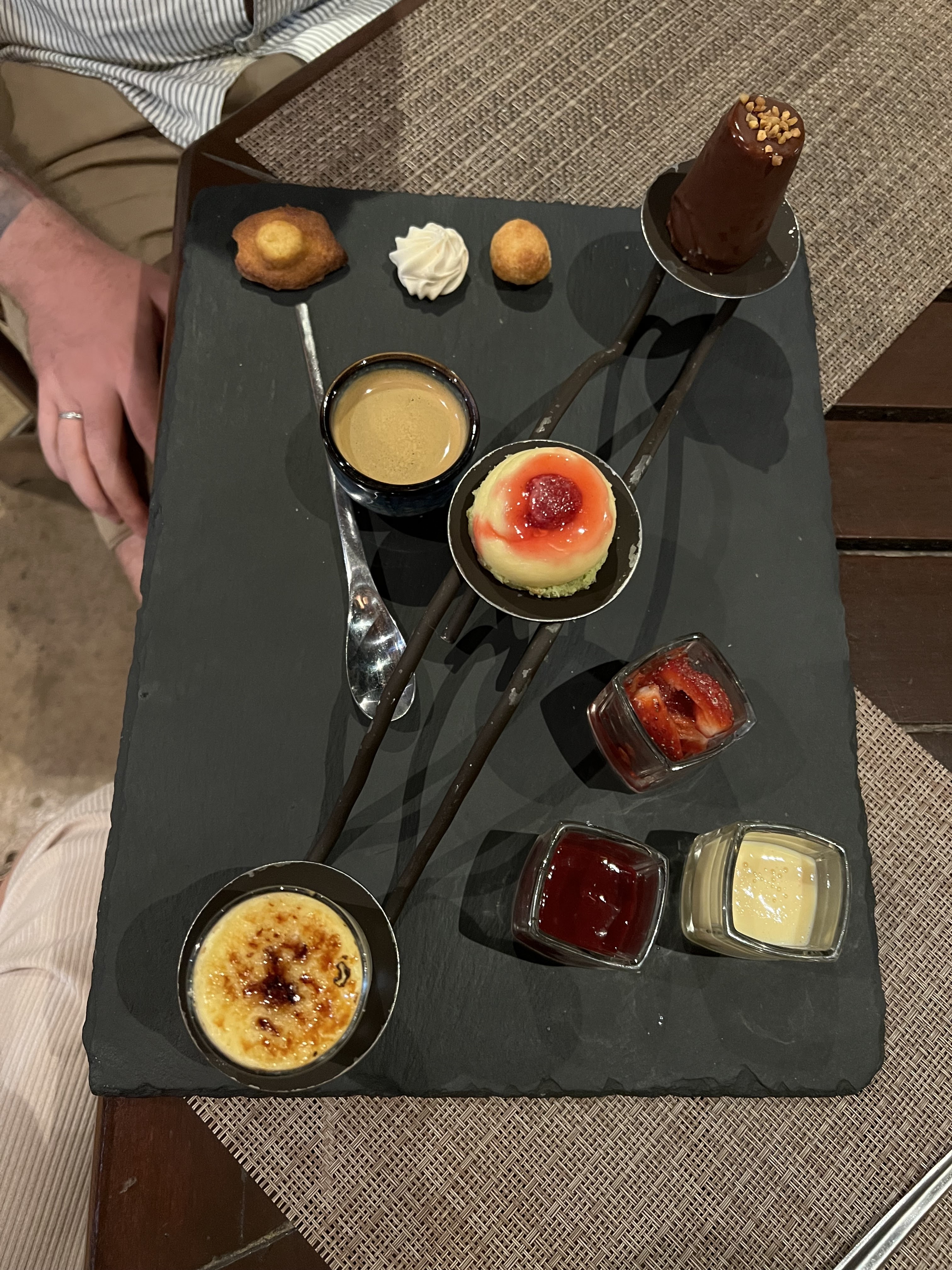 Accueil parfait malgré un monde fou Belle et bonne planchette de charcuterie corse Café gourmand très gourmand