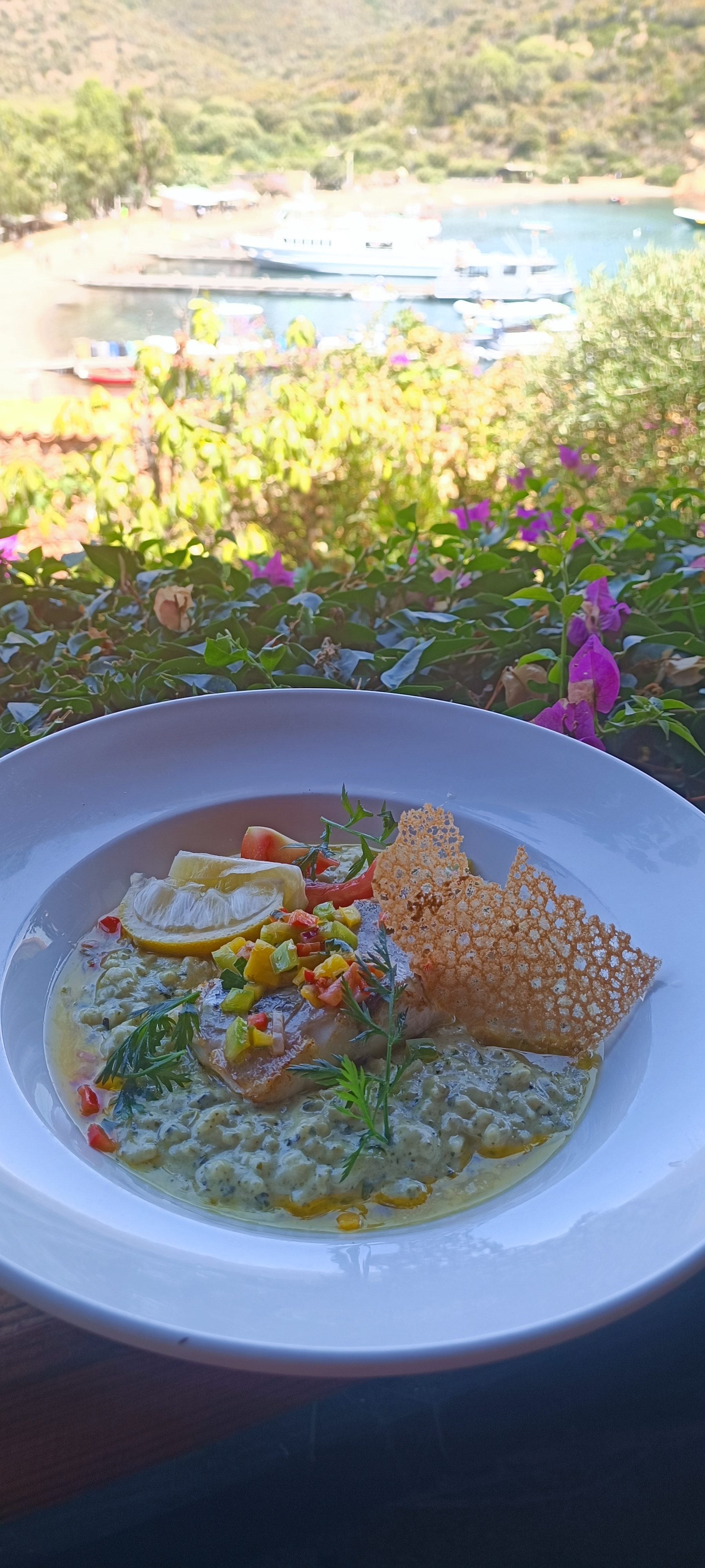 Très bon restaurant, présentation impeccable, plats délicieux, service au top... Avec des tables en plein air avec une vue magnifique sur l'intérieur de l'île... nous avons commandé un tartare de thon très frais, très bien assaisonné et accompagné d'une gelée de gingembre que je n'avais jamais mangé auparavant et qui était délicieuse, et nous avons également commandé la suggestion de la maison qui était du poisson grillé avec du risotto, de la ratatouille, une mini salade, très bon, les portions sont individuelles et petites... :) joli restaurant à visiter, super recommandation