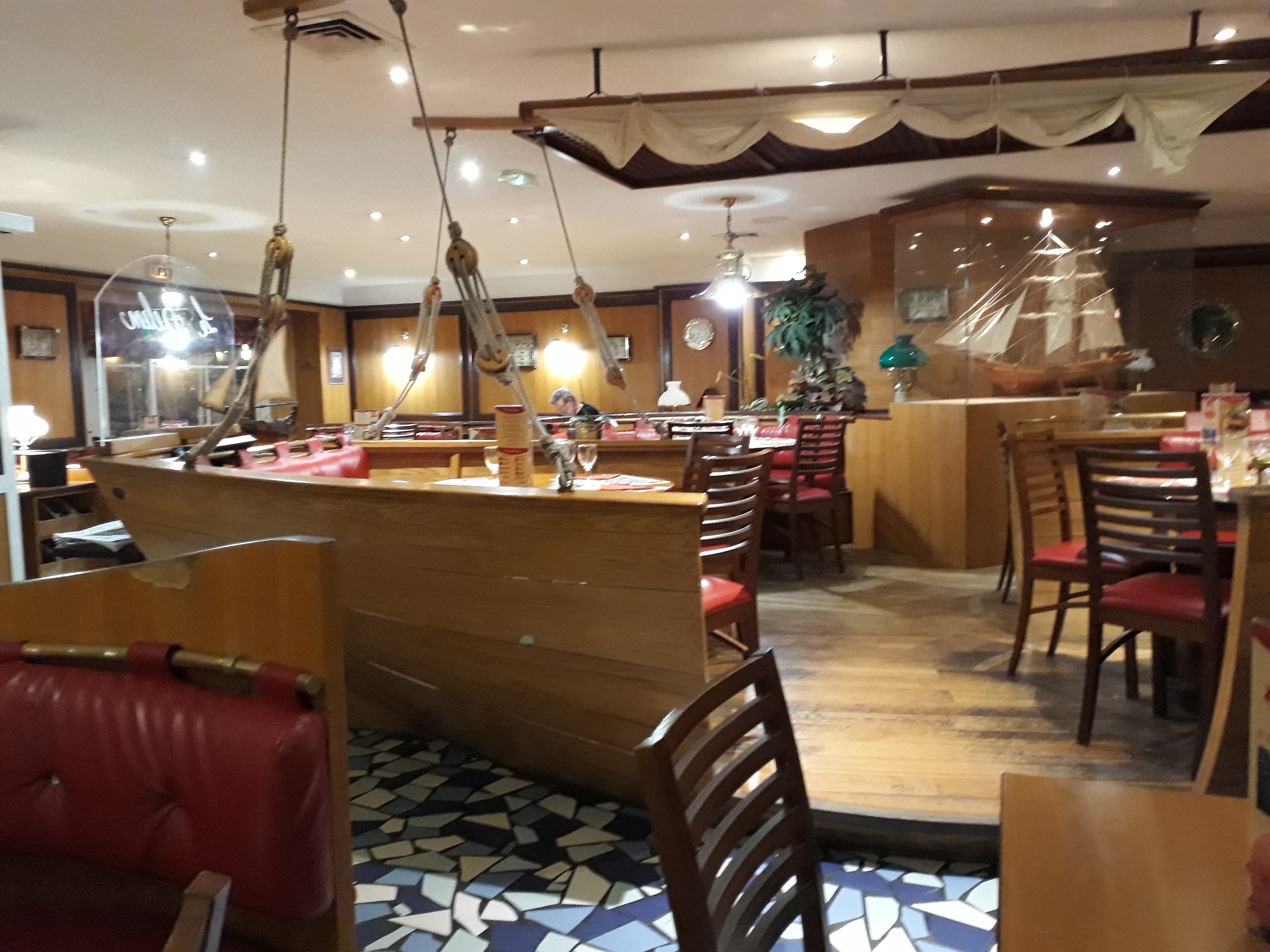 On a apprécié la décoration du restaurant, façon bateau très élégant ! On a apprécié le petit déjeuner qui était non seulement très bons et très copieux (jamais vu un petit déjeuner comme ça). On y a mangé un midi, on s’attendait à mieux comme on y avait déjeuner on a été un peu déçue sur la qualité de la viande proposée. Sinon tout le reste très bon. Merci pour votre accueil sympathique. Mais sinon bravo pour le petit déjeuner et la déco!