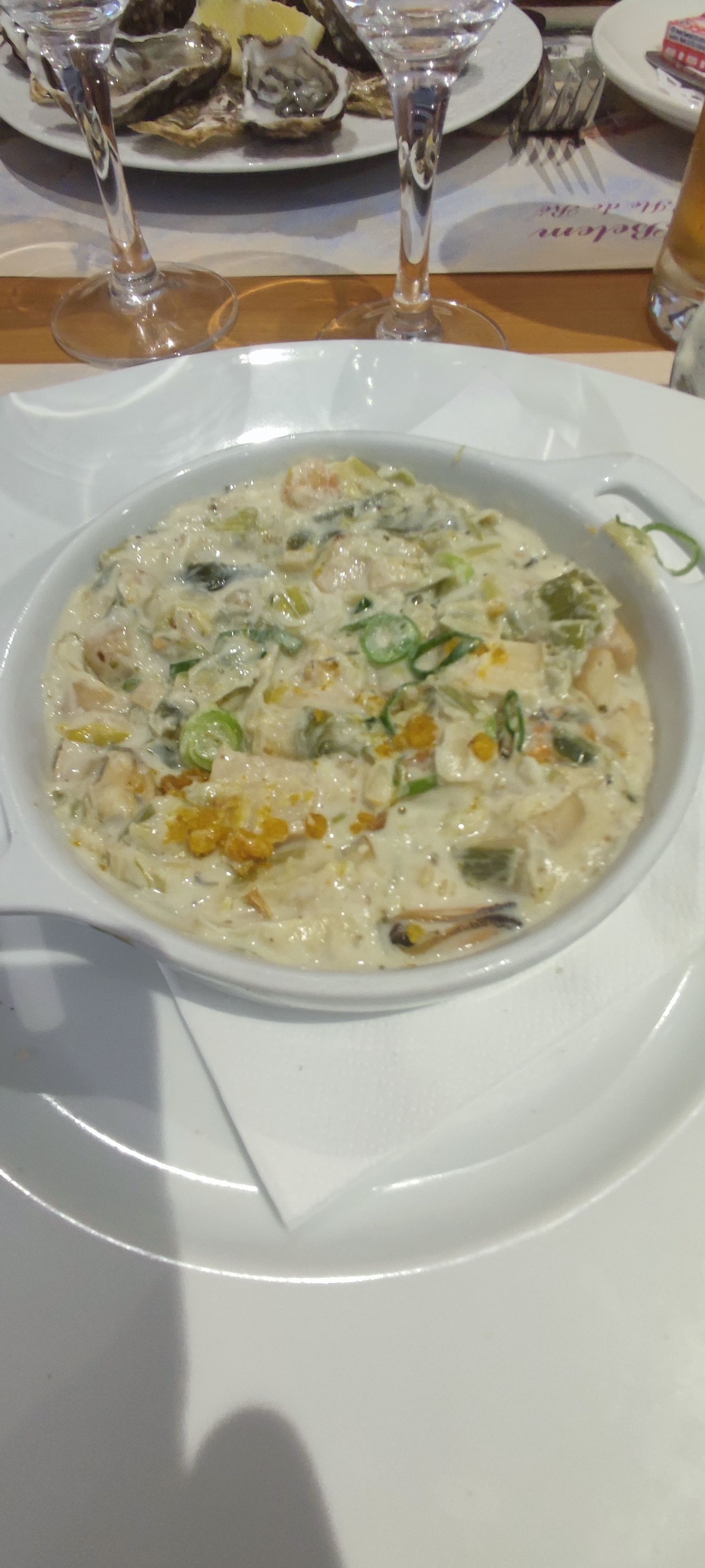 C'est un restaurant sur le port qui a un vif succès ! Un formule du midi qui marche! Nous sommes arrivés tôt et avons bien fait car les clients ont été légions ! Pour être franche, la température des plats était un peu inégale. La soupe avec le feuilletage était bien chaude mais mon plat était un peu juste. L'entrée, petite fondue de poireaux était excellente mais il ne fallait vraiment pas tarder à la manger. Le dessert était très gourmand et régressif ! Resto où les enfants peuvent venir sans souci!