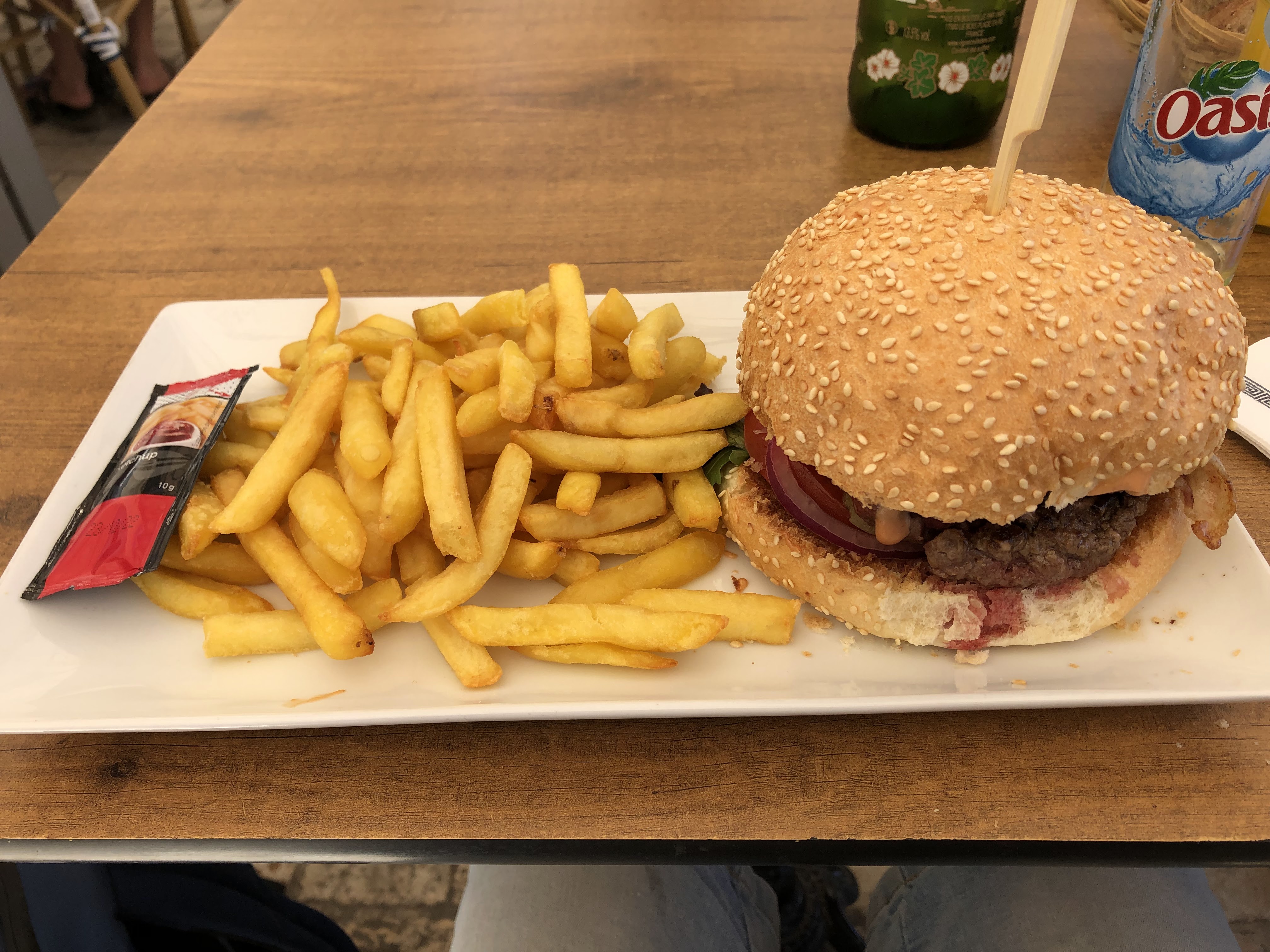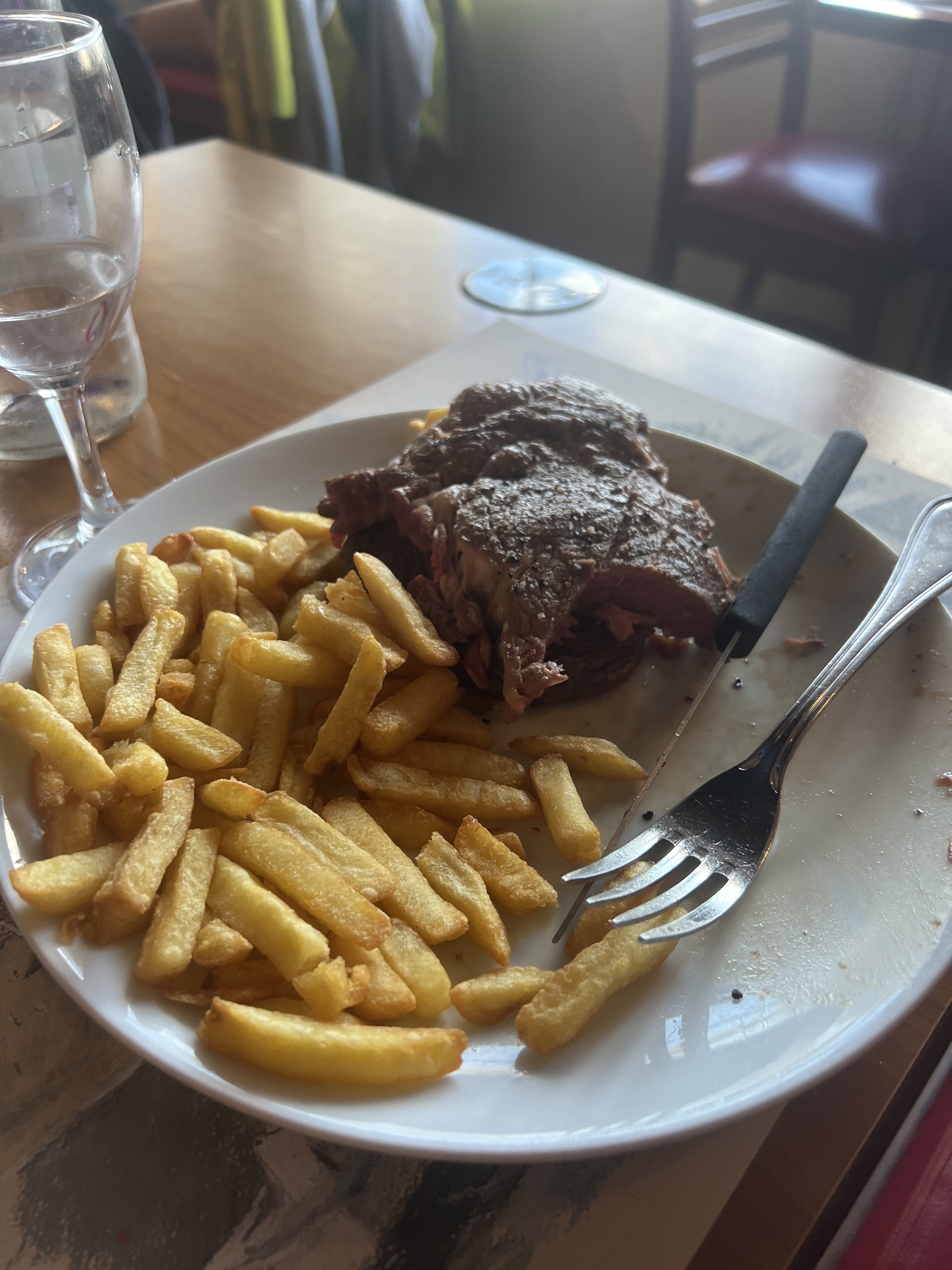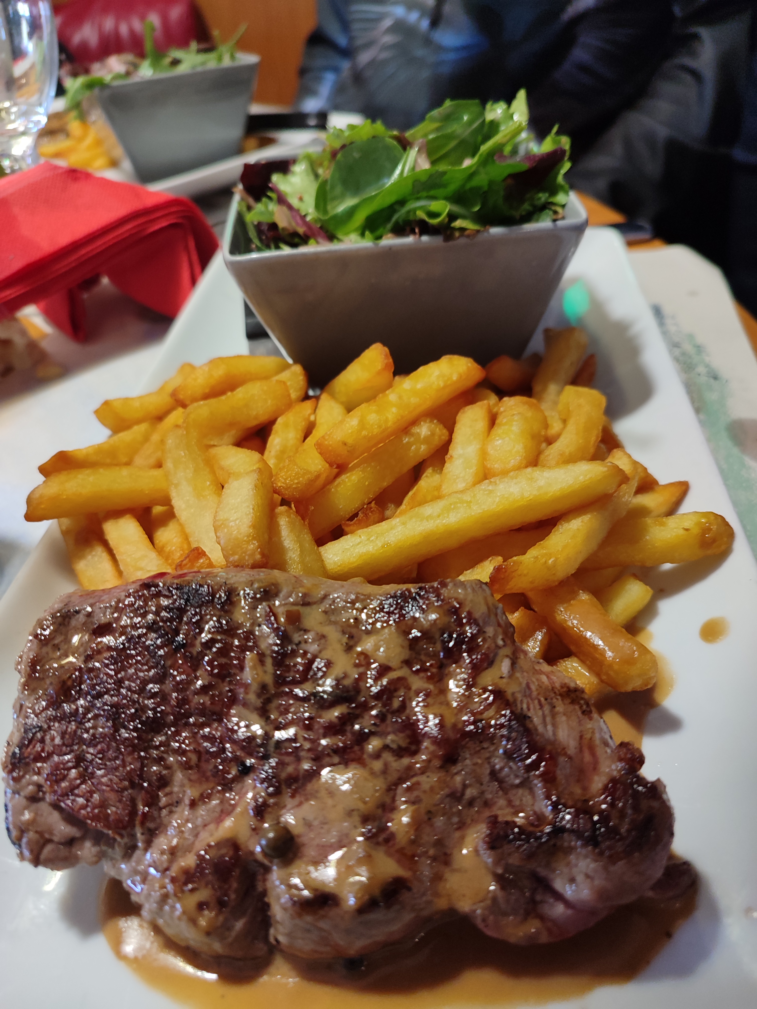 Un peu sur-côté… Service plutôt rapide au vu du nombre de personnes en terrasse et serveurs sympathiques, qui nous ont rattrapé l’oubli de notre réservation! Cependant les plats sont très ordinaires, pas super assaisonnés et pour notre dîner: Une piece du boucher avec un goût de poisson, plutôt étrange! Une bière dont la bouteille ne contient que la moitié de la celle-ci et le plat de notre guest de la soirée, qui a été zappé…