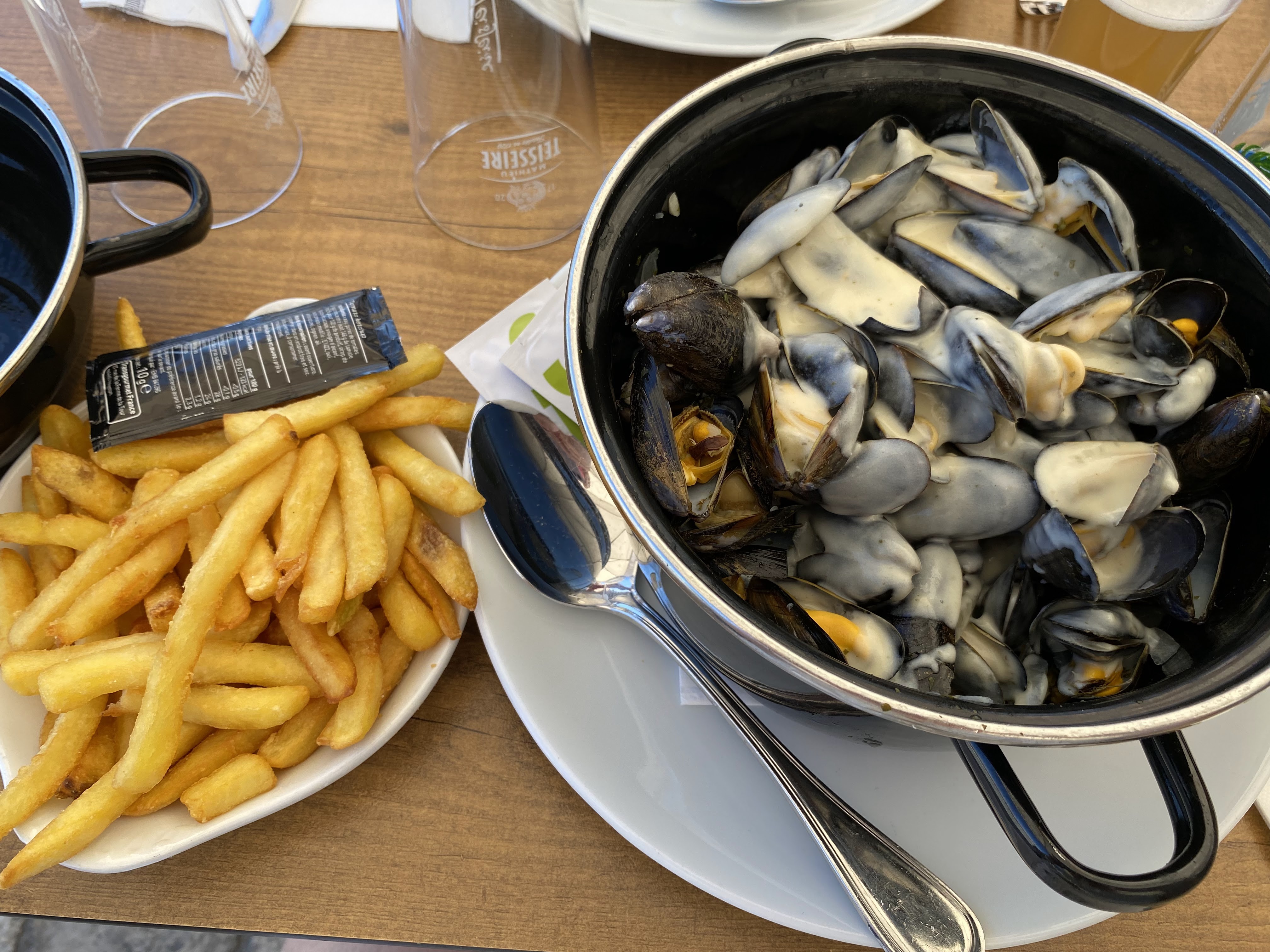 Accueil plutôt sympathique (nous y avions pris un verre (la veille) dans l'après midi et le personnel est relativement plaisant (mais pas tous - a chacun son tempérament même si le client... 🤔). Le service est trop rapide (laisse présager un certain besoin de rendement €€€...). Les frites et la mayonnaise, rien a redire... Les moules (crème) laissent planer un certain questionnement (voir photo). Sont elles toutes fraîches ??? Les moules qui se trouvaient au fond de la casserole sont reparties comme elles étaient arrivées (toutes fermées). Je suis plutôt du genre indulgent - même si cela reste tjrs une question d'appréciation personnel, mais là, je reste plutôt sur une note moins positive... A refaire ou pas, mais plutôt pas (selon moi)... Cet avis a été partagé avec un membre du personnel avant de payer l'addition et de quitter l'établissement. Un geste commercial n'aurait rien changé... Bonne continuation et bonne amélioration a toute l'équipe. 😉
