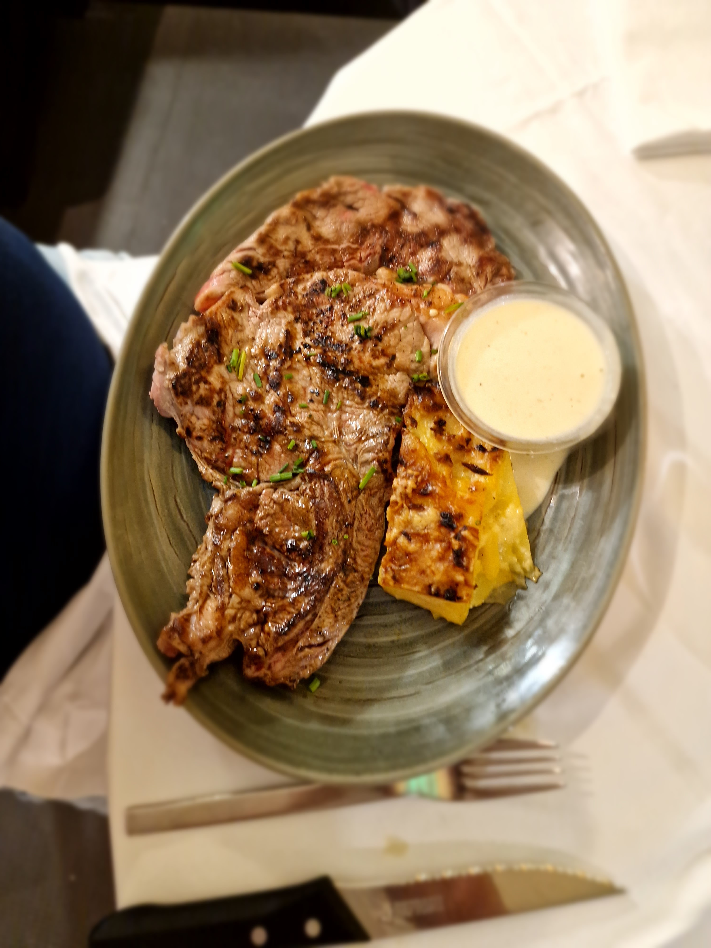 Bon restaurant et bonne nourriture. Un peu cher pour avoir des frites surgelé. Pour la même cuisson demandé sur deux plats, une trop cuite et l'autre pas assez. Un plat est suffisant pour un repas (bonne quantité)