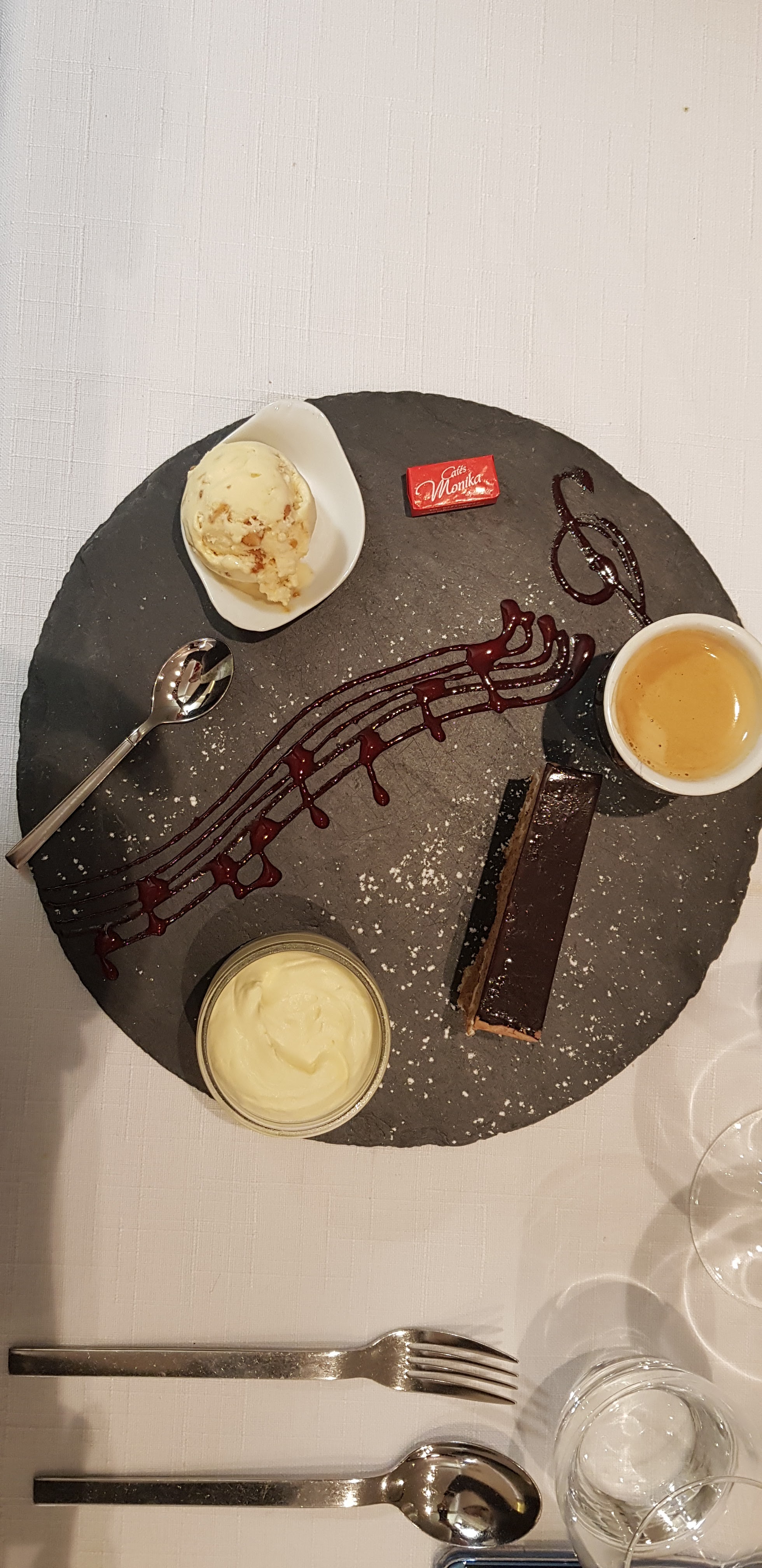 Très bon moment. Personnel accueillant, sympathique mais pas envahissant. Repas de qualité. Vins de qualité également. Le delices des épicuriens (dessert) est un incontournable, selon nous, pour qui aime les desserts. Franchement le choix qui nous a été proposé était parfait tant du point de vue de la saveur de chaque dessert que dans l'équilibre de la composition de l'assiette. Un tout grand merci pour le chef qui a composé cette magnifique assiette.