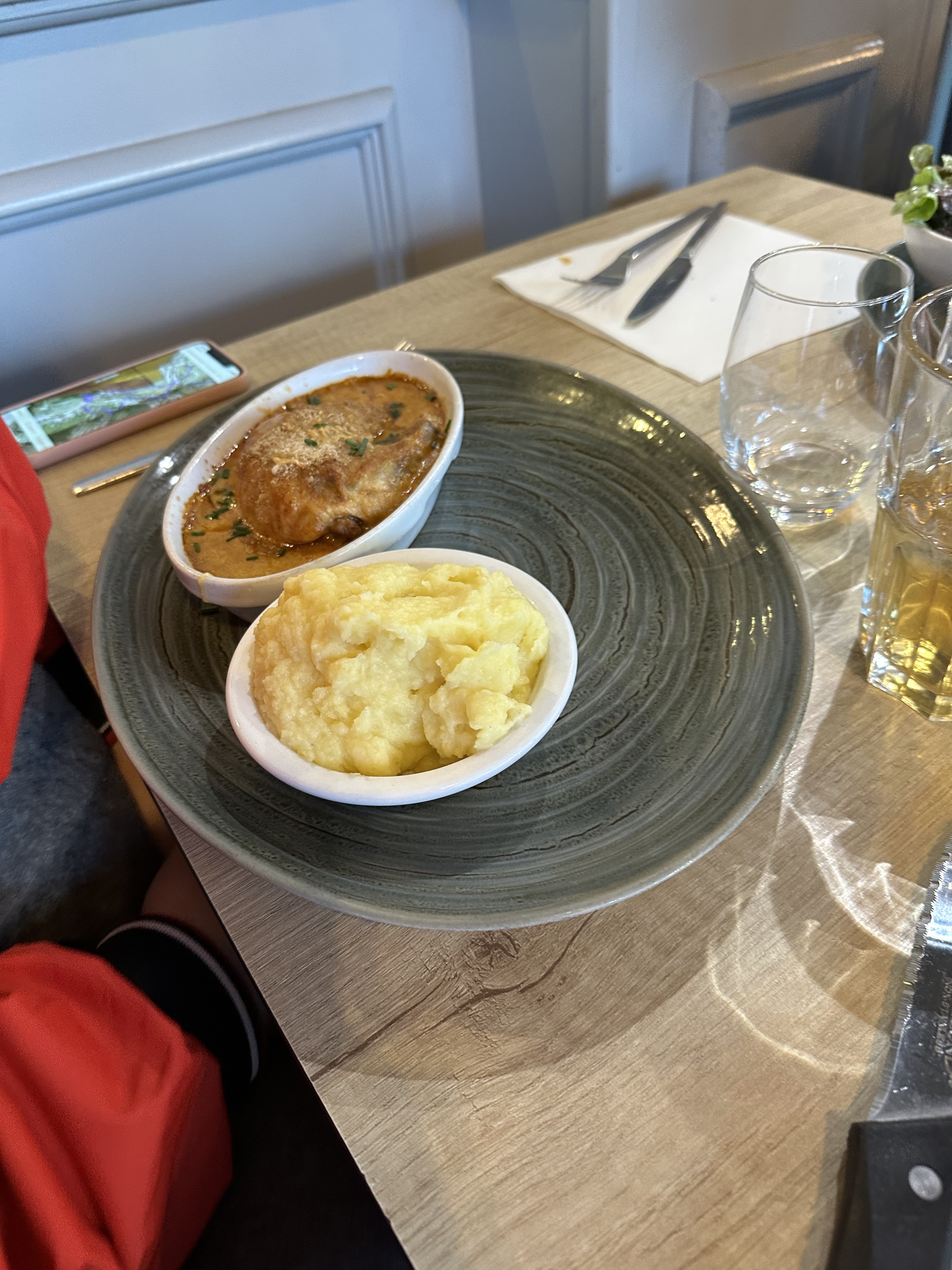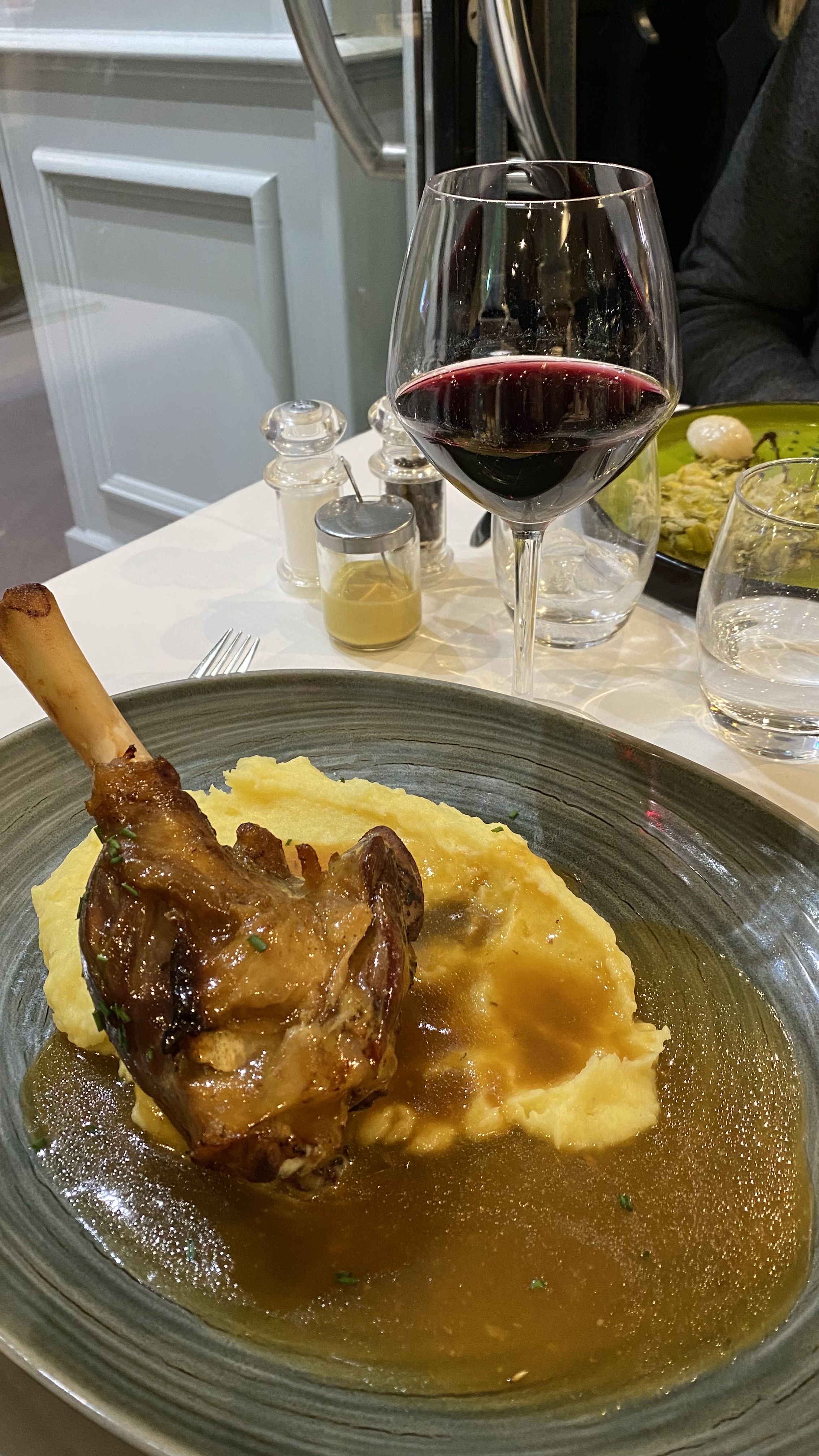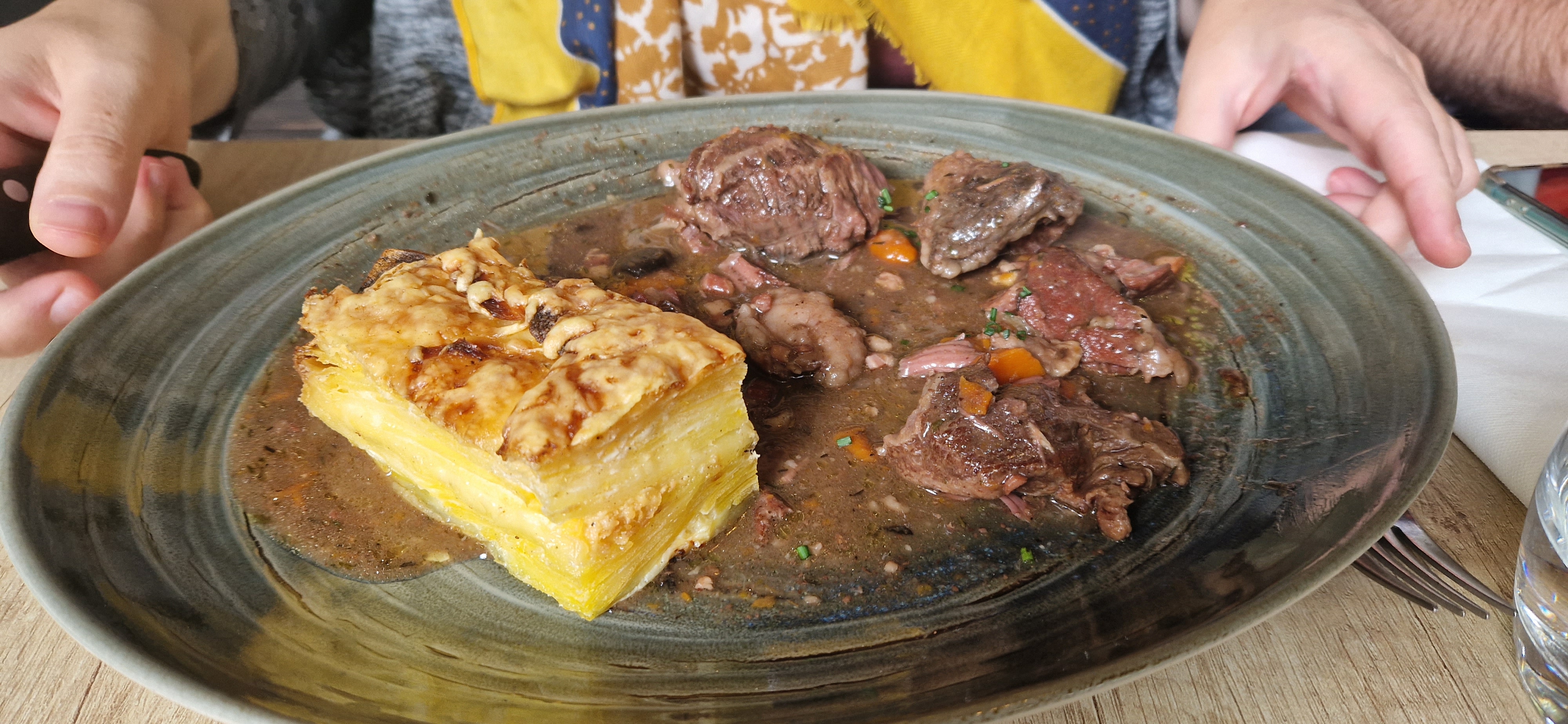 Le restaurant qui a accepté notre réservation pour 13h30. Un service d’une efficacité et d’une amabilité remarquable, chaque serveur a l’œil pour s’assurer que personne ne manque de rien. Œufs meurettes délicieux et joue de bœuf à la bourguignonne d’une grande tendreté avec une sauce réussie. Le gratin de pommes de terre au morbier qui l’accompagnait était bon même si je garde une preference pour les coquillettes. Un verre de côte de nuit tout à fait honnête. Chapeau aux équipe, depuis la salle jusqu’en cuisine !