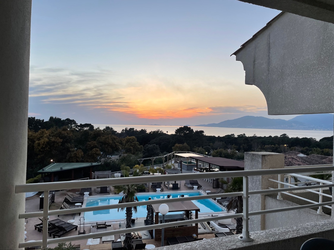 Nous avons eu la chance de séjourner en appartement duplex, rénové vue mer. Appartement spacieux, propre, climatisé et très fonctionnel. Grande salle de bain, et très bonne literie. Magnifique vue sur le golfe d'Ajaccio et possibilité de profiter des magnifiques couchers de soleil. Trés bel aménagement autour de la piscine avec bar (fermé en hors saison) A proximité des commerces, bars, restaurants et plage. Personnel très accueillant, disponible et sympathique. Mesures COVID respectées, je recommande vivement.