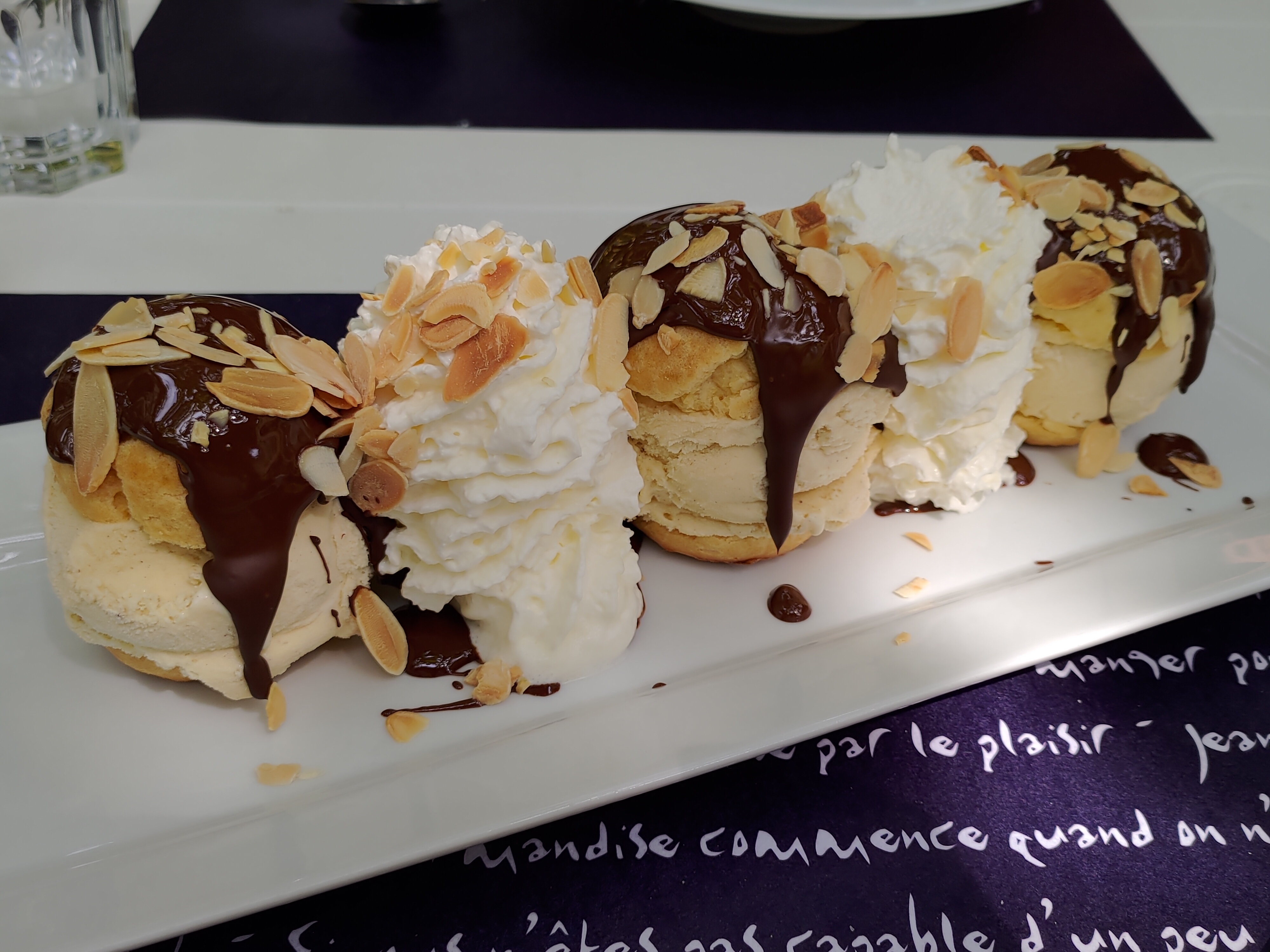 De l'entrée au dessert un régal, les beignets de courgettes sont excellents et la daube une tuerie, le dessert les profiteroles, incroyablement délicieuses et généreuses, le tout dans un magnifique cadre avec un acceuil au top, je recommande cette table ++++
