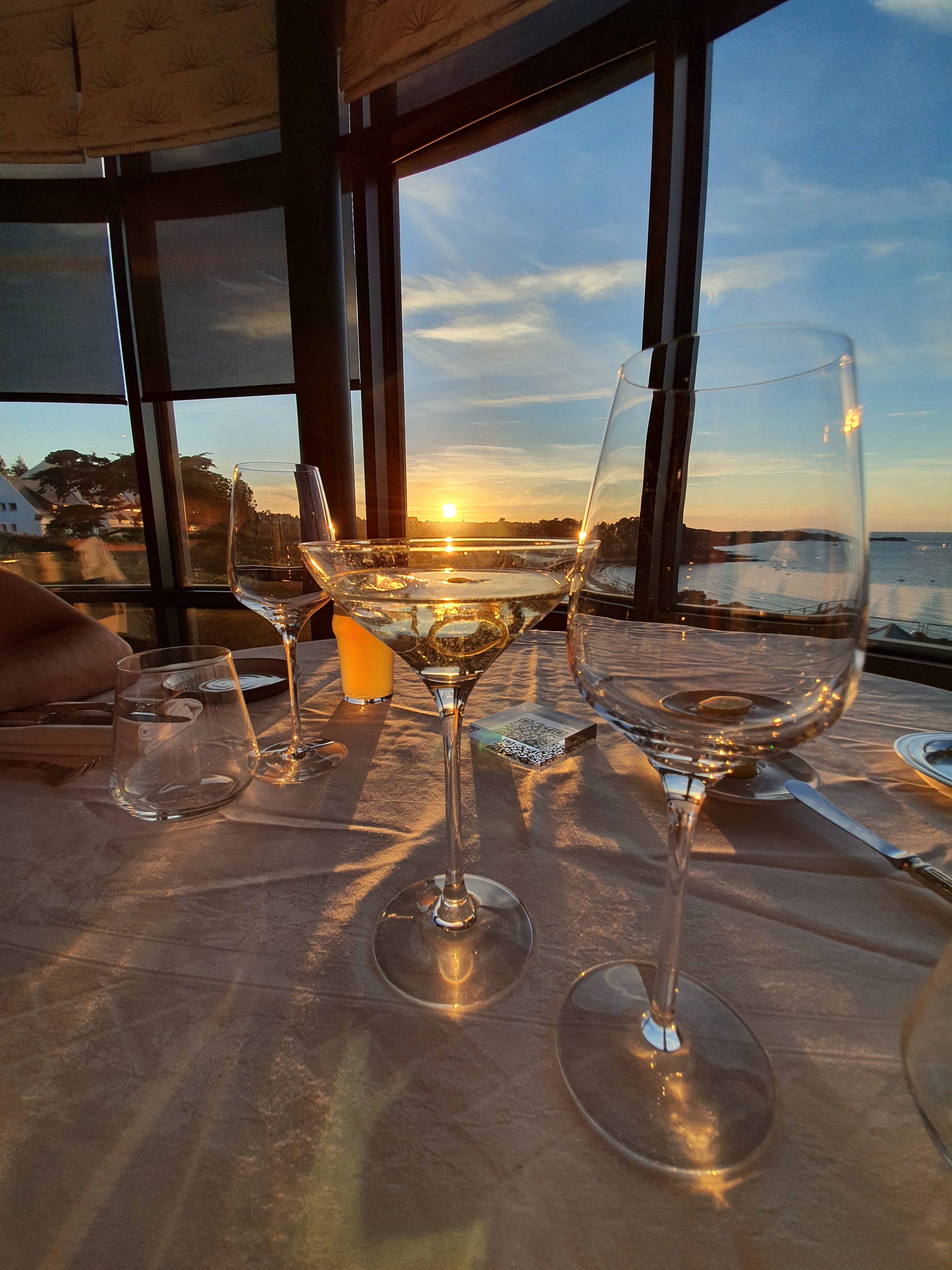 A l'occasion d'un déjeuner, nous avons profité du menu du midi à 36€. Nous avions contacté le restaurant quelques jours à l'avance pour prévenir de notre régime (sans viande) et le restaurant a bien adapté le plat avec un poisson. Nous nous sommes régalés avec de beaux produits pour un prix tout à fait raisonnable pour un restaurant de ce standing. Les proportions sont généreuses et nous pouvons profiter d'un avant propos et de mignardises. La vue sur la baie de Perros-Guirrec est sublime. Le service est très bon. La salle a été refaite courant 2023 et est toute neuve. Le choix des tables carrées dans la rotonde est surprenant, par le passé les tables rondes permettaient aux deux convives de faire face à la vue (imprenable) sur la mer. A présent une des deux personnes est dos à la vue, c'est un peu dommage.