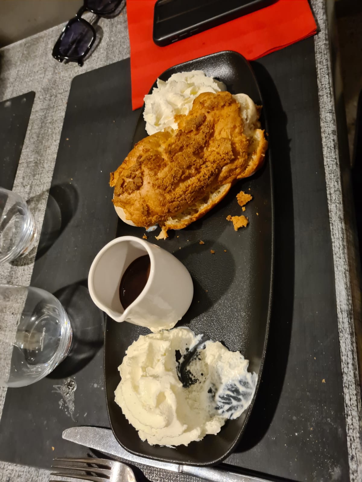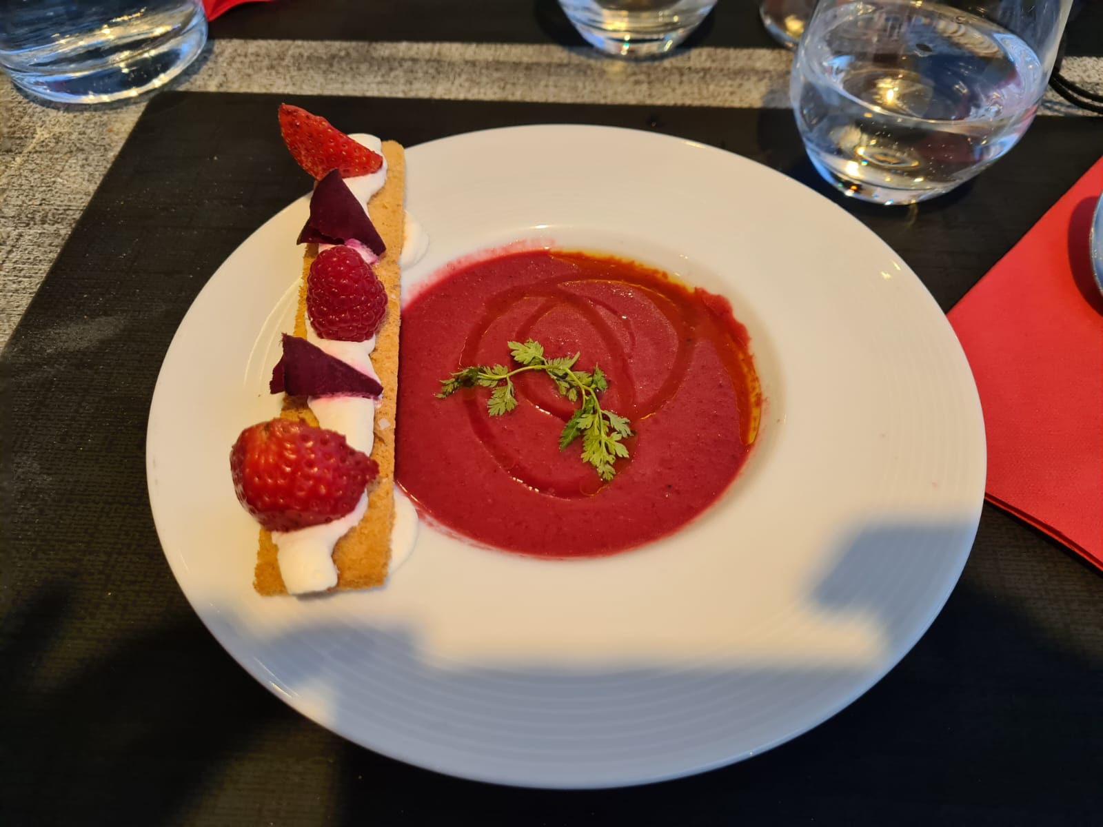 Nous avons passé un moment très agréable en ce dimanche soir. Je pense qu’il est difficile de dire du mal du cadre… Le serveur était très agréable, un professionnalisme irréprochable et une présence suffisante. Les plats d’une grande qualité, copieux et originaux. Merci à vous pour ce moment. Je le recommanderai.