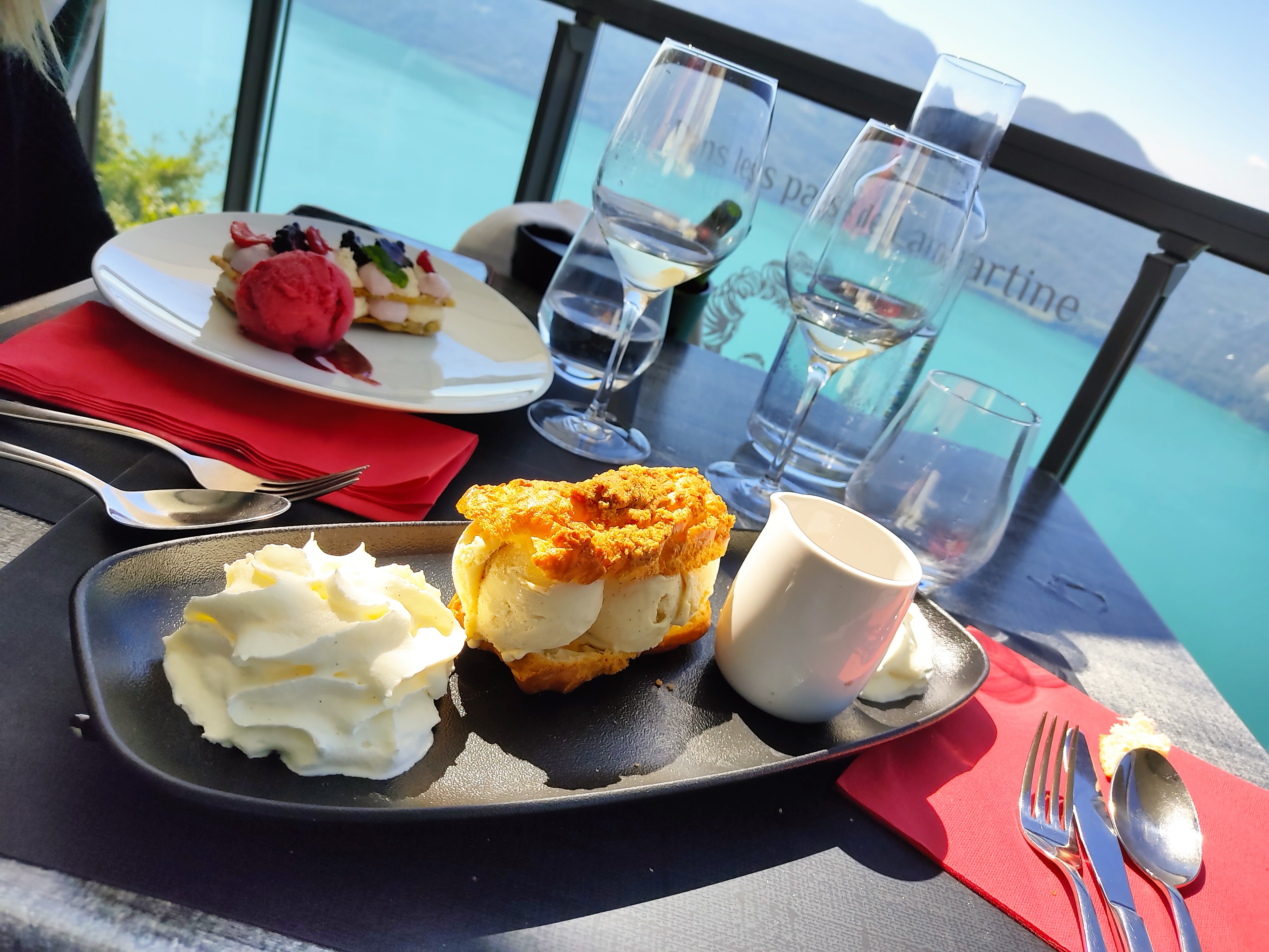 Cadre magnifique au dessus du lac du bourget permettant de l'admirer tout en se régalant des plats qui vous sont servis. Du plaisir dans tout les sens et un super service. Pour 2, je recommande !