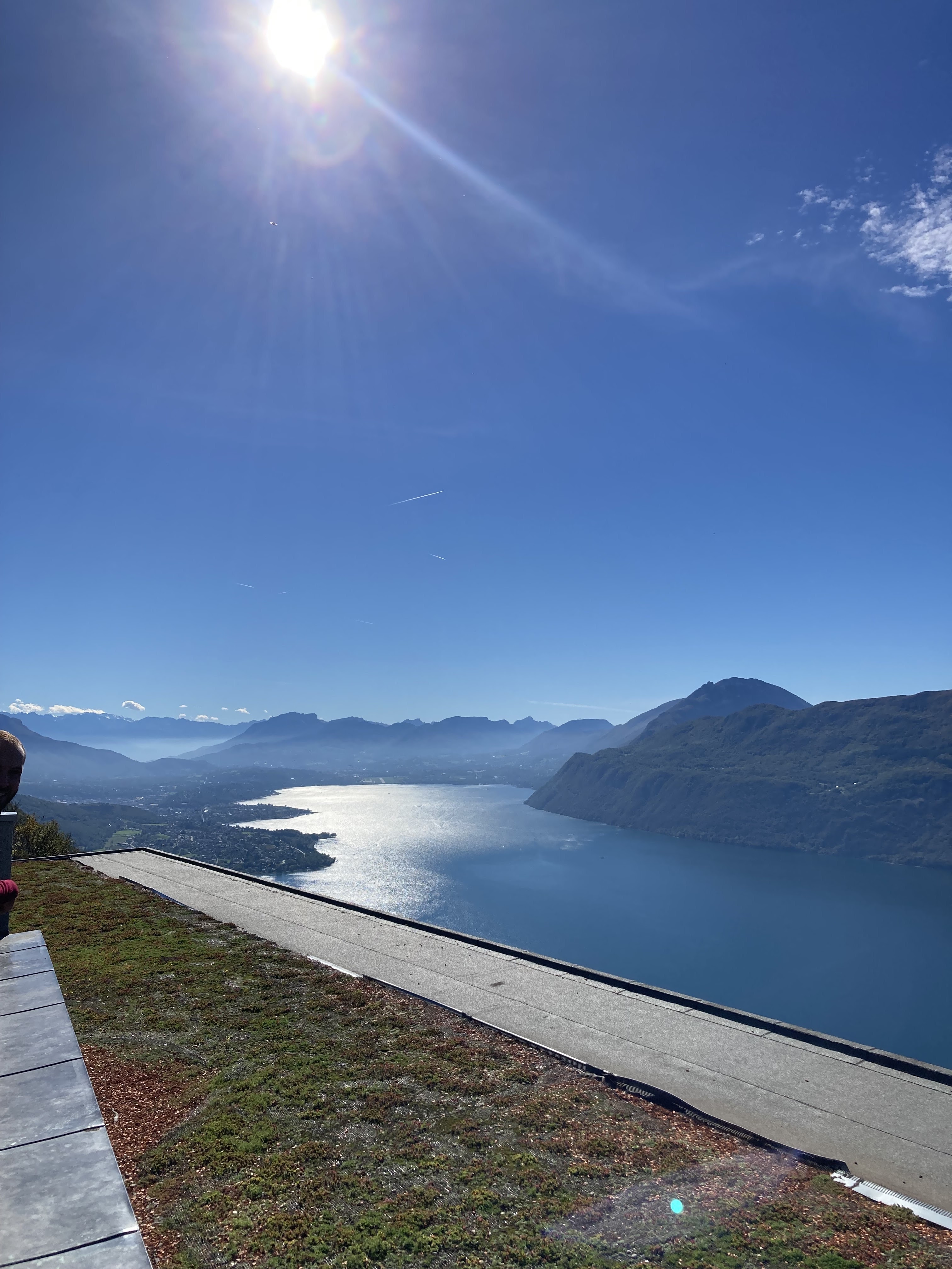 Vue magnifique sur le lac d aix les bains et sur la chaîne de montagnes. Acces à la vue et aux deux tables d orientation depuis le toit du restaurant (pas besoin de s y restaurer même si les plats ont l air vraiment sympas)