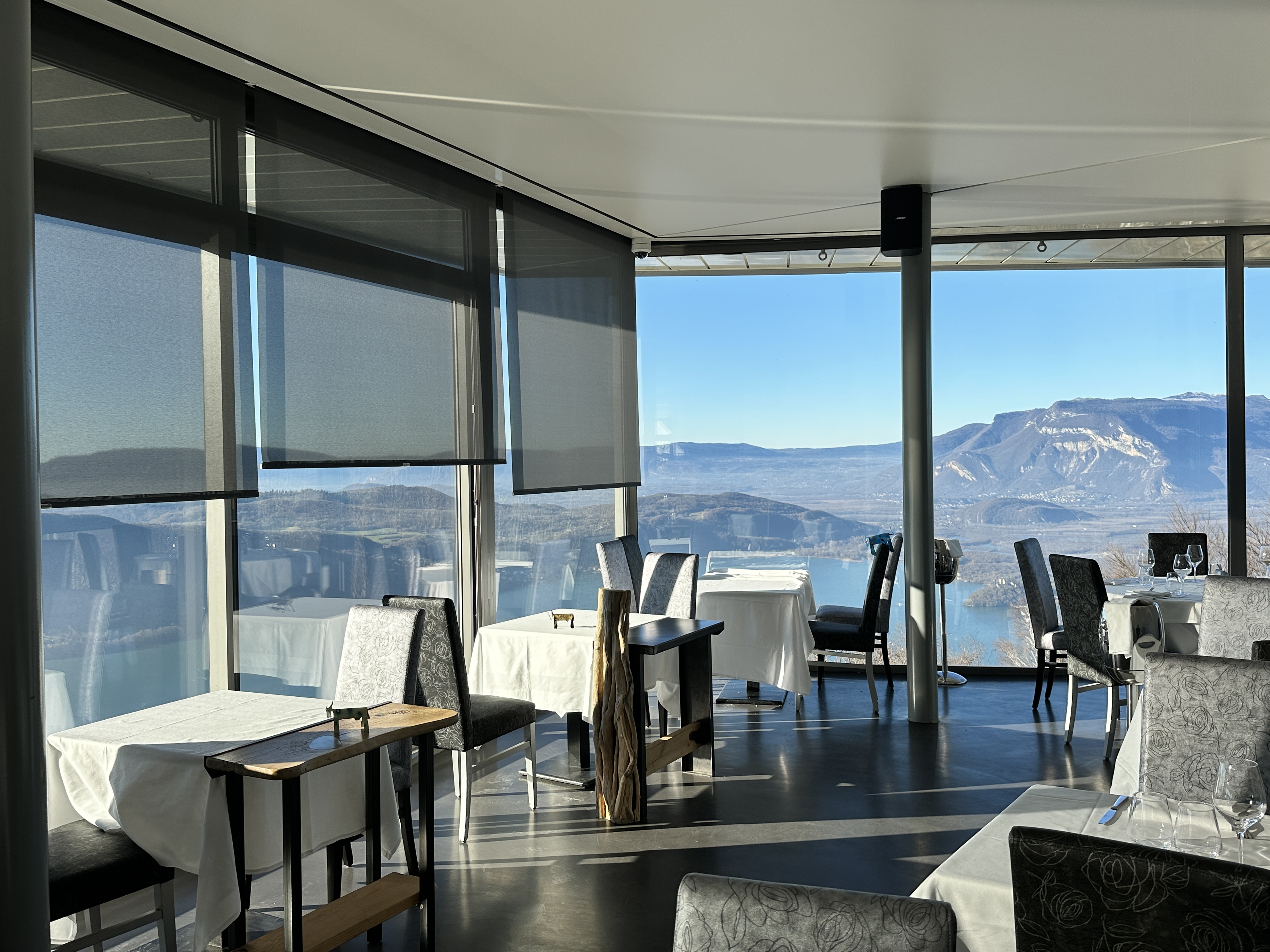 Joli restaurant avec une vue superbe sur le lac du Bourget et tous les environs, Savoie, Haute-Savoie, Ain, chaîne montagneuse du Jura. Repas très bon et personnel très sympathique (le resto vous envoie même un SMS pour vous remercier de votre venue 😊) À refaire !