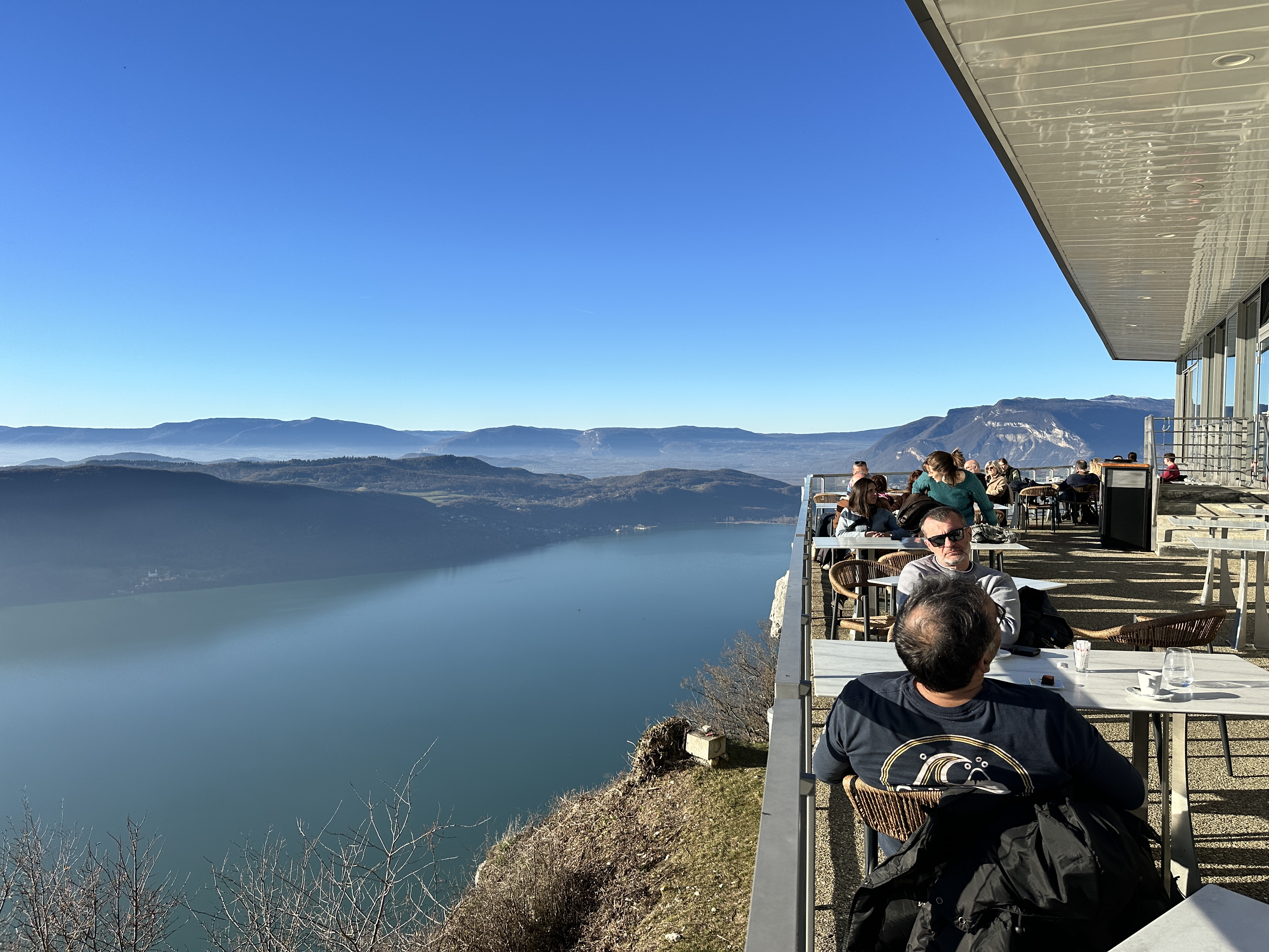 Vue sur le lac du Bourget , une folie d'une beauté que seule la nature sait nous offrir Pour le restaurant fermé ce jour là. On reviendra