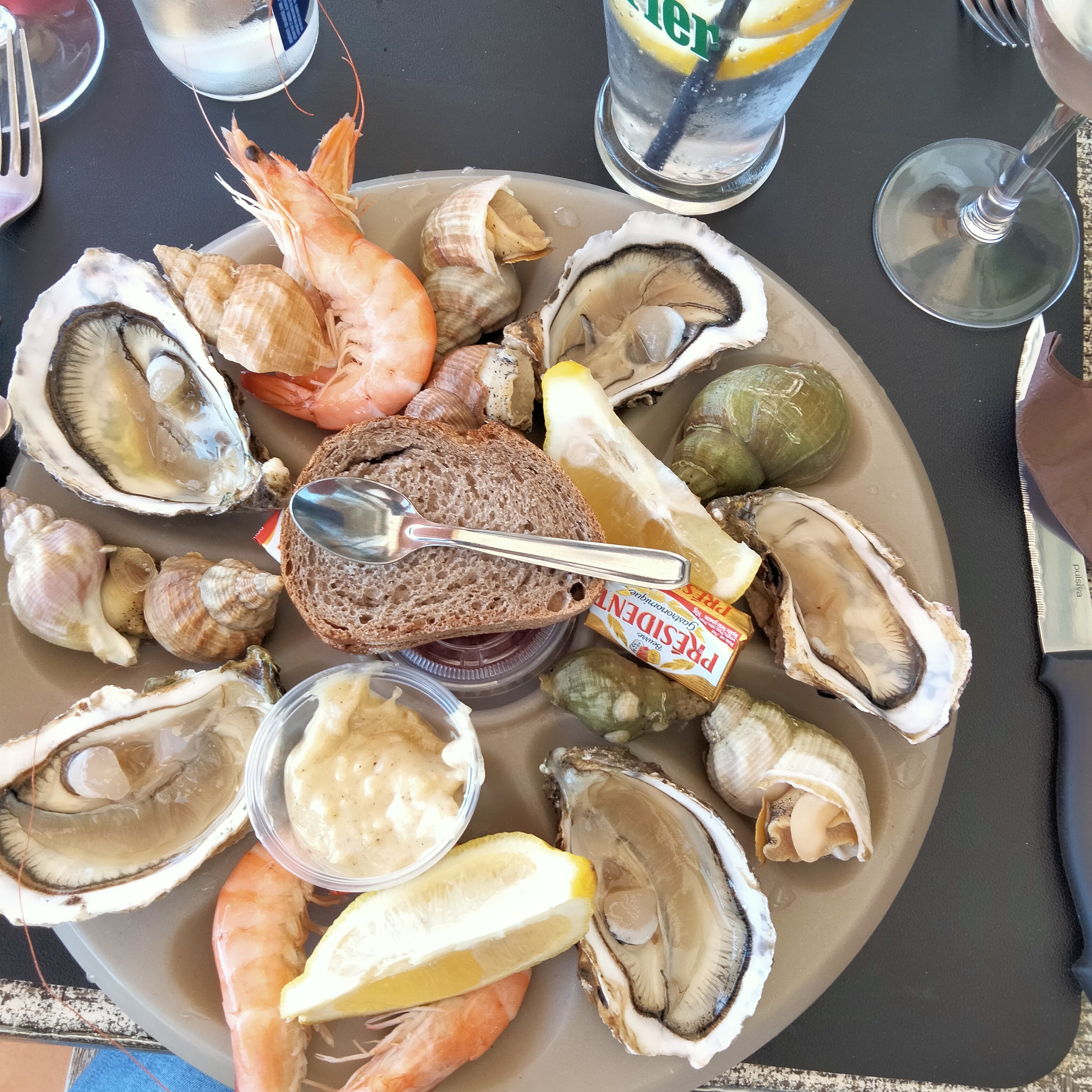 Une étoile pour l'emplacement, face à la plage et à deux pas du centre. Idéal pour manger un morceau et/ou boire un verre sans se priver, mais avec modération ;-), et filer profiter de la mer. Une seconde étoile pour le contenu de l'assiette. Après de très bonnes huitres de Bouzigues, certes pas ultra-locales mais valeur sûre, nous avons pris un duo de tartare de poisson absolument délicieux et servi généreusement. Une autre étoile pour le cadre et l'ambiance. C'est une brasserie et c'est tout ce qui en fait son charme. Le lieu vit, les habitués arrivent et repartent, ça discute et ça rigole, comme à la maison. Et d'ailleurs, on aurait presque envie de faire partie de la famille... Une quatrième étoile pour David, le patron. Alors que nous arrivions pendant le rush, il nous a gentiment convié à nous assoir à une table à l'intérieur en attendant quelques minutes qu'une autre table se libère en terrasse. Il a également pris le temps de discuter un peu avec nous et répondre à nos différentes question de touristes. Enfin une cinquième étoile, d'honneur celle-ci, pour David encore une fois, qui nous a conseillé un endroit magnifique pour dîner le soir et qui, de surcroit, a permis que nous puissions réserver alors même que l'établissement était complet, en parlant directement avec le patron de ce dernier. Merci David pour votre accueil chaleureux et votre sens du service. Nous reviendrons c'est sûr.