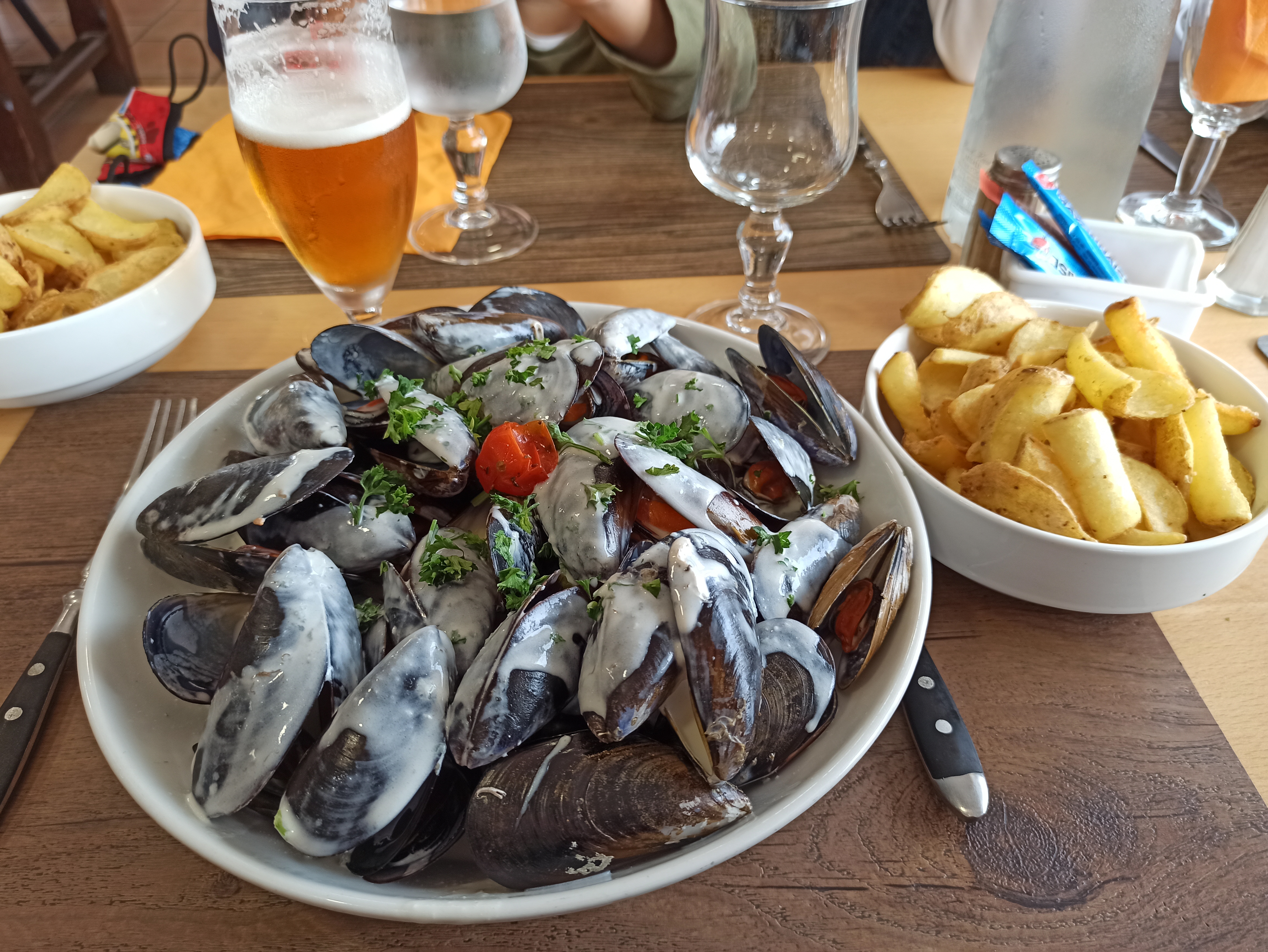 Bon acceuil du serveur,les moules petites et trop cuites, heureusement la sauce était là,frites de qualités bien moyenne et en petite quantité. Par contre la vue est superbe .
