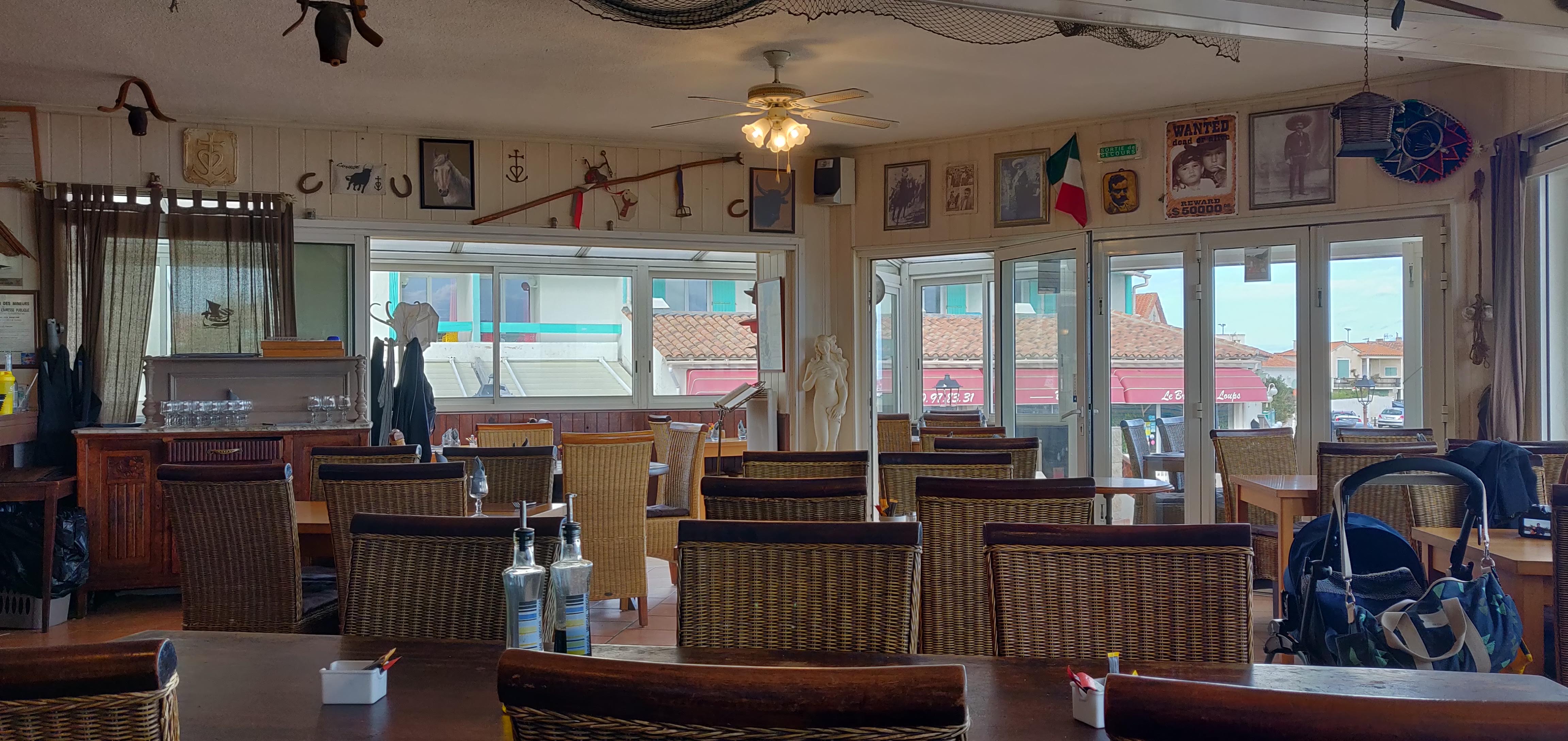 Cela doit être le seul restaurant qui a une vue qui surplombe la mer . Quand vous rentrez vous êtes bien accueilli , on vous guide dans vos choix sans vous imposer quoique ce soit . L'intérieur du restaurant est super bien décoré , du vrai camarguais ( photos du patron avec les Gipsy Kings et bien d'autres vraies photos ) des guitares décorées etc , bref un super lieu . Ils se permettent même de veiller à ce vous n'ayez pas vos plats tant que vous consommez tranquillement votre apéritif , un vrai luxe .