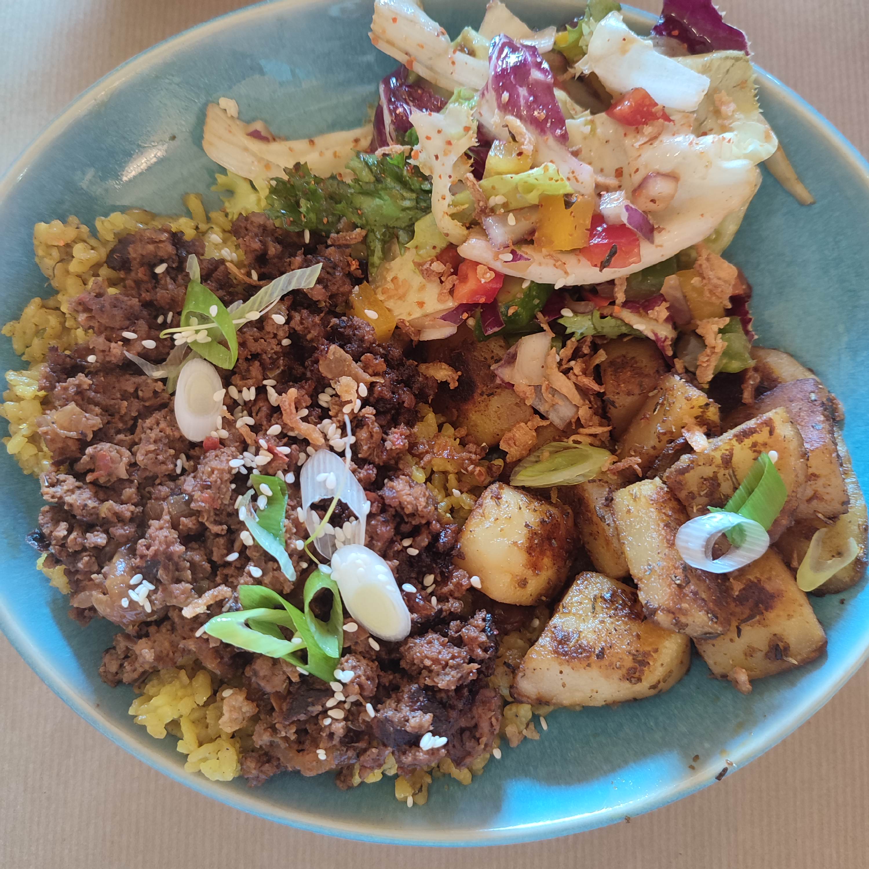 Petit restau très sympa ! Service avec le sourire, ambiance joyeuse et décontractée. Assiettes excellentes et bien garnies. Tout pour revenir goûter une autre fois ce qui nous tentait sur la carte. Originalité prouvée avec le surprenant Poulet Dynamite ! Mention spéciale pour l'infusion Hibiscus-Litchi : un délice !