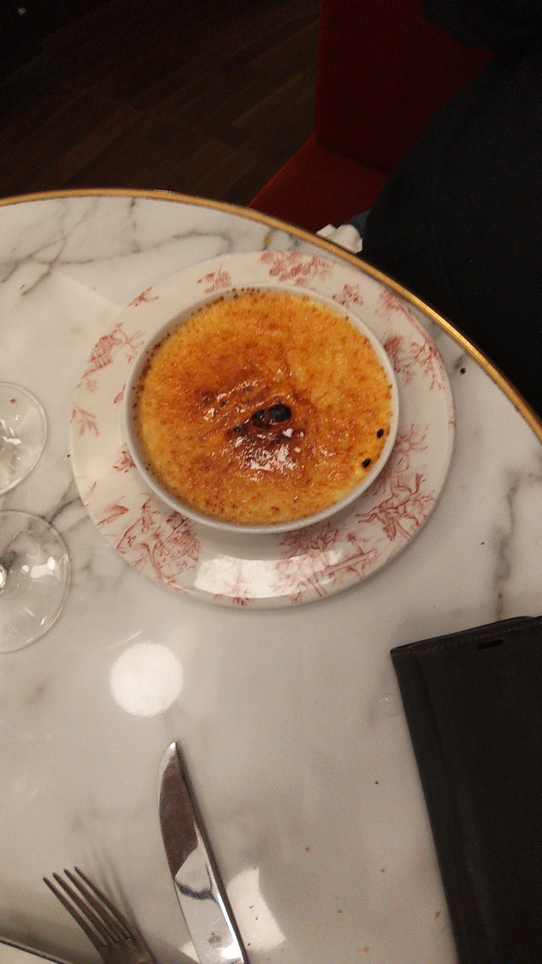 Beau bistrot, avec une jolie décoration, un peu bruyant dans la partie entrée du restaurant avec tous les couverts qui sont lavés et rangés. En plat j'ai pris les conchiglioni en trufferade à 19€, en fait c'est des pâtes en forme de coquillages avec des poireaux, des lardons, beaucoup de crème et un peu de truffe. À mon sens je m'attendais a un goût un peu plus truffé, c'était un peu subtil et le poivre prenait le pas dessus qui rendait le plat un chouia pimenté. Nous avions commandé dans le menu enfant à 10€, un steak à point qui est arrivé bien saignant, les frites qui allaient avec étaient bonnes. En dessert la crème brûlée est arrivée froide, elle a dû être brûlée bien avant d'être servi.