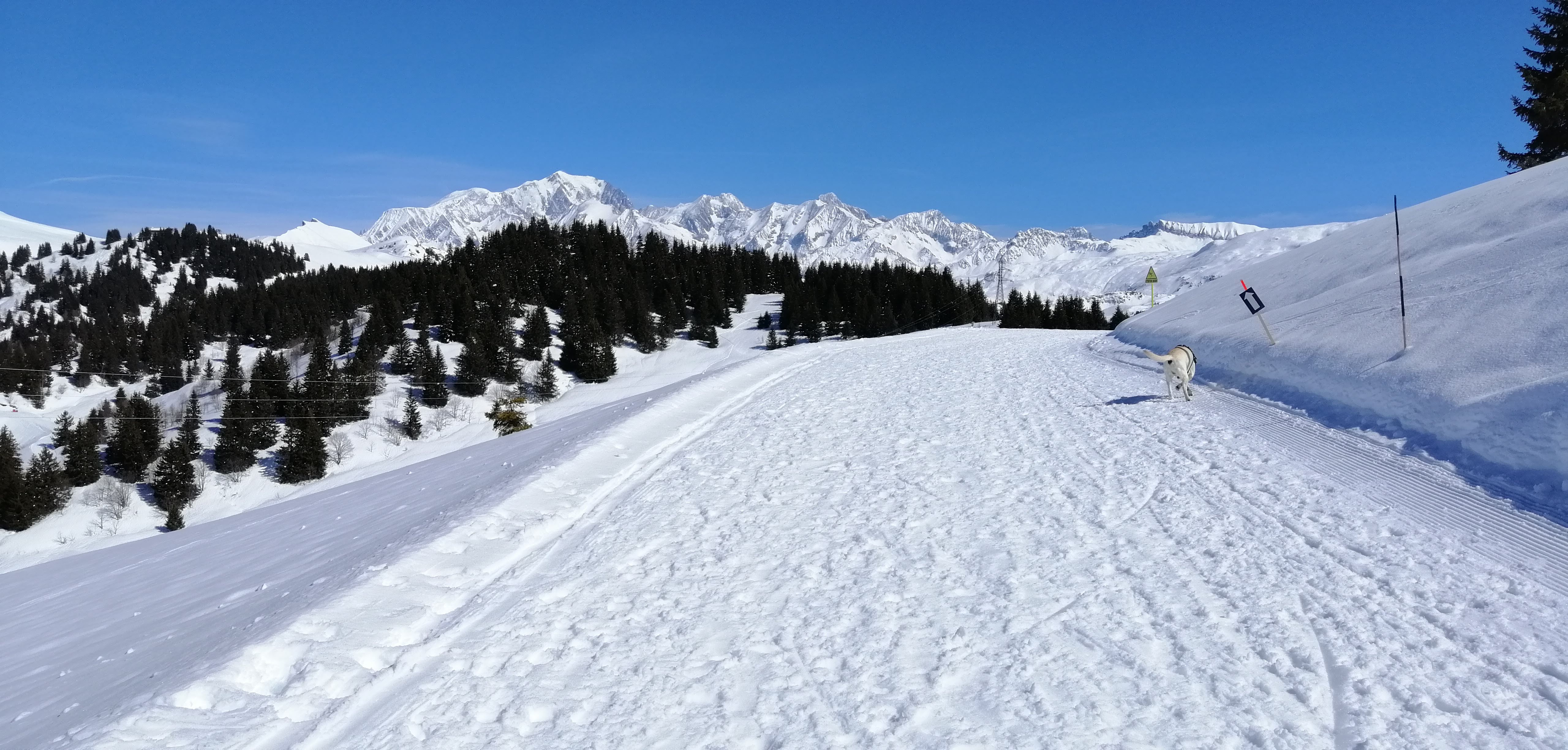 Vue sympa 30mn des Saisies par un chemin piétons sous la neige
