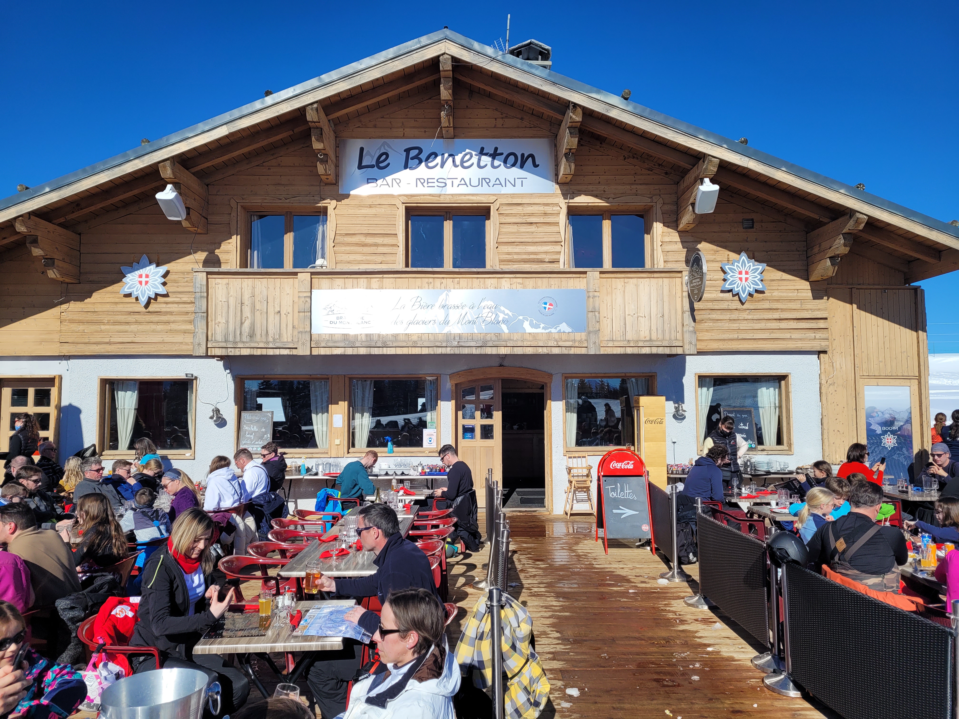 C'est un endroit qui se mérite ! Vue spectaculaire sur le Mont-blanc ! L'accueil est chaleureux et le Benetton a changé de propriétaire cette année ! Les serveuses et les serveurs sont très sympas. Petit clin d'oeil à Clara qui a été très efficace et adorable.