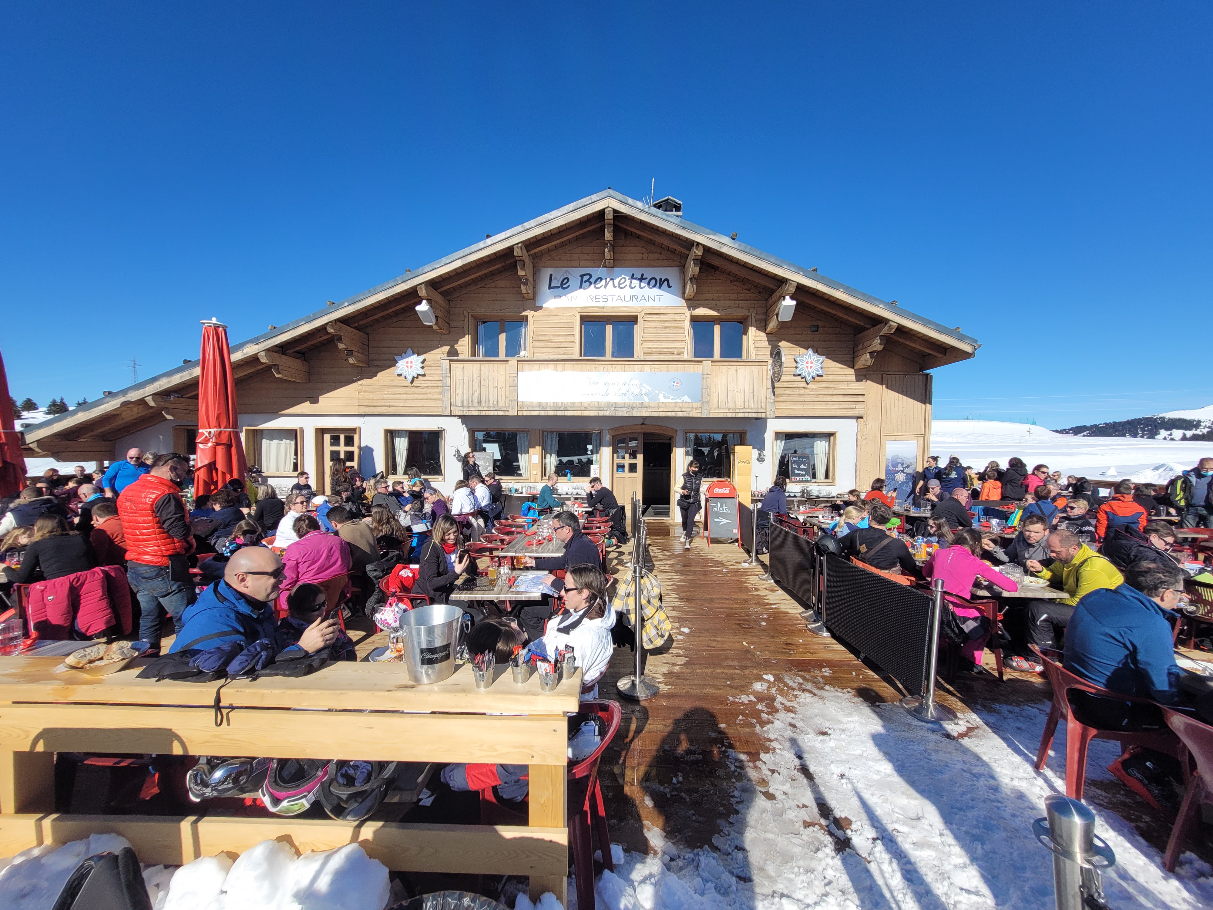 Une bonne pause sur le secteur est nord-est du domaine skiable. Personnel efficace et avenant. Les prix sont élevés, très voire trop,c'est malheureusement le sentiment qui reste après un moment de détente au Benetton alors que ledit moment de détente vaut clairement le coup d'être passé sur la terrasse ou dans le dur, les plats étant bons et copieux.