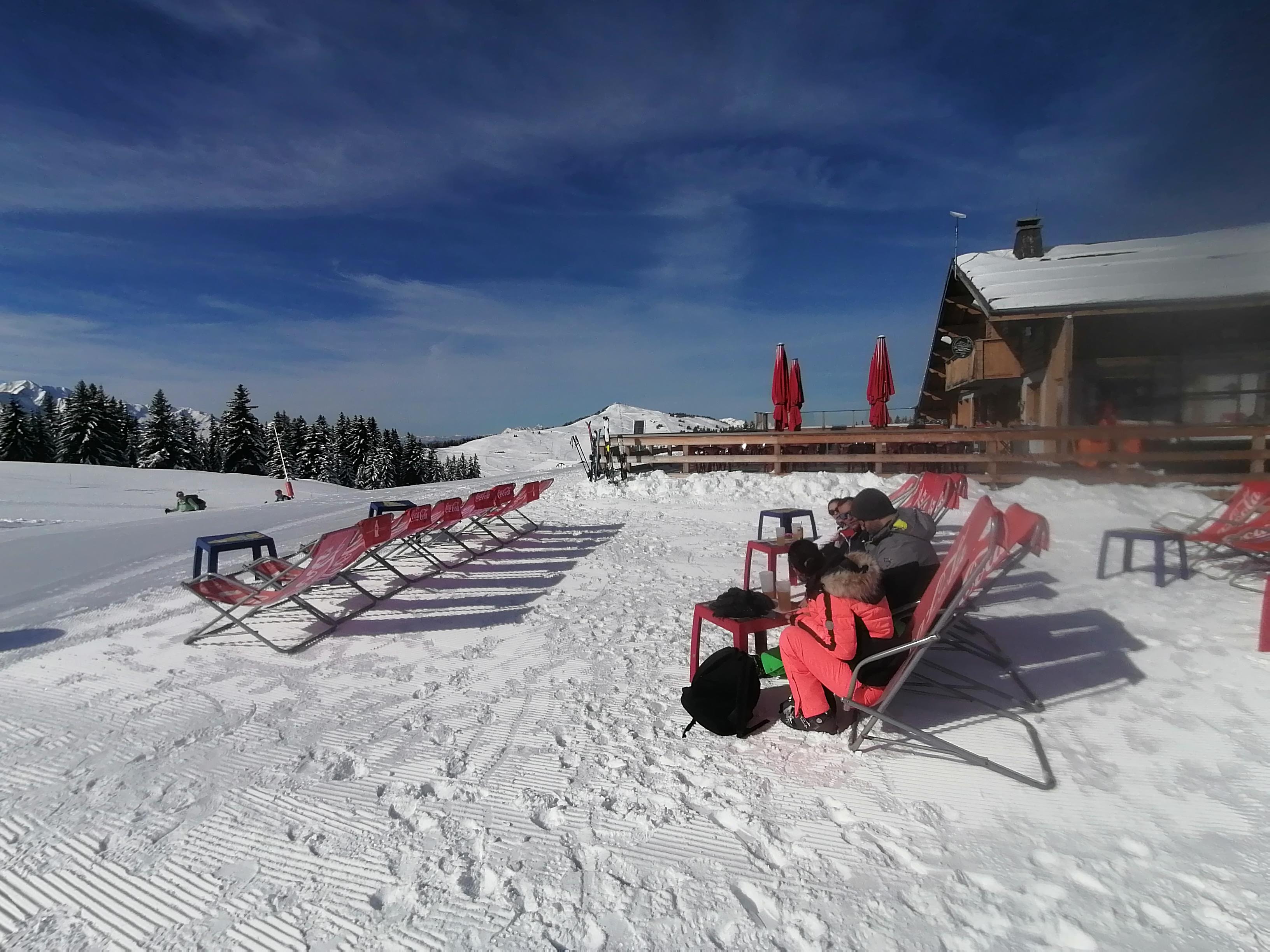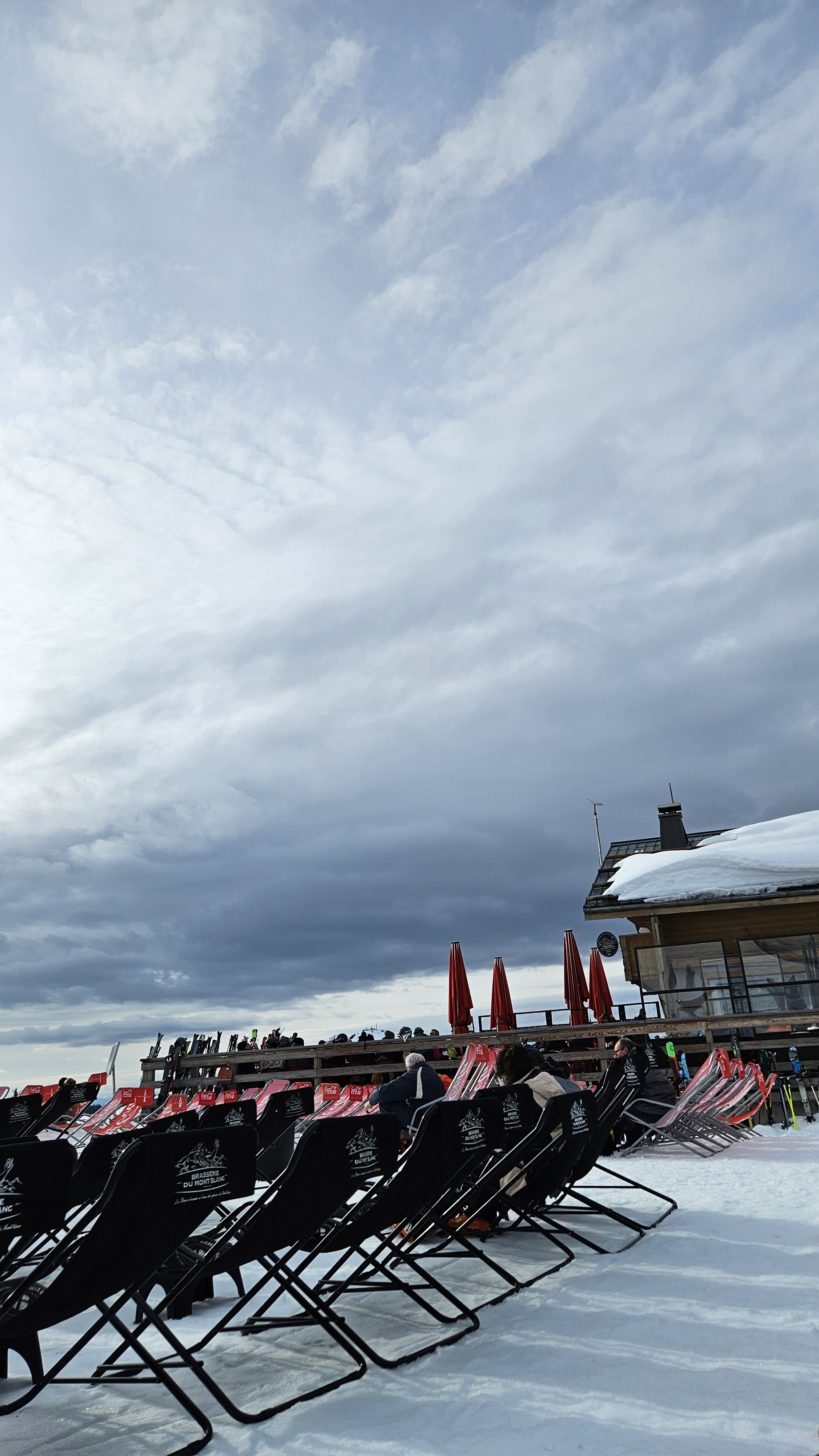 J'y ai pris une bière avec des amis avant de retourner au chalet où nous logions. C'est un endroit idéal pour terminer une bonne journée de ski. La vue est très belle et de nombreux transats sont disposés à l'extérieur. Parfait par une journée ensoleillée.
