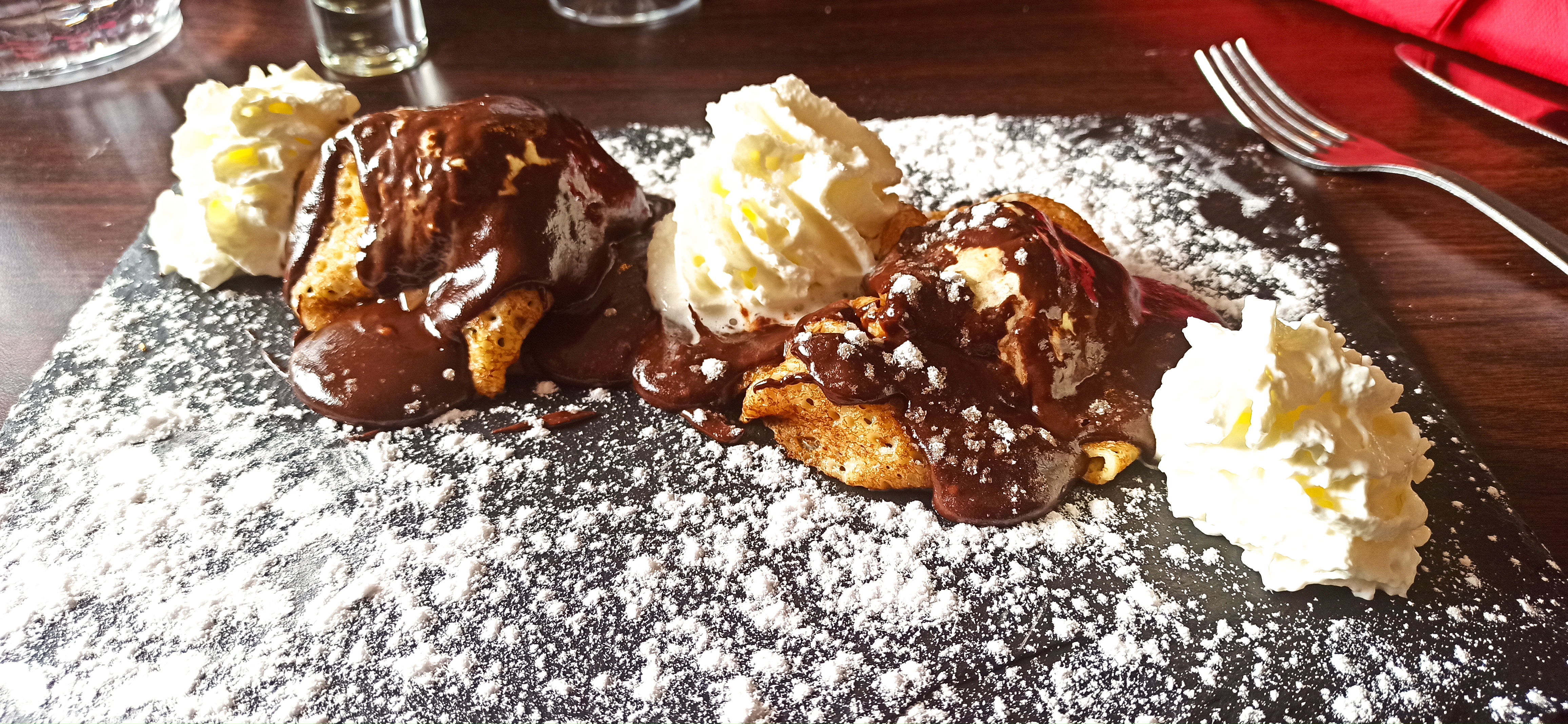 Plus touristique que ses concurrents, les prix et la qualité des mets s'en ressentent. Mais le service fut irréprochable et contribue à rendre l'expérience sympathique. À noter que le restaurant est situé sur les pistes, ce qui est un plus.
