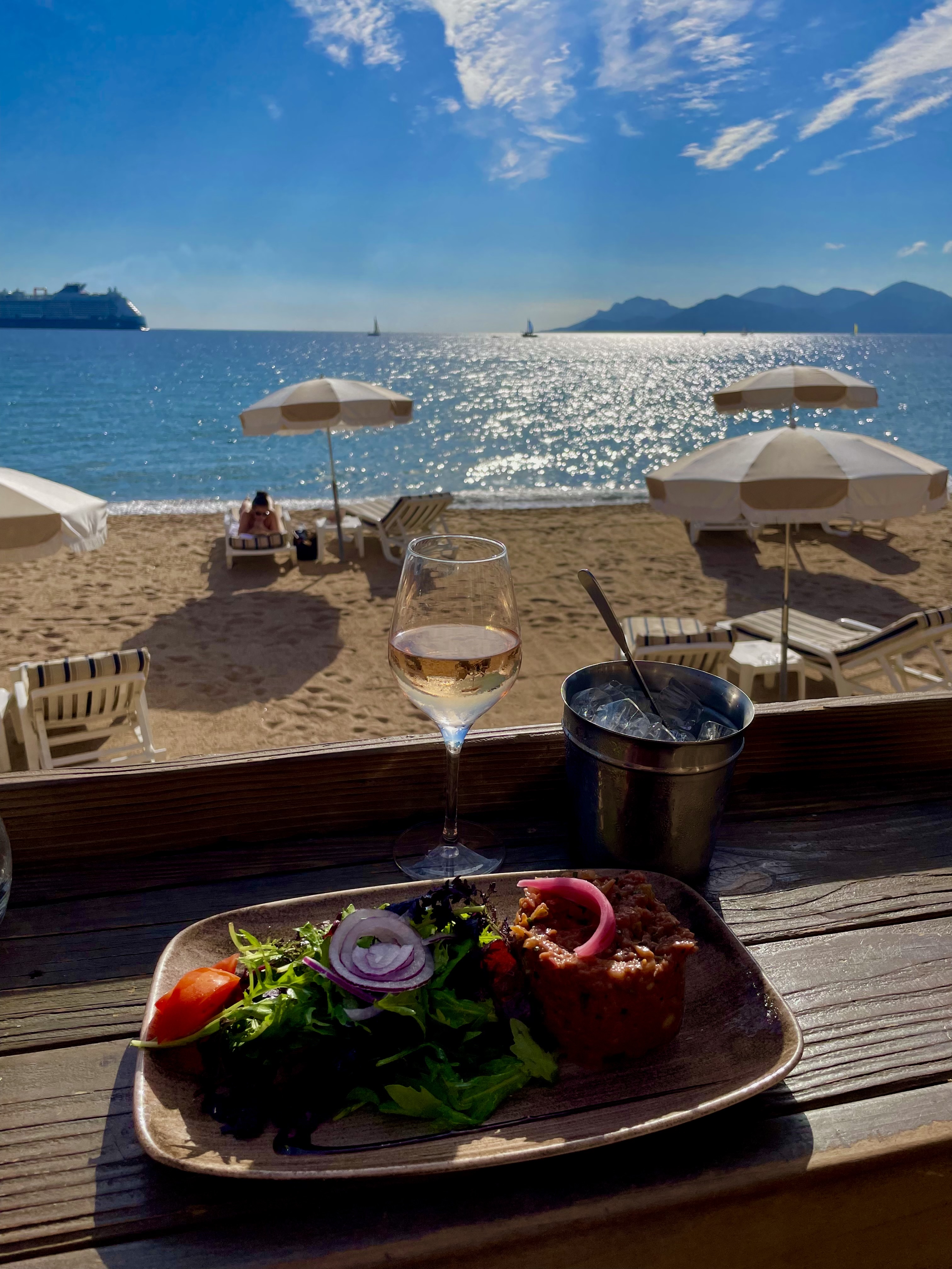 Restaurant de plage avec un cadre agréable. Les plats sont copieux et les tarifs abordables pour Cannes. Très belle vue, personnel accueillant.