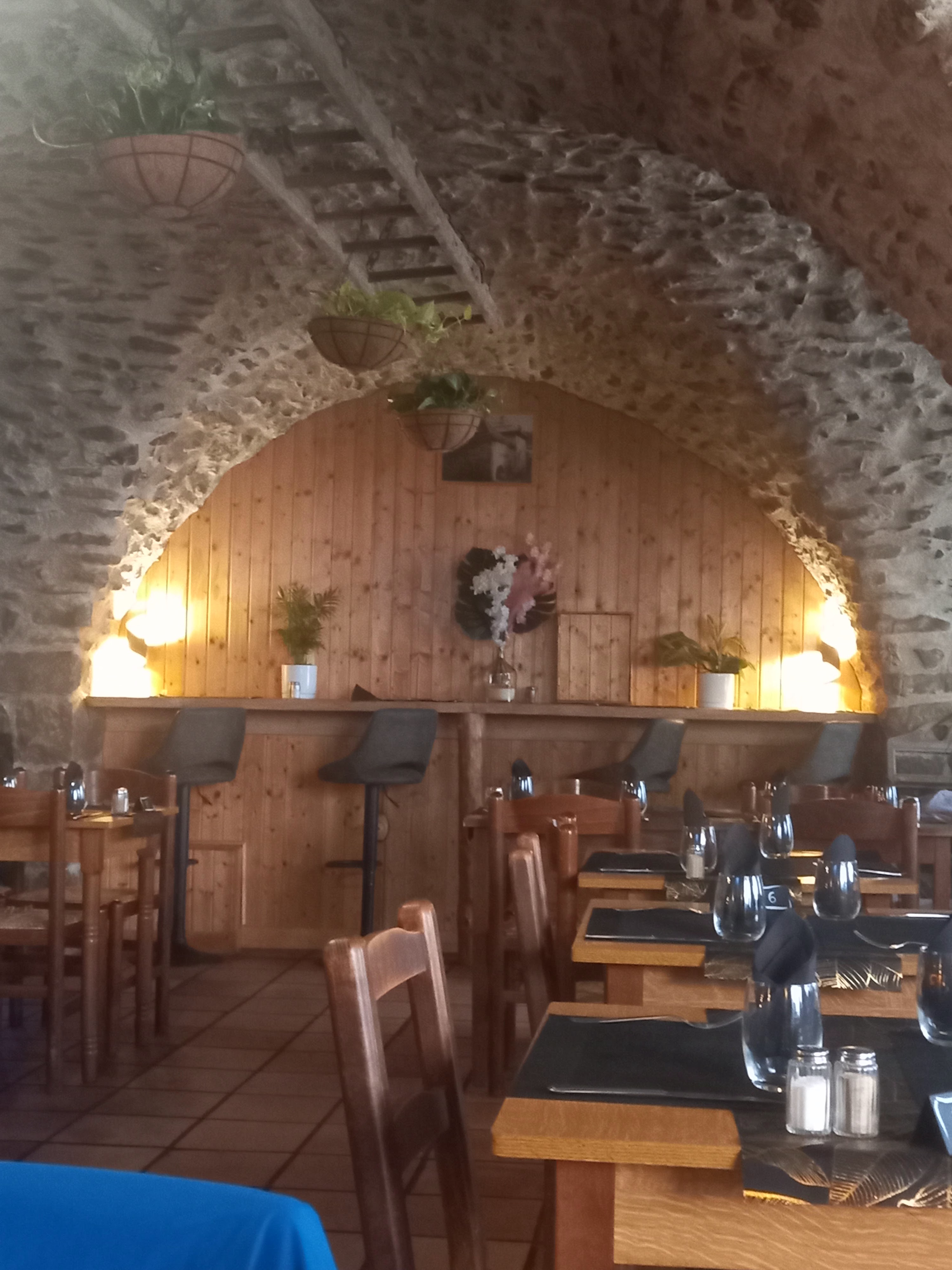 Très beau cadre avec la voûte en pierres. Il vaut mieux réserver et arriver à l'heure, si retard de 10 min, on perd sa table. Repas de qualité. Aucun membre du personnel avec le masque!!!!
