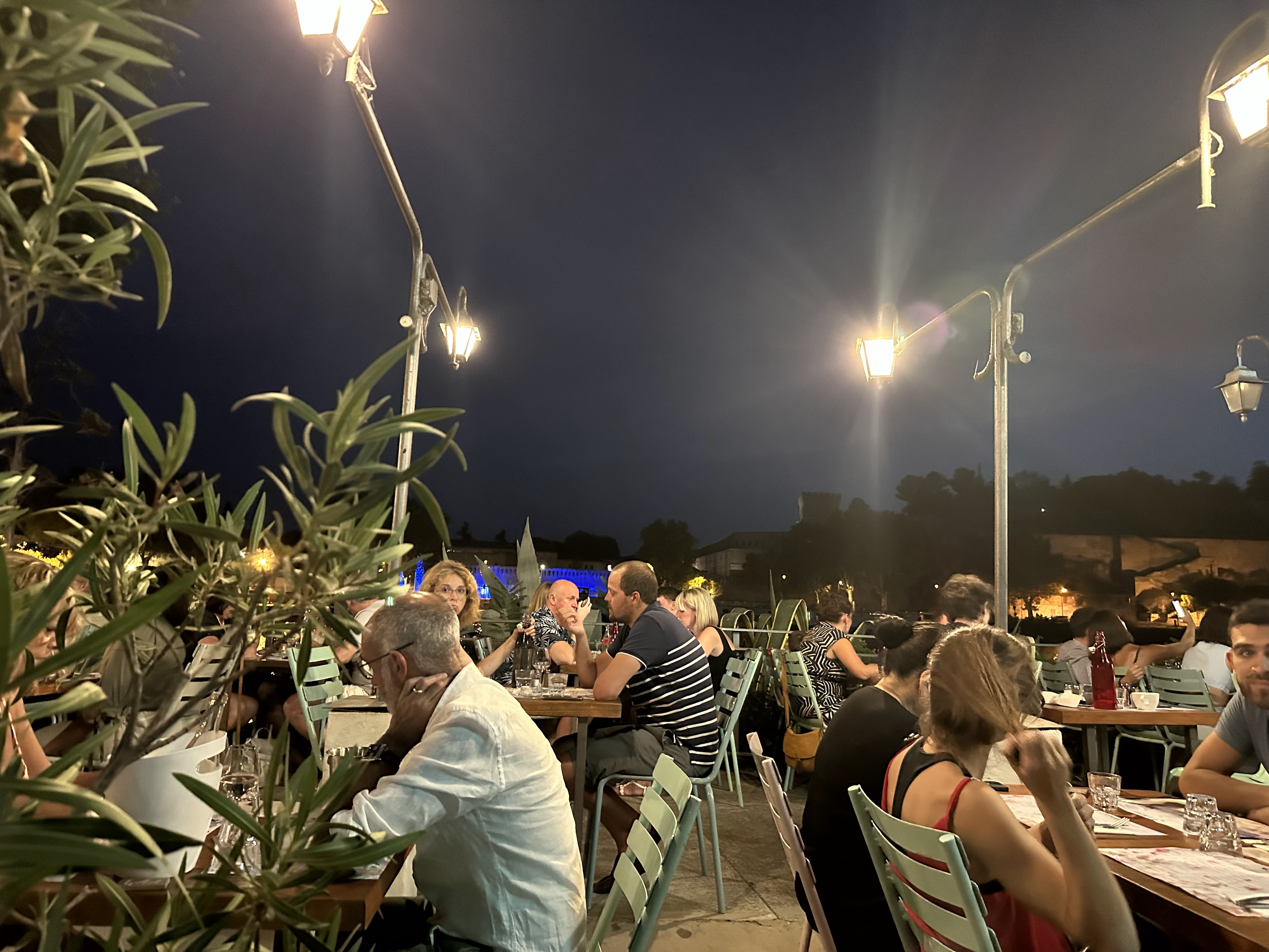 Nous étions côté bar/tapas. La vue sur le pont d’Avignon et le Rhône est très jolie. Super bonne ambiance. Les cocktails et tapas sont très bons! (plateau de fromage, poutine…) Nous reviendrons!