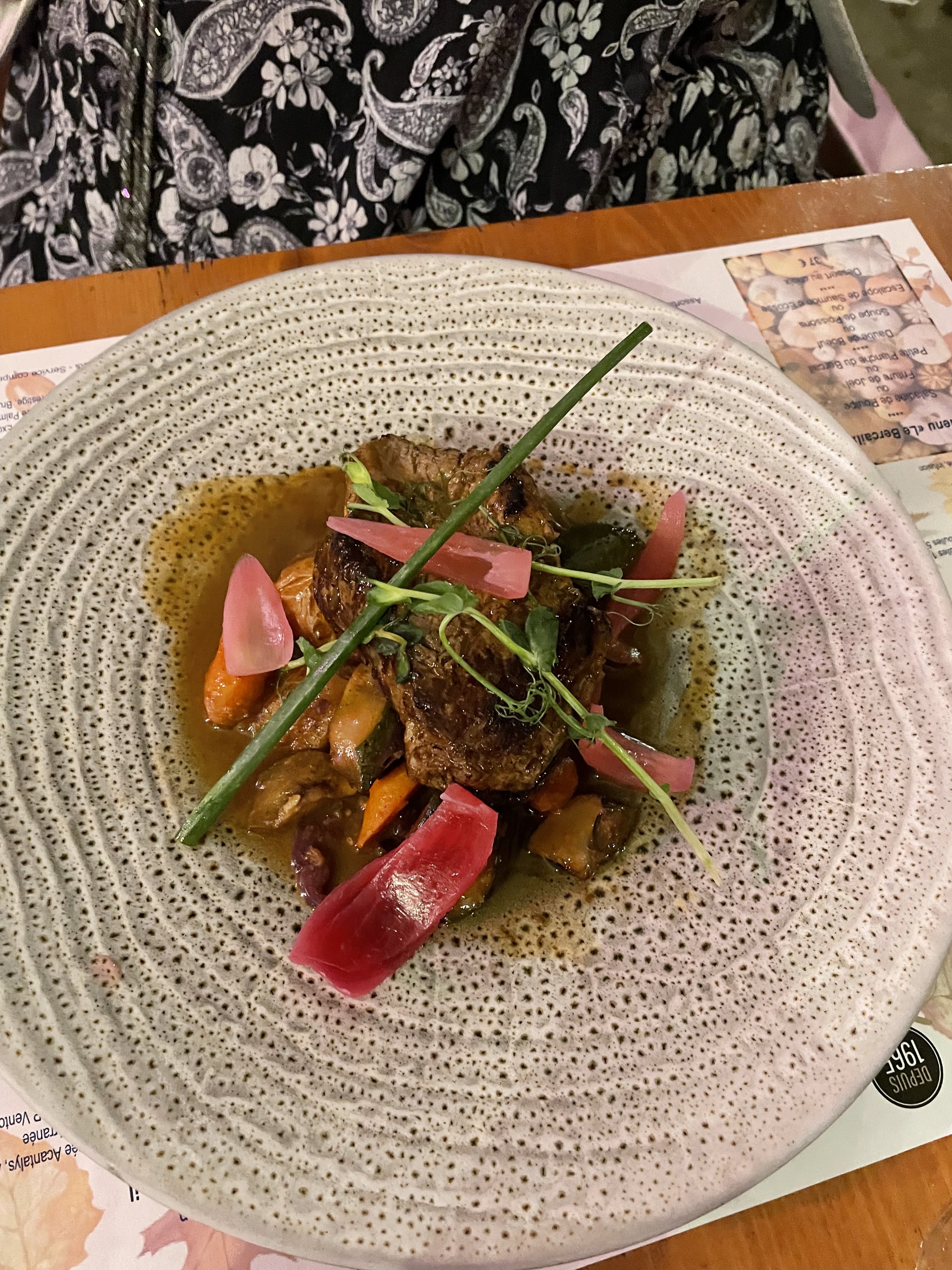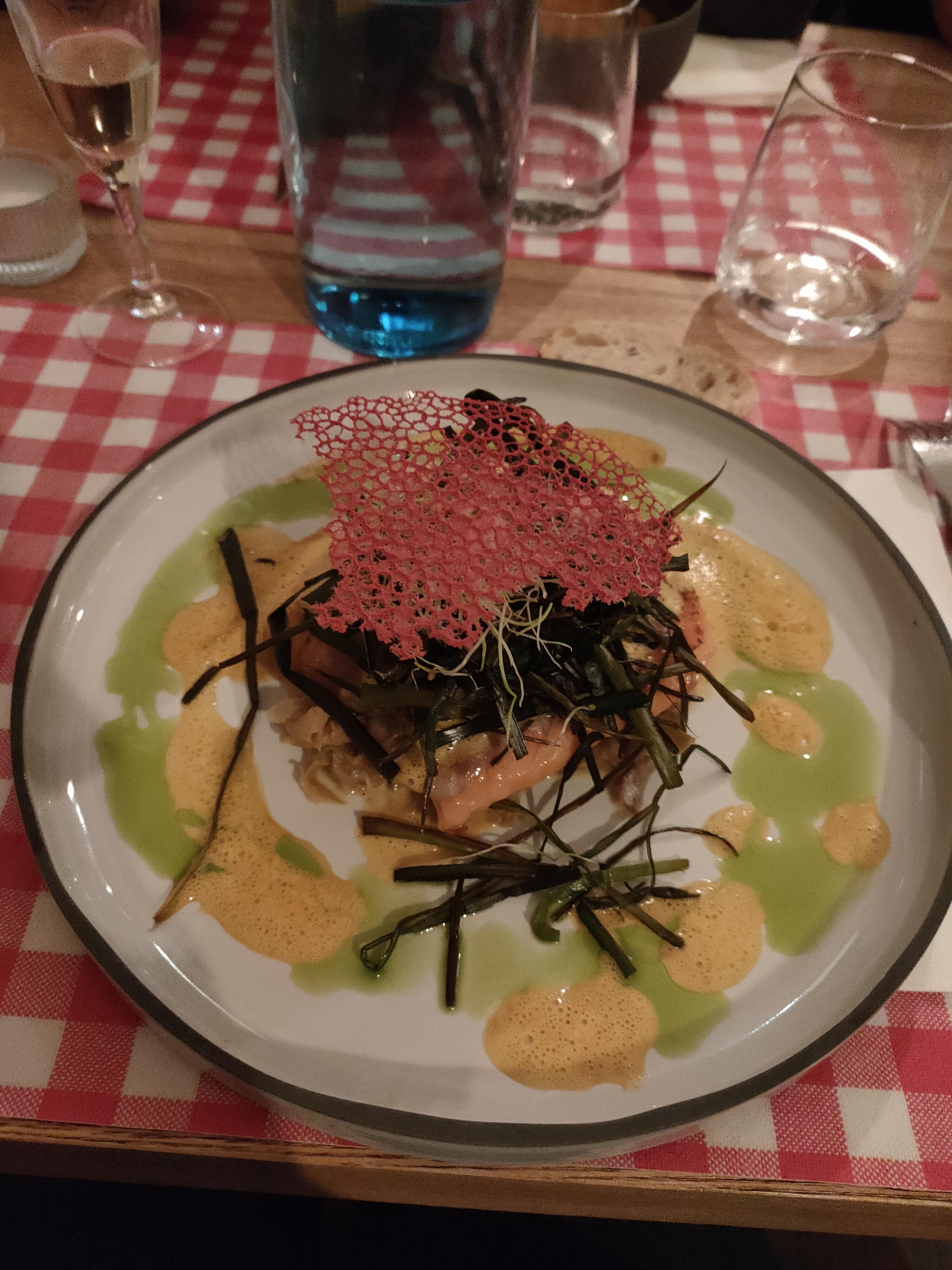 L’ambiance et le service, il n’y a rien a en dire, c’est un super lieu. Concernant la cuisine, nous avons trouvé ça très très cher pour ce que c’était, une planche pour 2, 25€, elle en vaudrait facilement 14€ donc on peut dire 18/19€ dans un lieu comme ça nous la recommandons pas. Concernant le gaspacho, super ! A prendre. Et pour finir le cochon, 2 des 3 travers de porcs étaient bien trop gras….