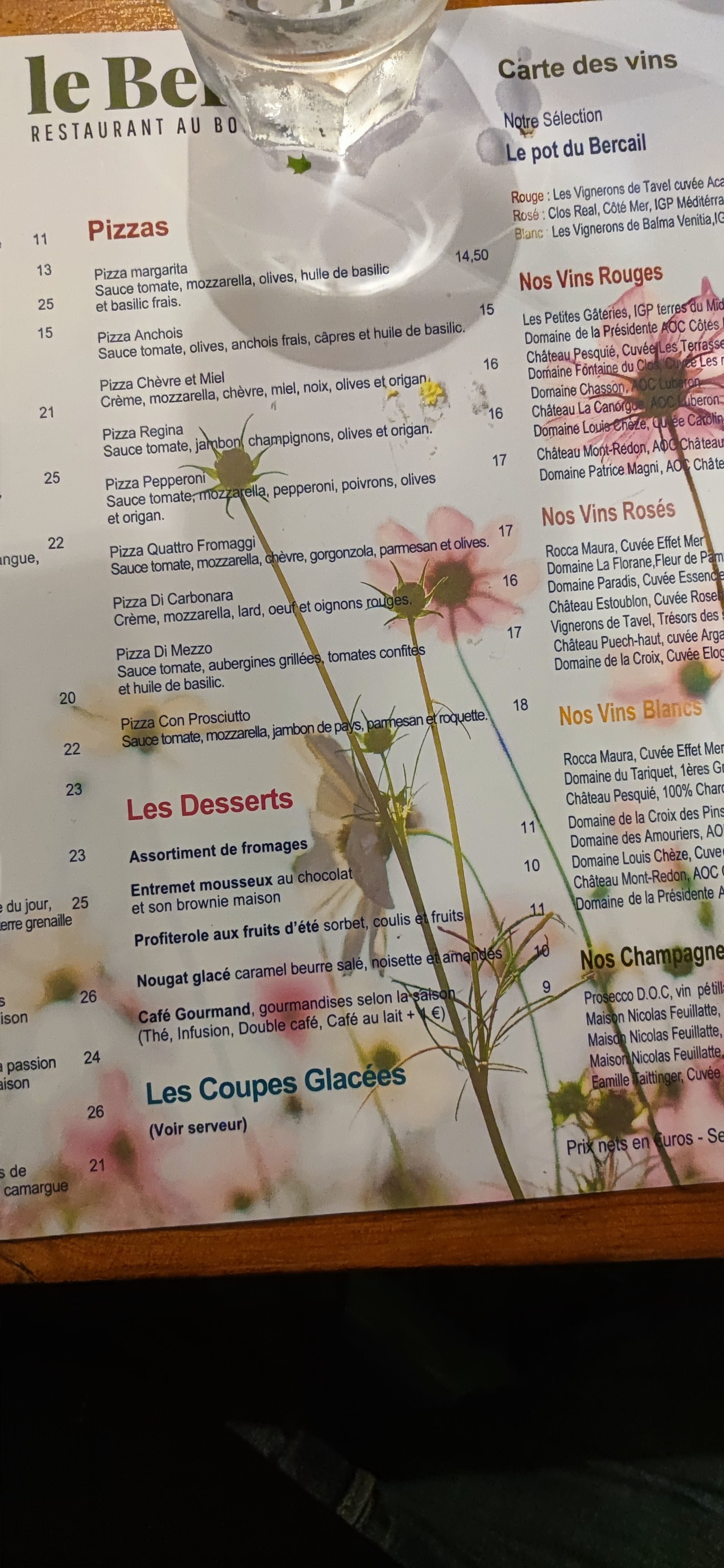 Il n’y a que le cadre au bord de l’eau avec vu sur le Pont d’Avignon. Sinon les plats n’étaient malheureusement pas à la hauteur. Très déçue, pizzas trop salées, plats fades !