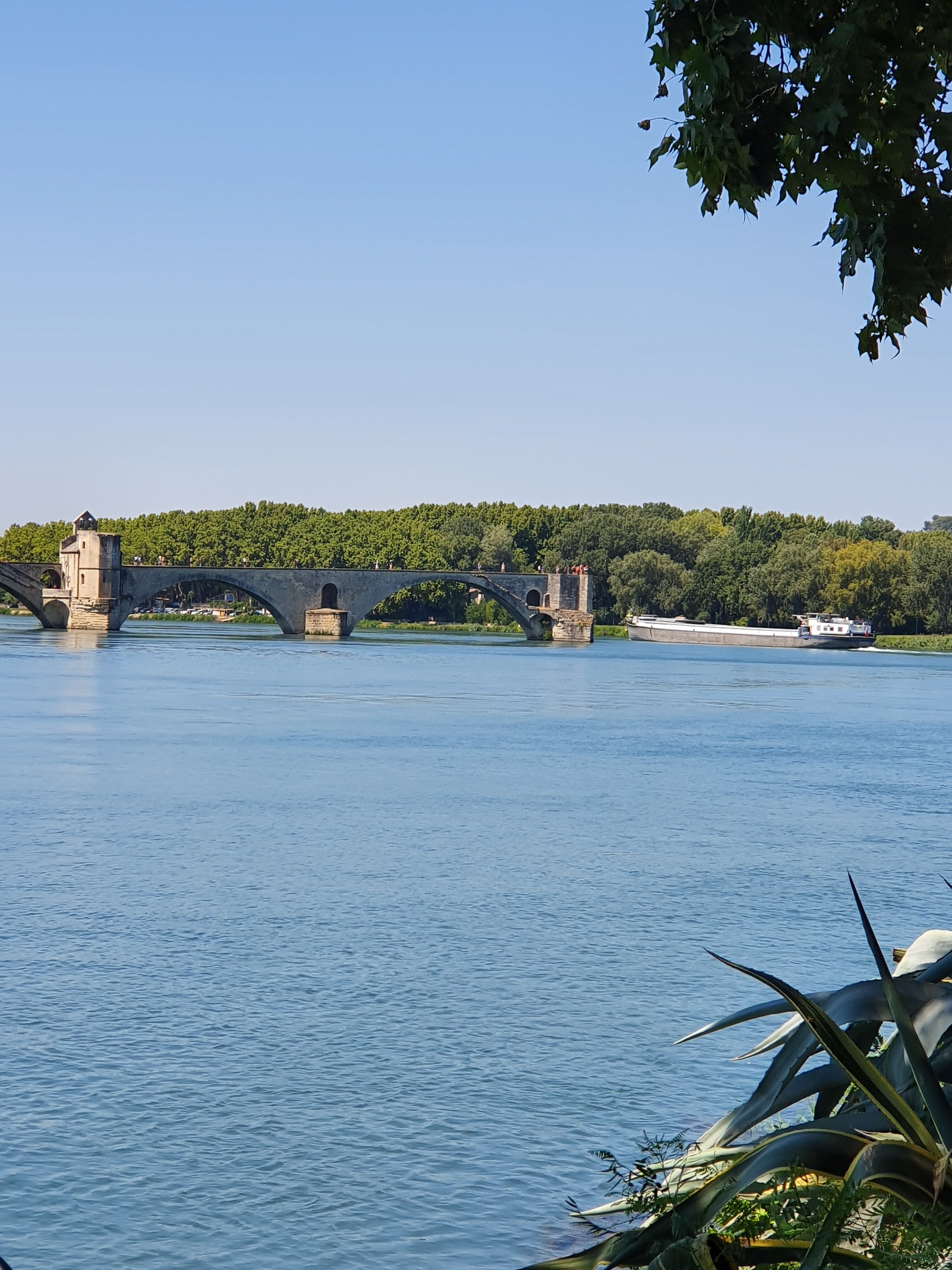 table réservée quelques jours avant : au bord du Rhône avec vue sur le fameux pont. Parking ombragé. Accueil parfait : conduits à notre table (au bord) Service rapide , belle organisation malgré le monde (150 tables!) nous avons partagé une petite friture puis magret de canard cuisson parfaite à la demande et une très belle côte de porc de l'Aveyron ( agneau de Nlle Zélande ? non merci) café et infusion gourmandes très bien. Deux verres de vin (au verre) blanc et rouge côtes du Rhône villages (parfait). 95 € Ravis de découvrir qu'il reste des endroits vraiment accueillants!